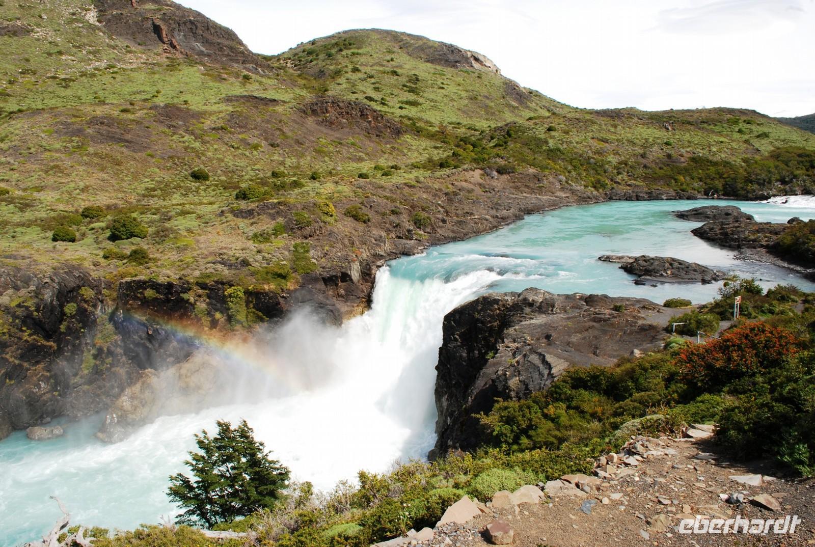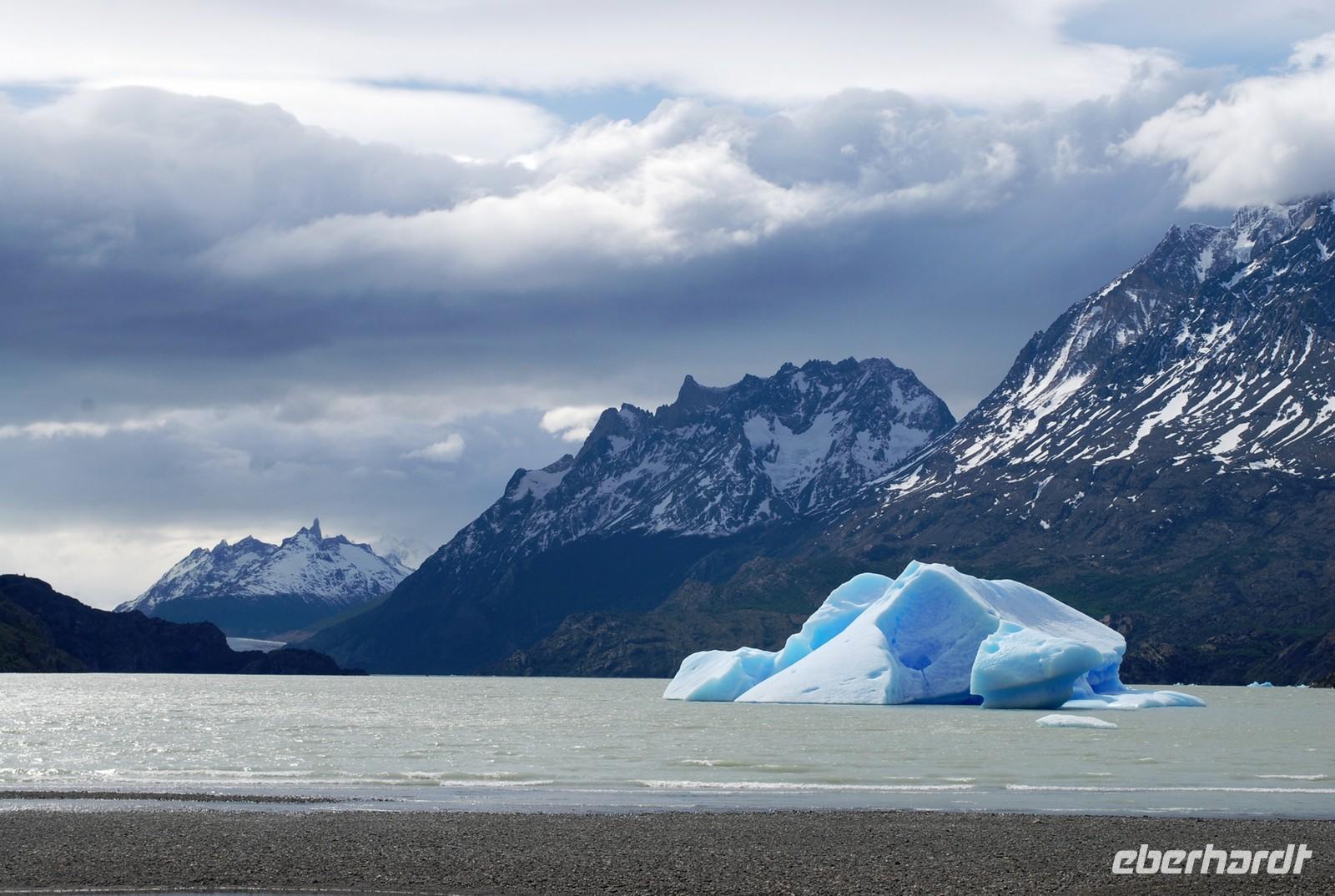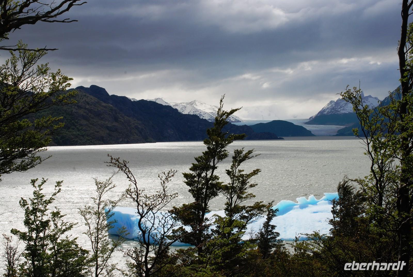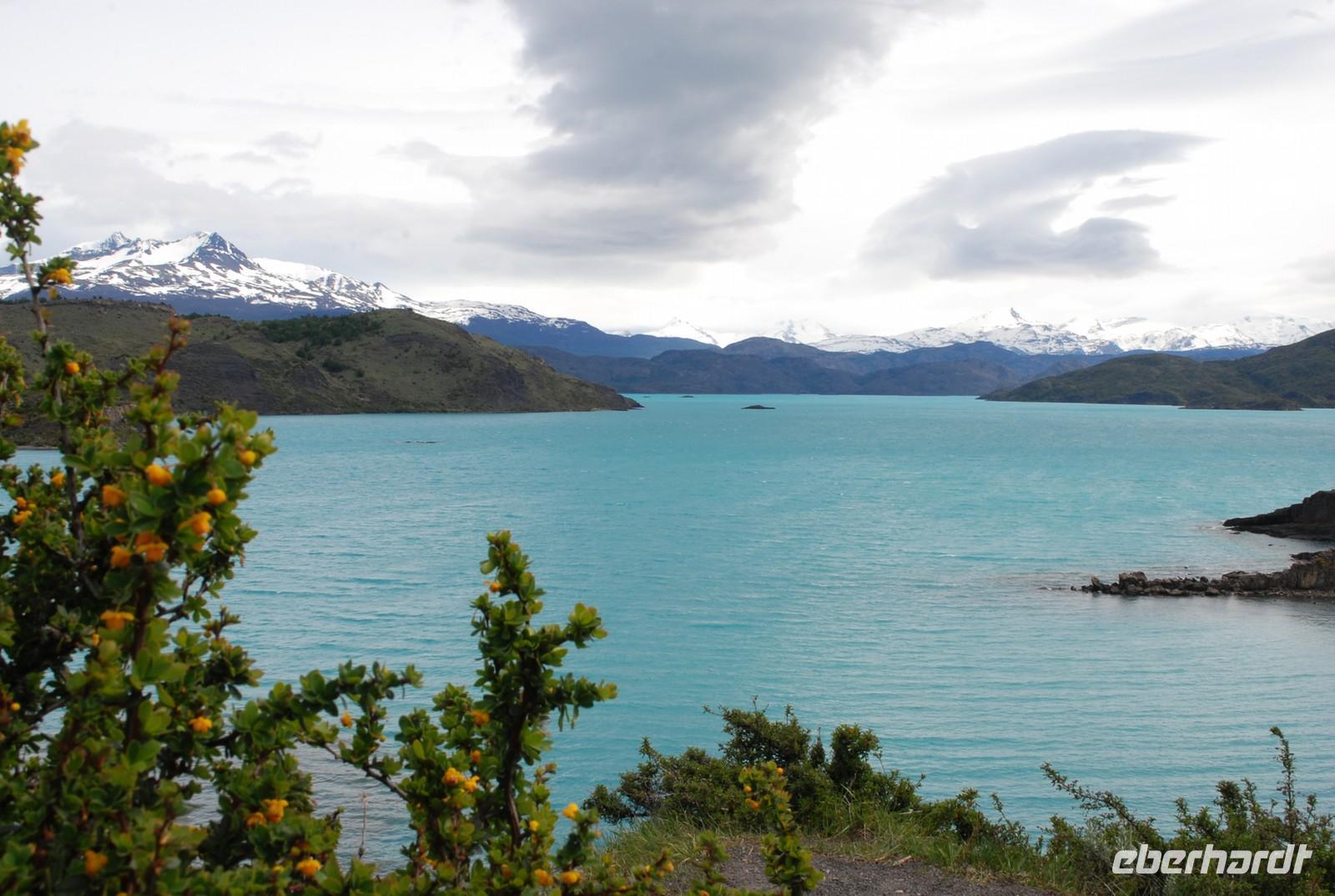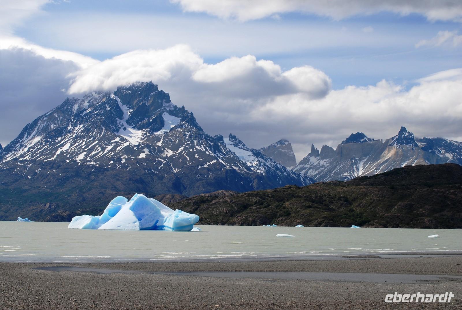 Früh am Morgen zeigen sich noch einige Wolken als wir unsere Reise in den Nationalpark Torres del Paine beginnen. Der Himmel zieht jedoch schnell auf und so haben wir bei unserer Ankunft im Gebiet des Torres del Paine einen tollen Blick auf das gesamte Massiv. Wir besichtigen die Cascadas del Paine - Wasserfälle - und beobachten unterwegs Nandus, Kondore und Guanakos. Am Eingang des Nationalparks erwartet uns ein zutraulicher Rotfuchs - Colileo genannt. Nach vielen Fotostopps mit den Seen, Flüssen, den Torres und den Cuernos del Paine erreichen wir den Salto Grande am Pehoe- und Norenskjöld-See. Hier unternehmen wir einen Spaziergang, beobachten eine Guanako-Herde und essen mit gesponsertem Wein von Eberhardt unser Mittag bei über 20 Grad Celsius. Der nächste Höhepunkt ist der Grey-See mit dem gleichnamigen Gletscher. Hier wandern wir am Strand entlang zu einem Aussichtspunkt auf den in der Ferne liegenden Gletscher. Langsam verabschieden wir uns nun vom Nationalpark. Es wird noch schnell ein letzter stürmischer Abschiedsgruß aufgenommen und wir reisen zurück nach Puerto Natales. Unterwegs besichtigen wir die 30 Meter hohe Milodon-Höhle, wo Reste eines Riesenfaultieres gefunden wurden. Nach einem kleinen Snack im Restaurant "La ùltima Esperanza" fallen wir müde ins Bett.