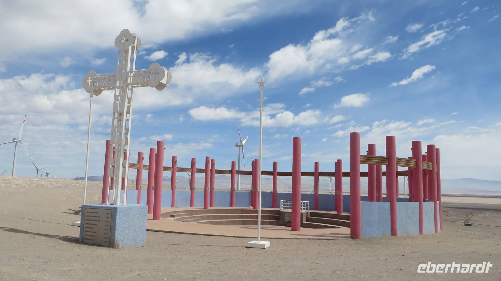 Schnell hatten wir uns alle am Ausgang versammelt und die Koffer geholt, diese wurden auf einen separaten Transfer verladen. Wir stiegen in unseren Kleinbus für die nächsten Tage - Marke chinesischer Herkunft - und begrüßten unseren Busfahrer Luis. Nach einer kurzen Fahrt hielten wir am Denkmal zu Ehren der Opfer des Militärputsches an und ließen den Ort an einem der trockensten Orte der Welt auf uns wirken.