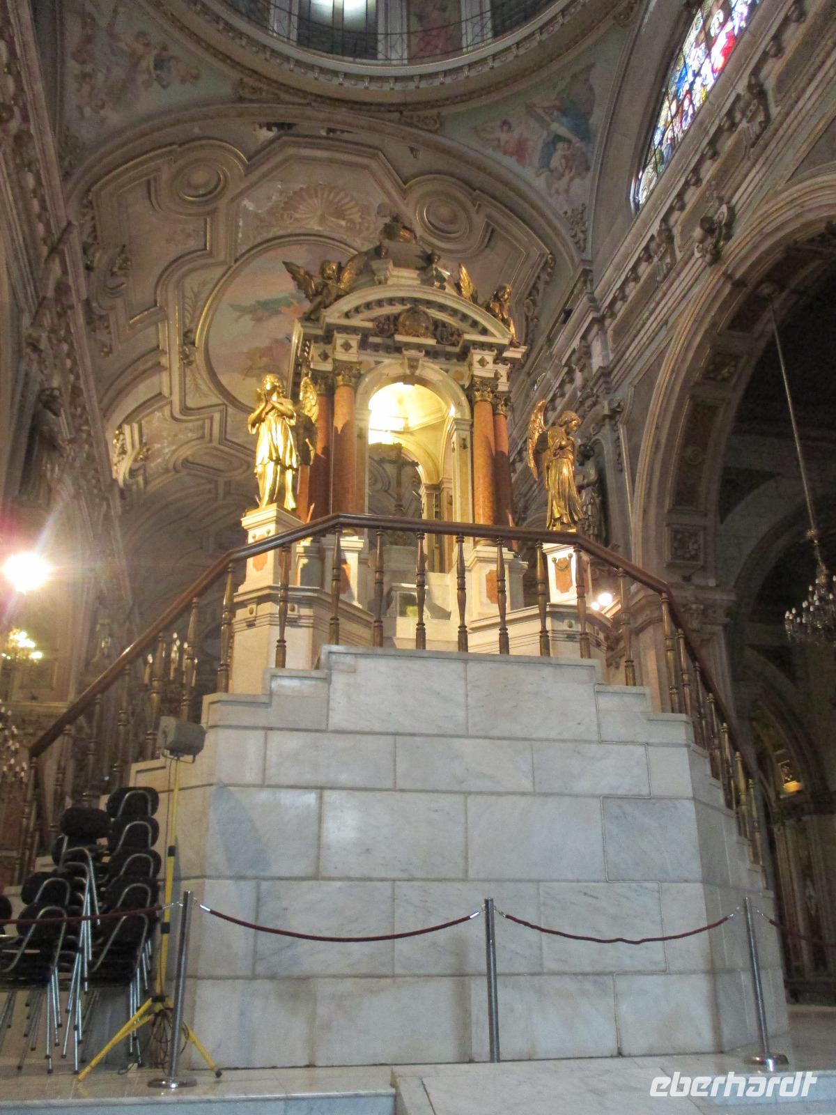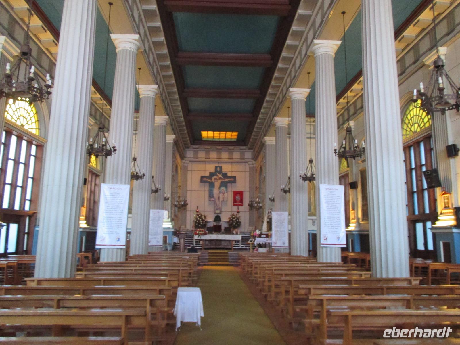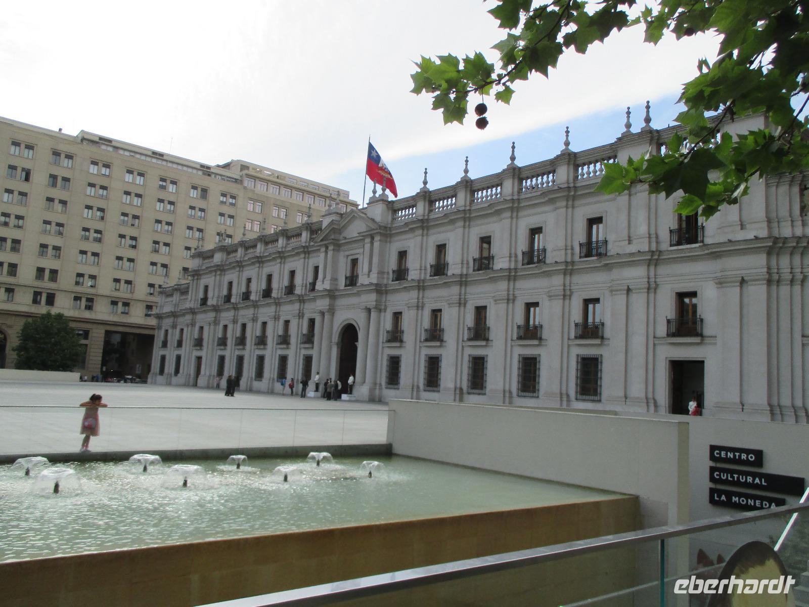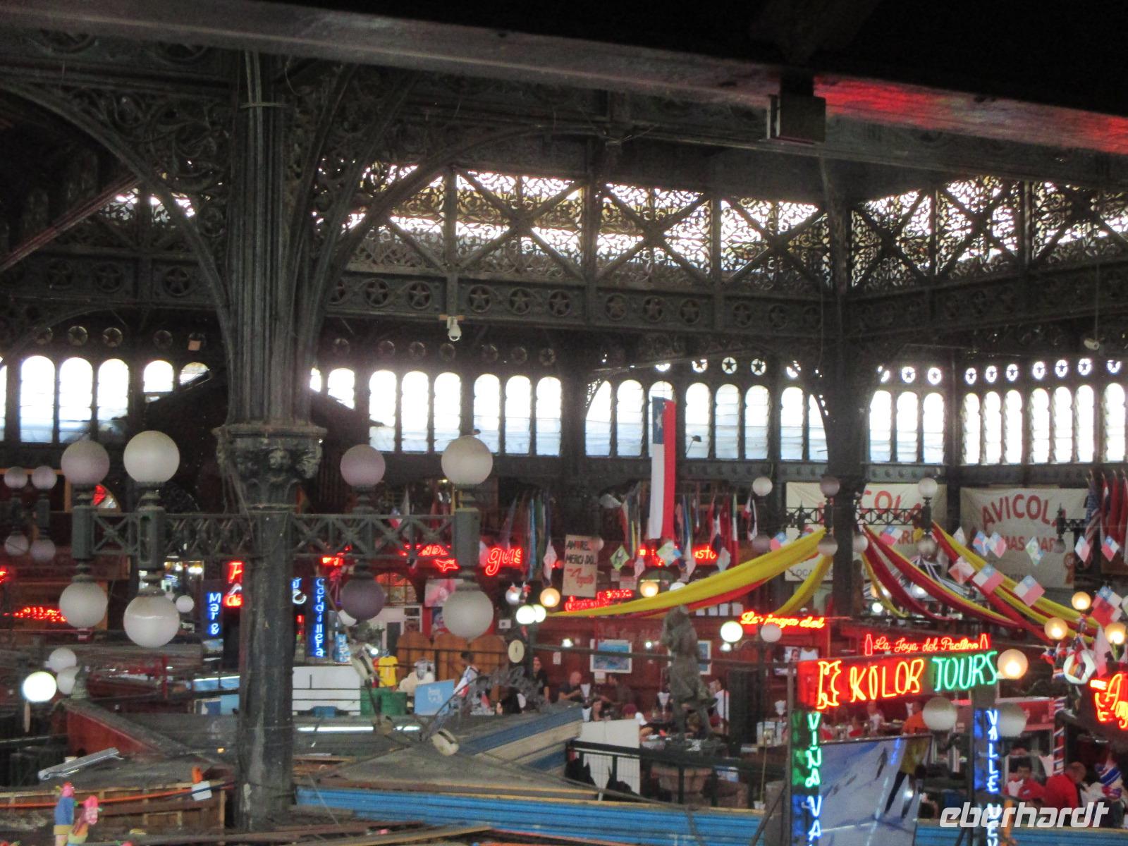 Nach einem fast ruhigen Flug landen wir überpünktlich halb neun am Morgen in der chilenischen Hauptstadt. Unsere erste Aufgabe hier ist, unsere Uhren um 5 Stunden zurück zu stellen. Nach einer doch etwas längeren Einreiseprozedure und dem Gang durch den Zoll, wo nochmal unser gesamtes Gepäck auf frische Lebensmittel kontrolliert wird, lernen wir am Ausgang endlich unseren örtlichen Reiseleiter Eric kennen, der uns sein Land in den nächsten Tagen und Wochen vorstellen möchte. Nachdem unsere Koffer im Bus verstaut sind, fahren wir zunächst zu unserem Hotel Bonparte, um unsere Koffer einschließen zu lassen und den Bus für die Stadtrundfahrt zu wechseln. Durch die Stadtteile Providencia und Bellaviesta erreichen wir schließlich die Station des Funicolars. Wir steigen aus und in die kleinen Wagen um, die uns hinauf den auf den Berg bringen. Von hier aus haben heute eine sehr gute Aussicht auf die Millionenmetropole und die umherliegenden Anden. Nun nutzen wir unsere Zeit, um ein wenig herum zu laufen und erste Fotos zu schießen. Nachdem uns Eric auch einiges zum Straßenverkehr in Santiago erzählt hat, fahren wir mit dem Bus wieder hinab. Unser nächstes Ziel ist der Mercado Central, wo wir bereits zum Mittagessen erwartet werden. Wir stoßen mit Pisco Sour auf eine schöne Reise an und genießen chilenische Fischspezialitäten. So, nun sind wir satt und irgendwie durch die lange Anreise auch sehr müde ABER wir wollen natürlich auch die Hauptstadt kennenlernen und so begeben wir uns nun zu Fuß weiter. Über die vollen Straßen Santiagos führt uns Eric bis zum Plaza de Armas, wo sich die Kathedrale, die alte Post als auch das Rathaus befinden. Uns bleibt auch Zeit, die Kathedrale von innen zu bestaunen. Nachdem wir Geld gewechselt haben, ist unser nächstes Ziel der Präsidentenpalast mit dem Denkmal für Salvador Allende. Vorbei an der Börse und durch eine U-Bahn-Station hindurch kommen wir wieder zurück zum Bus. Unser Chauffeur erwartet uns bereits und bringt uns zurück in den Stadtteil Providencia. Wer für heute immer noch nicht genug hat, begleitet Eric und mich in eine kleine Kneipe, wo wir den ersten Abend bei chilenischem Wein und Bier ausklingen lassen.