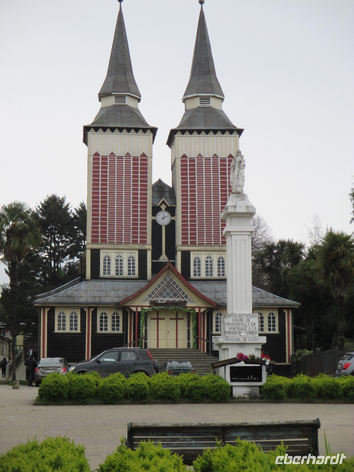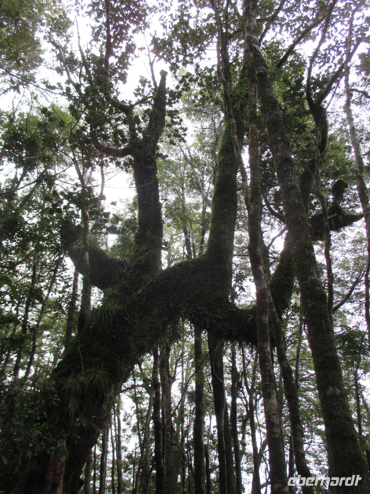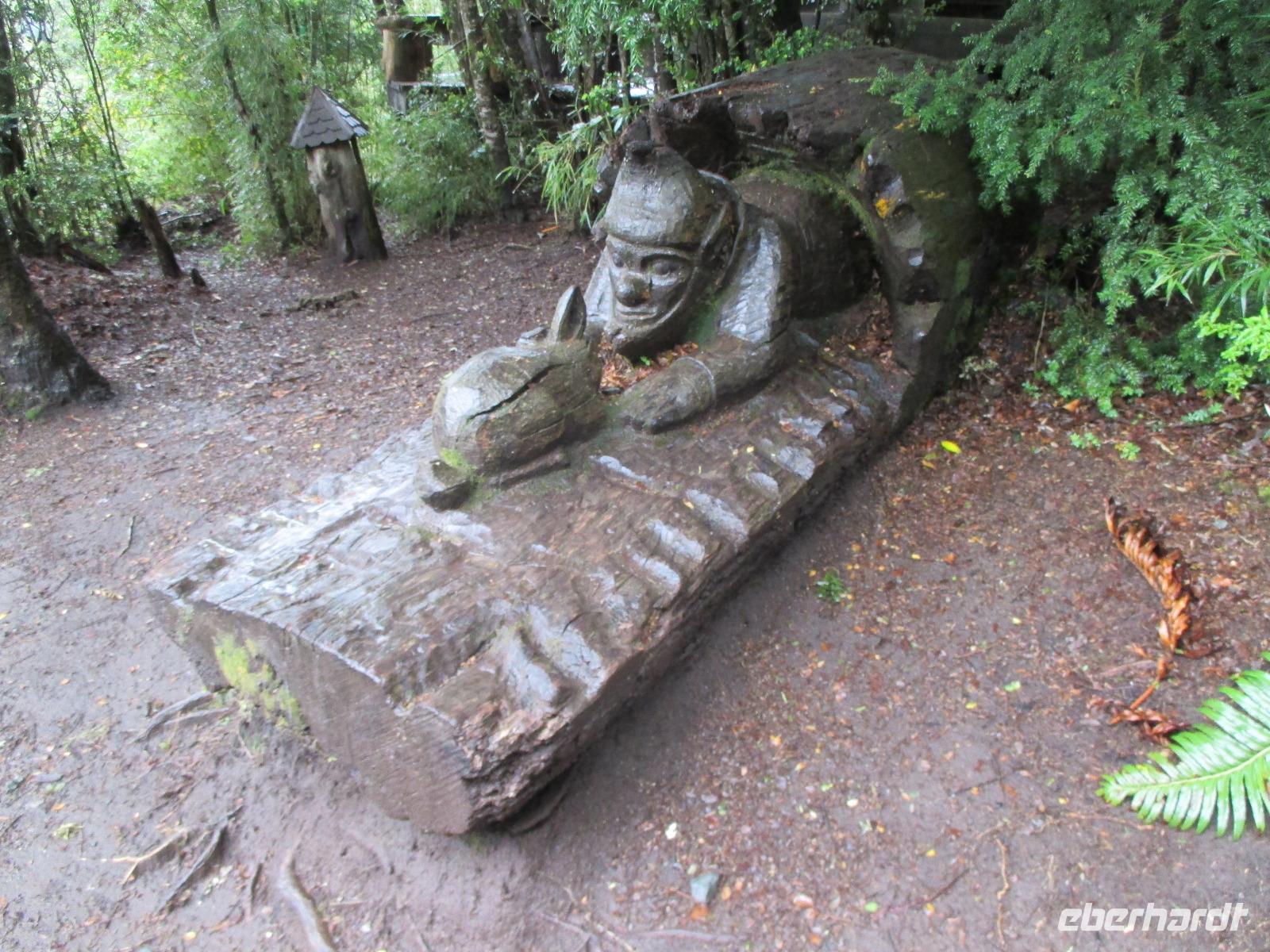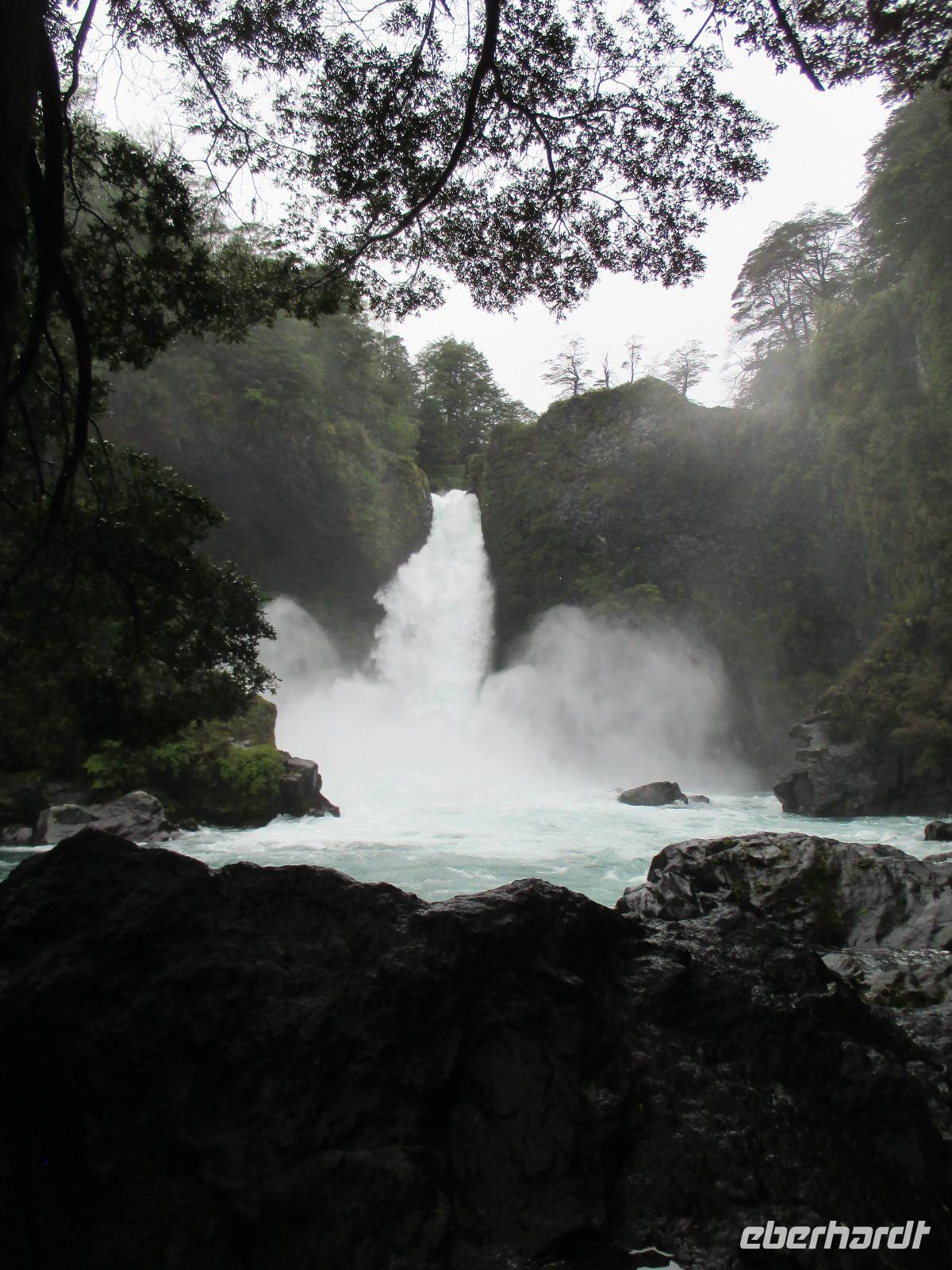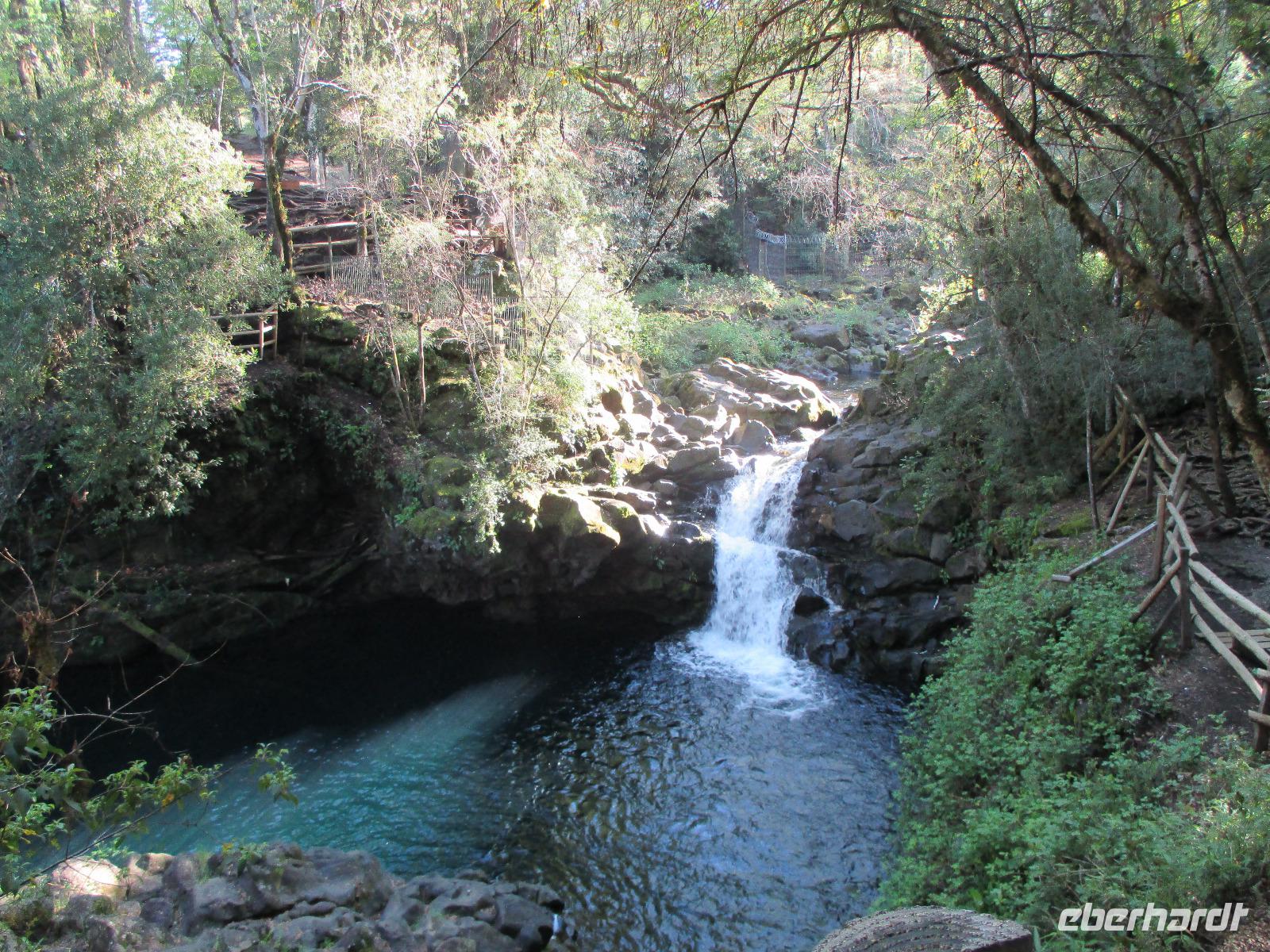 Der Grund für unsere Übernachtung am Flughafen ist unser Flug am Morgen nach Temuco. Nach rund einer Stunde Flug erreichen wir Temuco, in Mittelchile gelegen. Hier erwarten uns bereits unsere zwei Busfahrer Fransisco und Samuel, die besonderen Spaß haben, sich mit dem Bus und anderen Naturhighlights zu fotografieren;-). Unser Gepäck ist verladen und so fahren wir in die rund halbe Stunde Fahrzeit entfernte Stadt Temuco. Am Hauptplatz steigen wir uns und Eric erklärt uns am Denkmal die Geschichte der Mapuche. Danach haben wir freie Zeit um einen Kaffee zu trinken, die Stadt auf uns wirken zu lassen oder einige Besorgungen im Supermarkt zu erledigen. Zurück am Bus beobachten wir eine Demonstration von Schülern, die für ein besseres Bildungssystem auf die Straße gehen. Als sie uns Touristen entdecken winken sie uns nett zu und fragen, woher wir kommen. Mit dem Bus geht es weiter in Richtung Süden. Eine kleine Pause legen wir in Pangapuill ein. Um uns ein wenig die Beine zu vertreten spazieren wir von der hiesigen Kirche bis runter zum See. Hier ist ein kleiner Spielplatz mit einigen Sportgeräten. Beim Wippen werden wir wieder zu Kindern und die Betätigung an den Sportgeräten bringt unsere müden Knochen wieder in Schwung;-). Weiter geht es in Richtung Huilo Huilo Bioreservat. Hier unternehmen wir eine kleine Wanderung zum Huilo Huilo sowie zum Puma-Wasserfall. Durch den einsetzenden Regen ist der Weg ziemlich matschig aber dennoch macht dieser kleine Spaziergang Spaß da er uns mitten durch die Natur führt. Wir checken im einmaligen und wundervollen Baumhaushotel Nothofagus ein. Seine ganze Form ist schon sehr speziell. Im Inneren ist alles mit Holz ausgestattet, leise Musik in den öffentlichen Gängen beruhigt und unsere Zimmer sind mit großen Panoramafenstern ausgestattet, die uns am kommenden Morgen mit einem tollen Ausblick aufwachen lassen. Wir nutzen die Zeit, um das Hotel komplett anzuschauen, auch mit dem angrenzenden Vulkanhotel. Im Kaminzimmer werden wir schließlich zu einem Willkommensdrink eingeladen, bevor unser Abend bei einem Abendessen vom Buffet ausklingt.