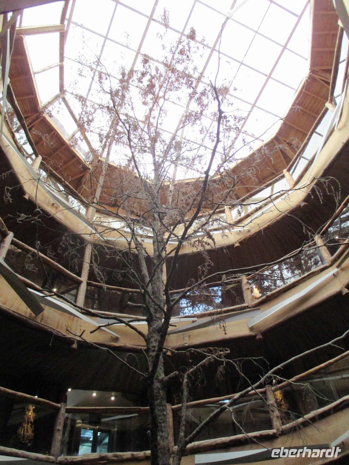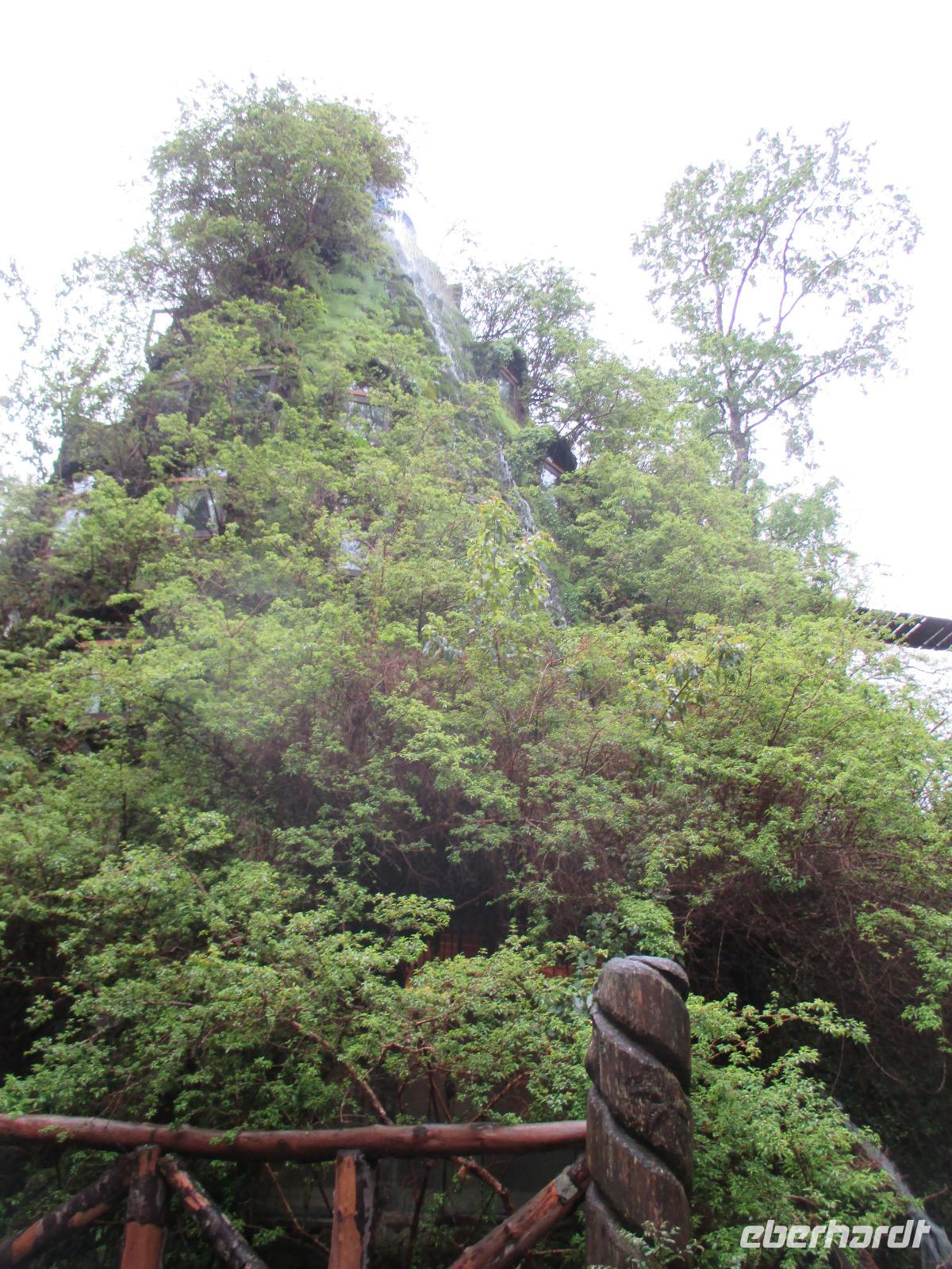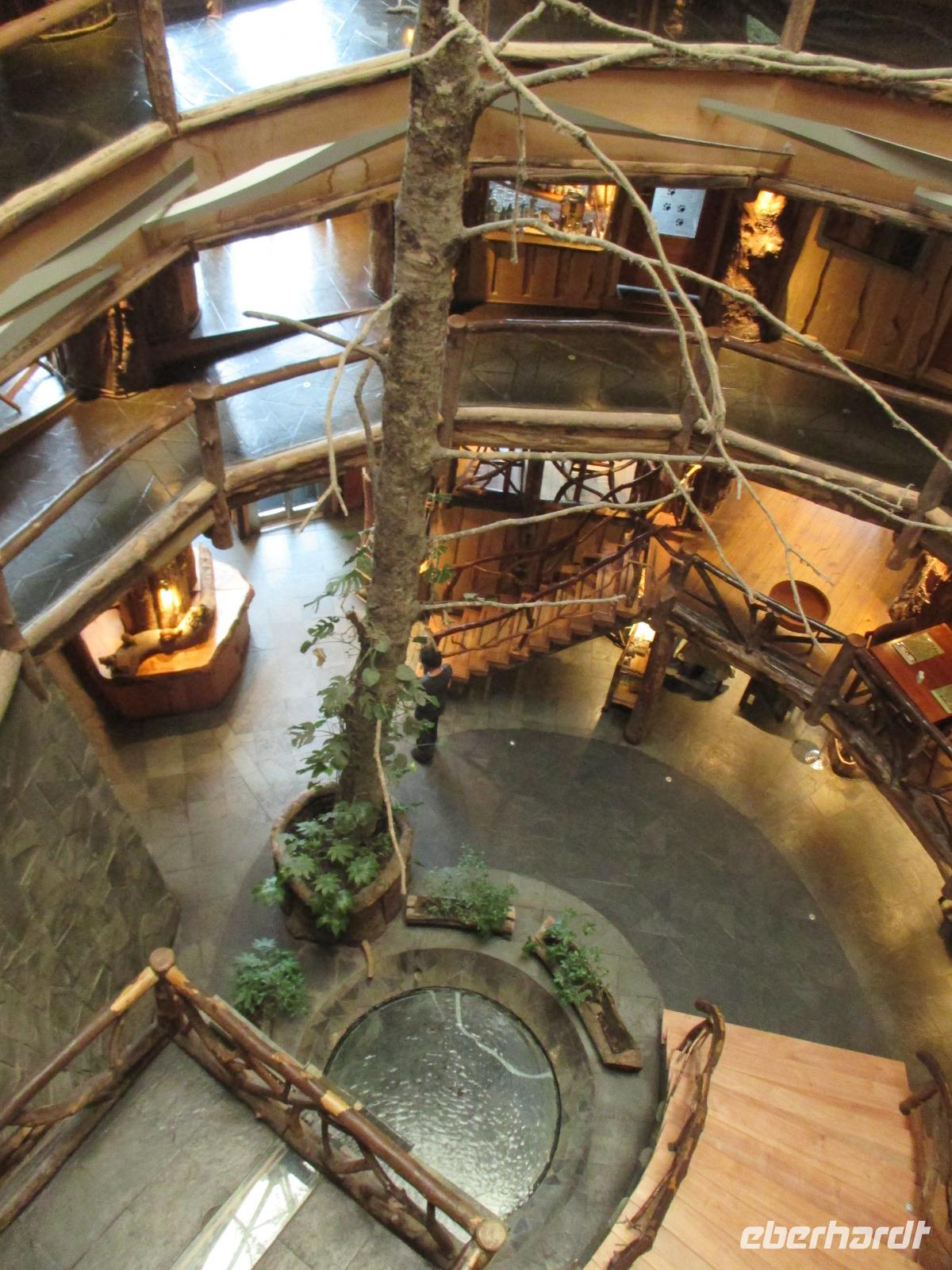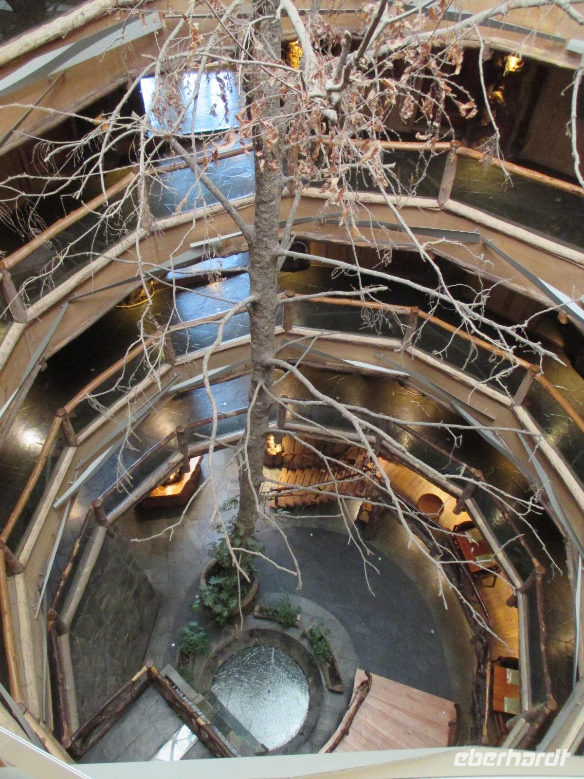 Der Grund für unsere Übernachtung am Flughafen ist unser Flug am Morgen nach Temuco. Nach rund einer Stunde Flug erreichen wir Temuco, in Mittelchile gelegen. Hier erwarten uns bereits unsere zwei Busfahrer Fransisco und Samuel, die besonderen Spaß haben, sich mit dem Bus und anderen Naturhighlights zu fotografieren;-). Unser Gepäck ist verladen und so fahren wir in die rund halbe Stunde Fahrzeit entfernte Stadt Temuco. Am Hauptplatz steigen wir uns und Eric erklärt uns am Denkmal die Geschichte der Mapuche. Danach haben wir freie Zeit um einen Kaffee zu trinken, die Stadt auf uns wirken zu lassen oder einige Besorgungen im Supermarkt zu erledigen. Zurück am Bus beobachten wir eine Demonstration von Schülern, die für ein besseres Bildungssystem auf die Straße gehen. Als sie uns Touristen entdecken winken sie uns nett zu und fragen, woher wir kommen. Mit dem Bus geht es weiter in Richtung Süden. Eine kleine Pause legen wir in Pangapuill ein. Um uns ein wenig die Beine zu vertreten spazieren wir von der hiesigen Kirche bis runter zum See. Hier ist ein kleiner Spielplatz mit einigen Sportgeräten. Beim Wippen werden wir wieder zu Kindern und die Betätigung an den Sportgeräten bringt unsere müden Knochen wieder in Schwung;-). Weiter geht es in Richtung Huilo Huilo Bioreservat. Hier unternehmen wir eine kleine Wanderung zum Huilo Huilo sowie zum Puma-Wasserfall. Durch den einsetzenden Regen ist der Weg ziemlich matschig aber dennoch macht dieser kleine Spaziergang Spaß da er uns mitten durch die Natur führt. Wir checken im einmaligen und wundervollen Baumhaushotel Nothofagus ein. Seine ganze Form ist schon sehr speziell. Im Inneren ist alles mit Holz ausgestattet, leise Musik in den öffentlichen Gängen beruhigt und unsere Zimmer sind mit großen Panoramafenstern ausgestattet, die uns am kommenden Morgen mit einem tollen Ausblick aufwachen lassen. Wir nutzen die Zeit, um das Hotel komplett anzuschauen, auch mit dem angrenzenden Vulkanhotel. Im Kaminzimmer werden wir schließlich zu einem Willkommensdrink eingeladen, bevor unser Abend bei einem Abendessen vom Buffet ausklingt.