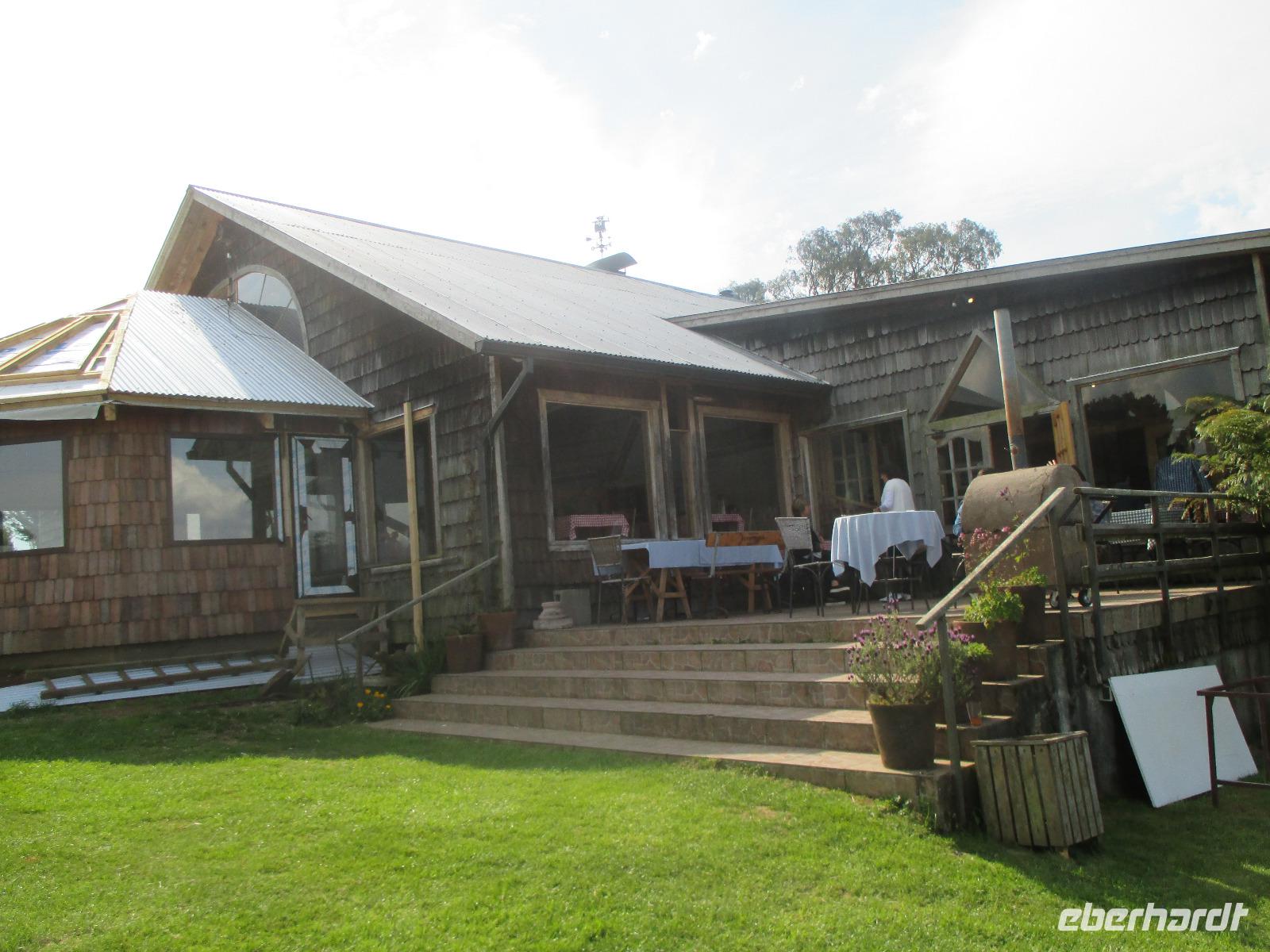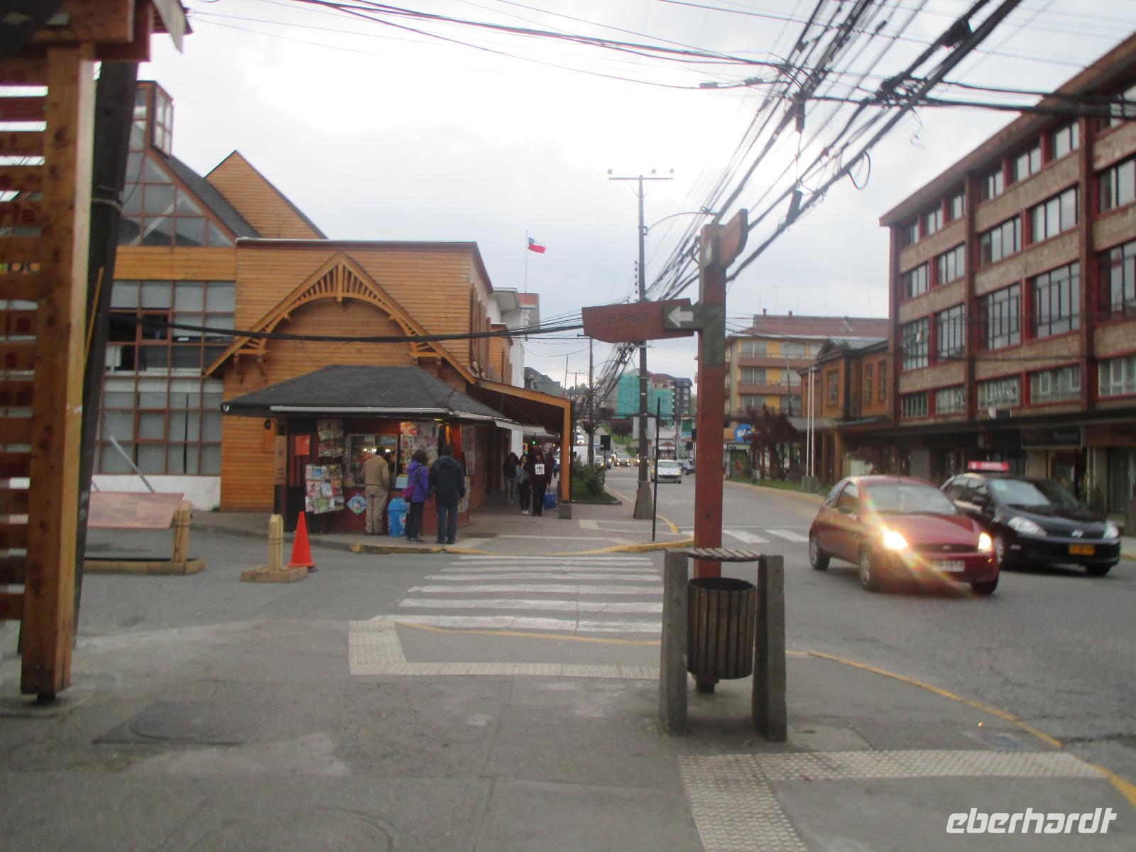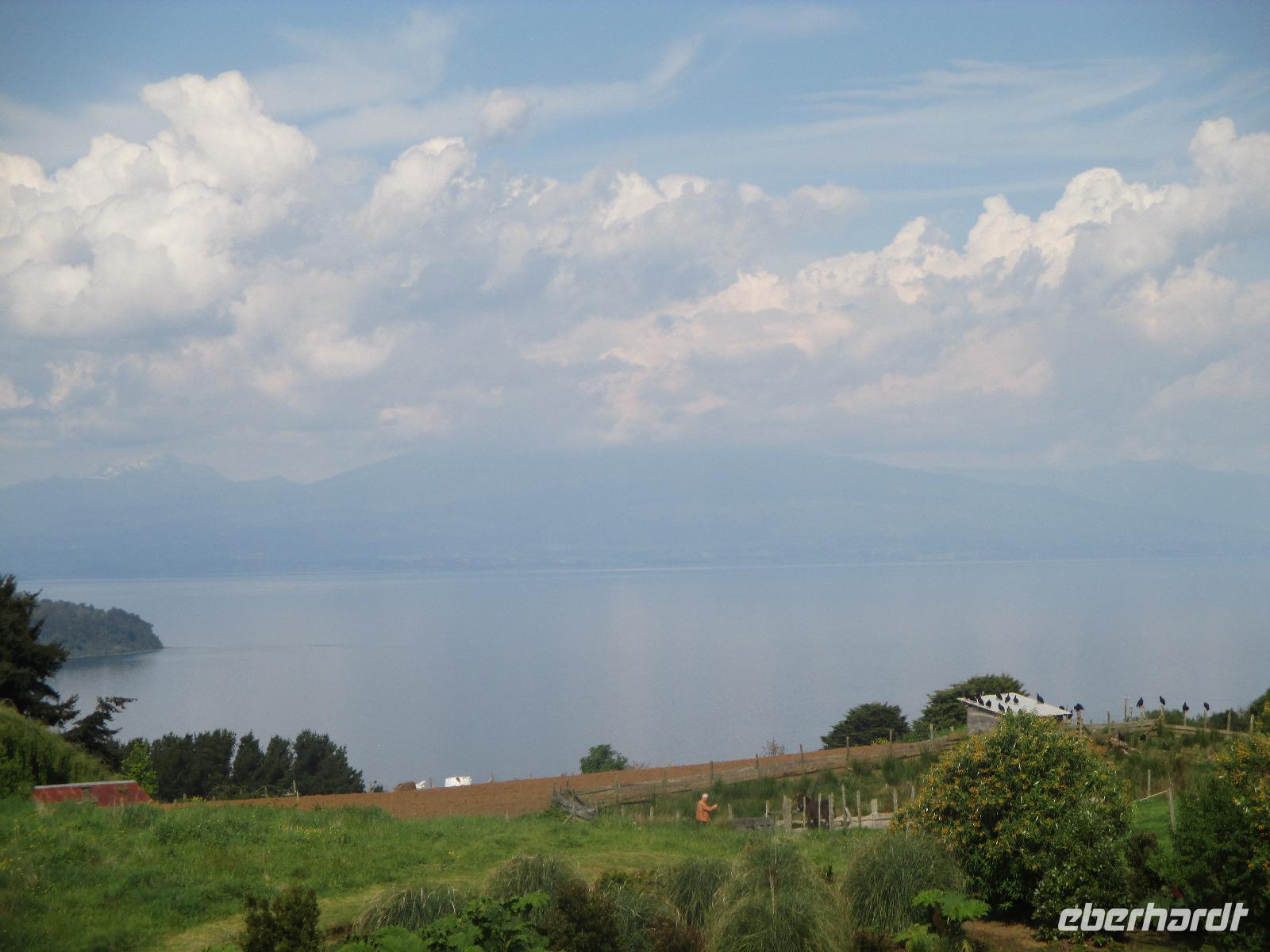 Heute geht es zurück nach Chile. Zunächst schlagen wir den gleichen Weg ein, den wir am Vortag bereits genommen haben und fahren zurück nach La Angostura. Hier machen wir einen kurzen Stopp bevor es weitergeht zur argentinischen Grenzen. Die Abfertigung erfolgt hier ziemlich schnell und so befinden wir uns bereits nach wenigen Minuten im Niemalsland zwischen Argentinien und Chile, das sich über 17 Kilometer erstreckt. Zwischendurch halten wir immer mal wieder an um Fotos mit unseren Kameras festzuhalten. Der Grenzübertritt in Chile ist schon etwas schwerwiegender. Erst einmal heißt es warten, bis der Bus vor uns abgefertigt ist. Dann geht Eric mit all unseren Pässen in die Station, um diese stempeln zu lassen. Als dies erledigt ist, dürfen wir alle mit unserem Handgepäck aussteigen. Das wird im Inneren des Gebäudes auf ein Band gelegt und durch einen Hund beschnüffelt. Zeitgleich müssen unsere Busfahrer alle unsere Koffer aus dem Bus holen, damit der Hund hier ebenfalls durchgehen kann. Und tatsächlich schlägt der Hund an und ein Koffer wird genauer kontrolliert. Mit dem Ergebnis, dass nichts gefunden wird. Als wir schließlich alle wieder im Bus sitzen geht es weiter in Richtung Puerto Octay. Auch bei dieser Fahrt ändert sich die Natur wieder stetig und irgendwie erinnert uns diese an zuhause. Wir erreichen unser Restaurant für das heutige späte Mittagessen mit dem seltsamen Namen „Vogelscheuche". Bei Essen vom Buffet und Getränke satt stärken wir uns. Danach haben wir noch ein wenig Zeit um uns die Gegend näher anzuschauen und den Vulkan Osorno, leider wolkenverhangen, zu fotografieren. Danch geht es weiter nach Puerto Varas, ebenfalls eine Stadt an einem See, das sehr von Deutschen geprägt ist. Hier verbringen wir die kommende Nacht.