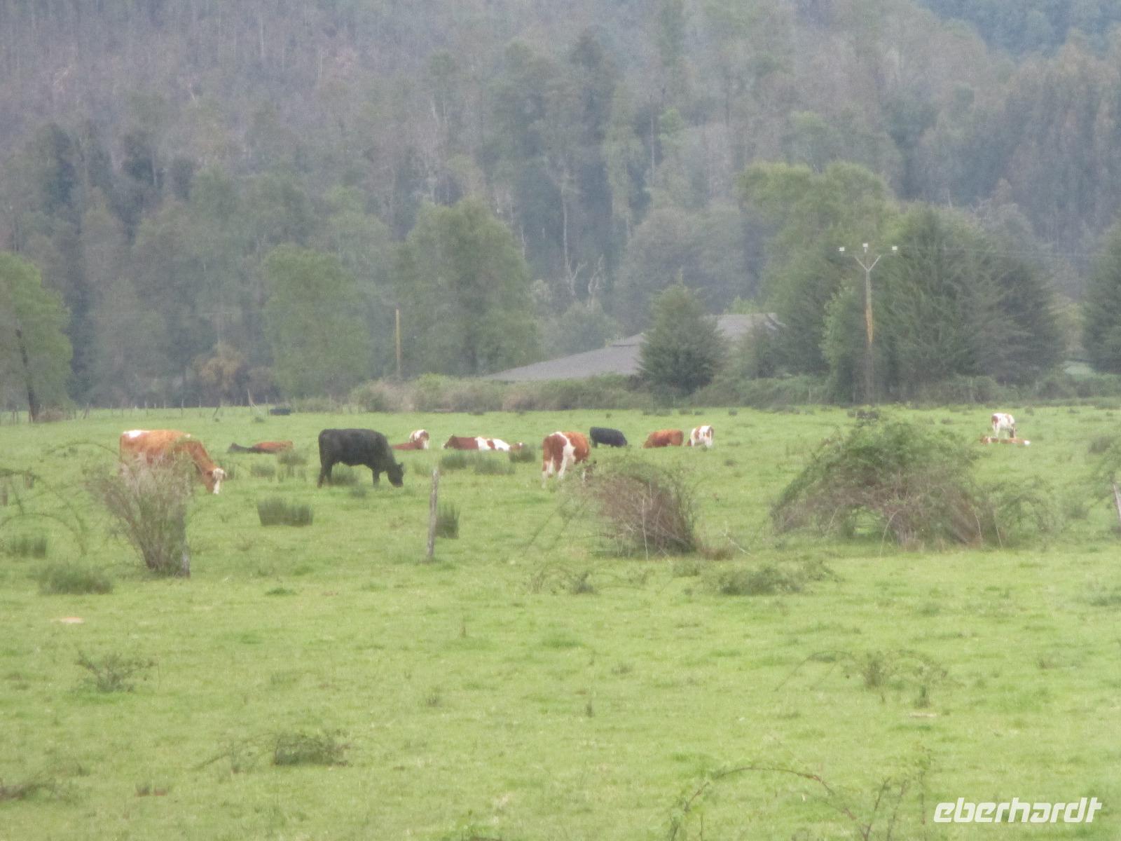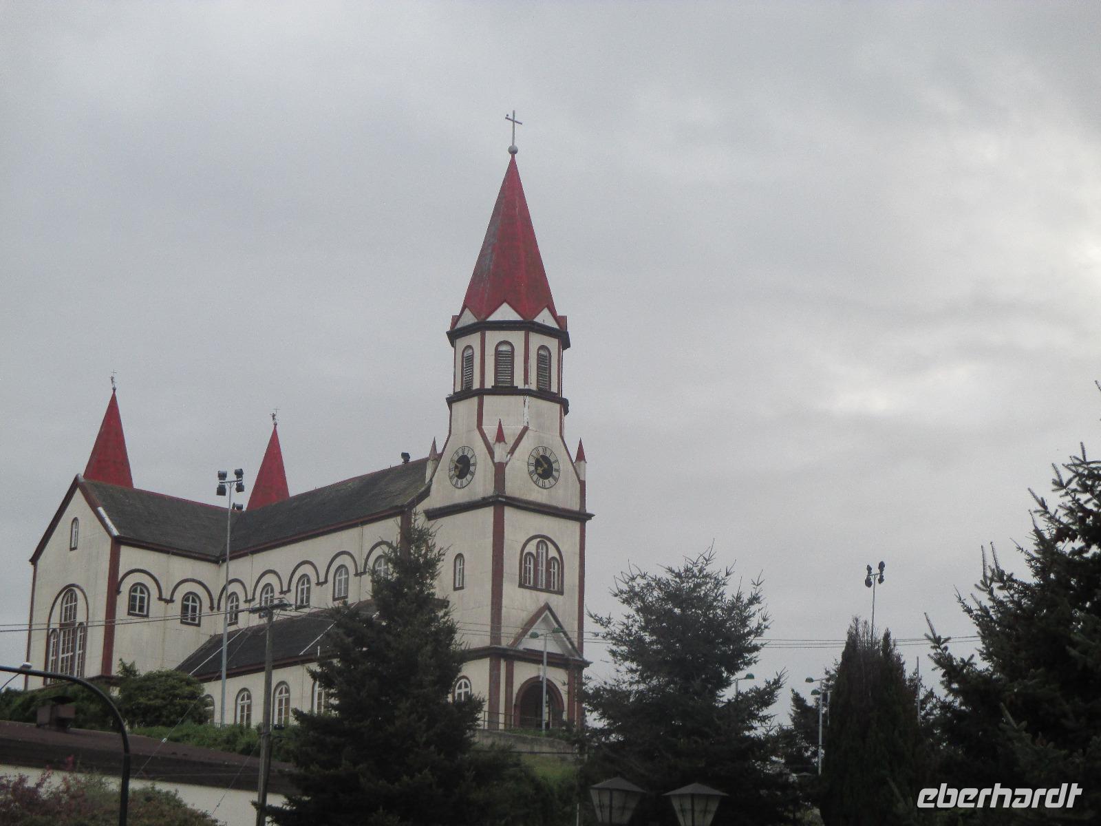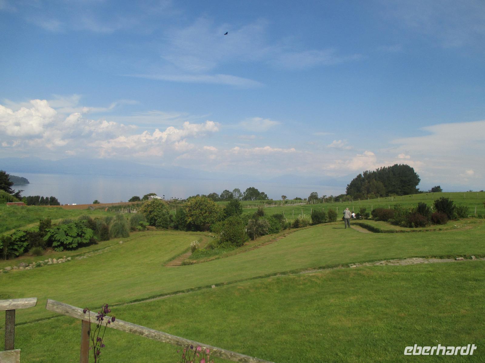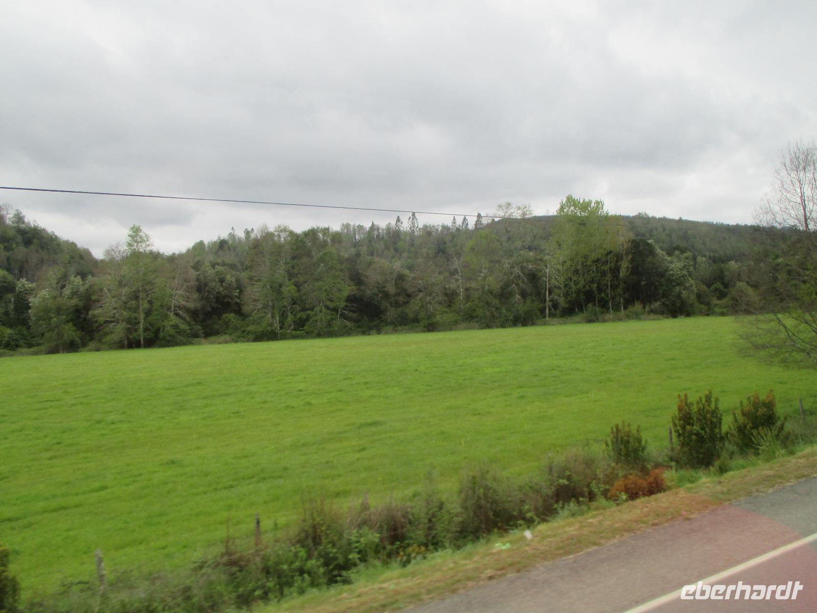 Heute geht es zurück nach Chile. Zunächst schlagen wir den gleichen Weg ein, den wir am Vortag bereits genommen haben und fahren zurück nach La Angostura. Hier machen wir einen kurzen Stopp bevor es weitergeht zur argentinischen Grenzen. Die Abfertigung erfolgt hier ziemlich schnell und so befinden wir uns bereits nach wenigen Minuten im Niemalsland zwischen Argentinien und Chile, das sich über 17 Kilometer erstreckt. Zwischendurch halten wir immer mal wieder an um Fotos mit unseren Kameras festzuhalten. Der Grenzübertritt in Chile ist schon etwas schwerwiegender. Erst einmal heißt es warten, bis der Bus vor uns abgefertigt ist. Dann geht Eric mit all unseren Pässen in die Station, um diese stempeln zu lassen. Als dies erledigt ist, dürfen wir alle mit unserem Handgepäck aussteigen. Das wird im Inneren des Gebäudes auf ein Band gelegt und durch einen Hund beschnüffelt. Zeitgleich müssen unsere Busfahrer alle unsere Koffer aus dem Bus holen, damit der Hund hier ebenfalls durchgehen kann. Und tatsächlich schlägt der Hund an und ein Koffer wird genauer kontrolliert. Mit dem Ergebnis, dass nichts gefunden wird. Als wir schließlich alle wieder im Bus sitzen geht es weiter in Richtung Puerto Octay. Auch bei dieser Fahrt ändert sich die Natur wieder stetig und irgendwie erinnert uns diese an zuhause. Wir erreichen unser Restaurant für das heutige späte Mittagessen mit dem seltsamen Namen „Vogelscheuche". Bei Essen vom Buffet und Getränke satt stärken wir uns. Danach haben wir noch ein wenig Zeit um uns die Gegend näher anzuschauen und den Vulkan Osorno, leider wolkenverhangen, zu fotografieren. Danch geht es weiter nach Puerto Varas, ebenfalls eine Stadt an einem See, das sehr von Deutschen geprägt ist. Hier verbringen wir die kommende Nacht.