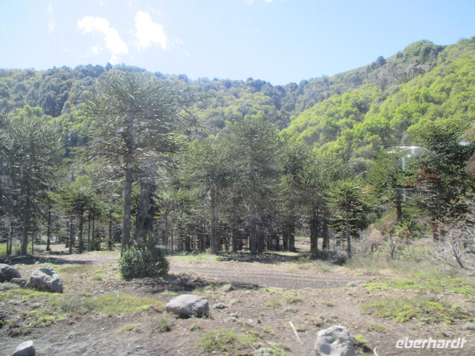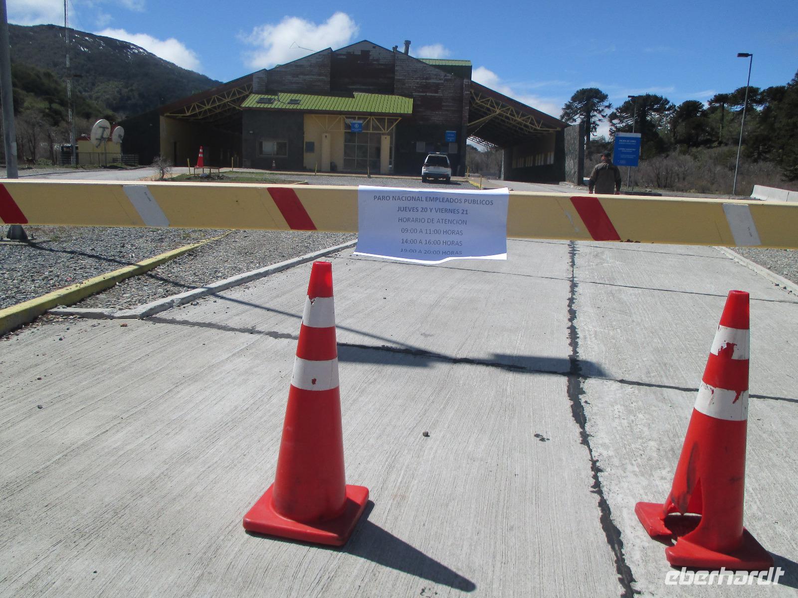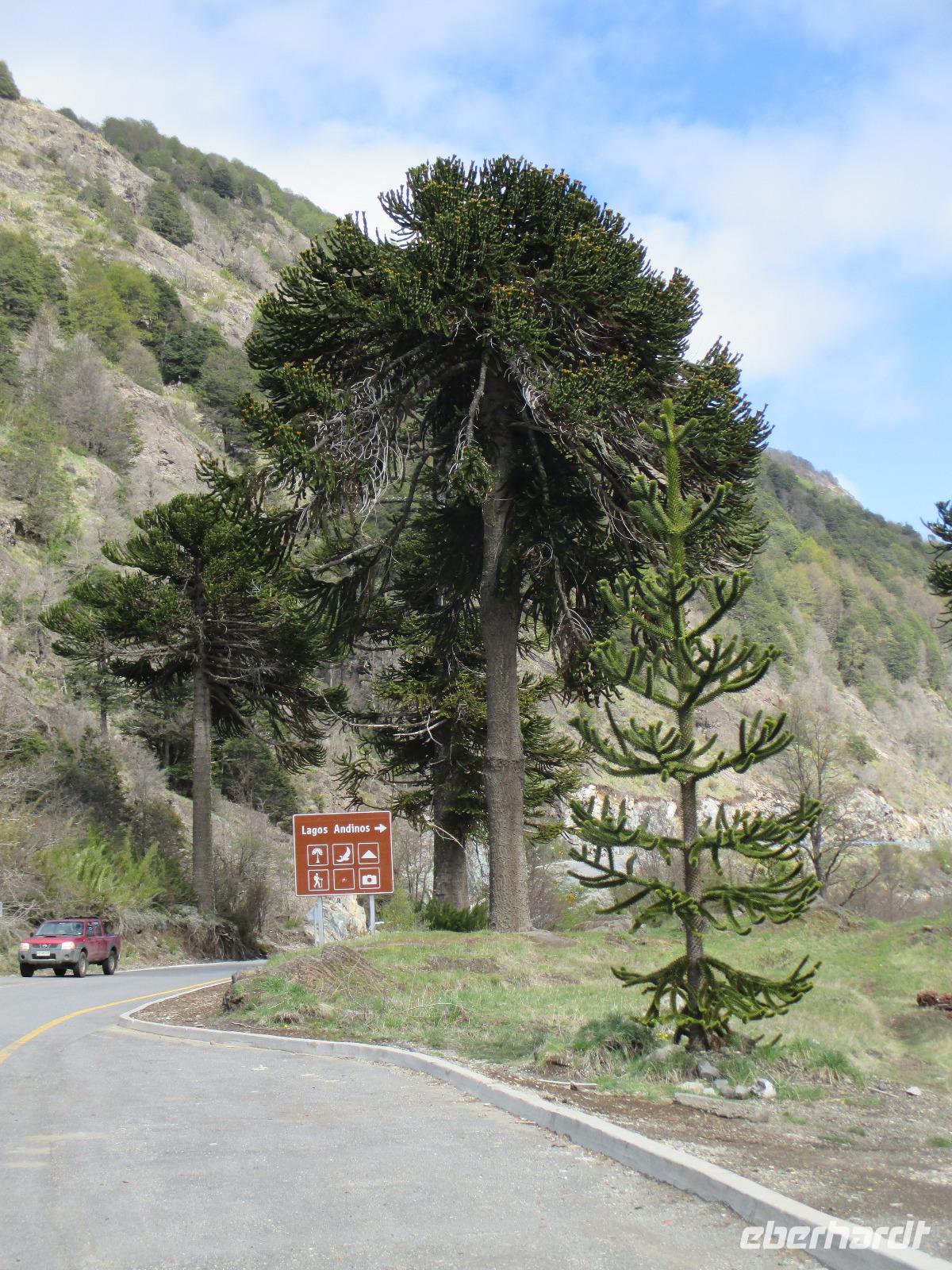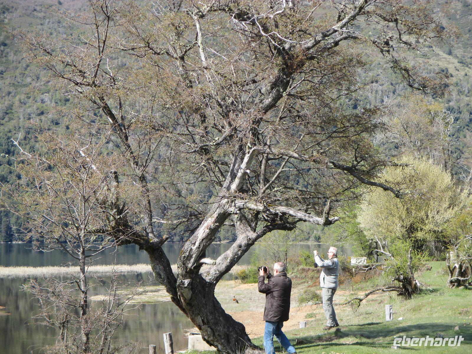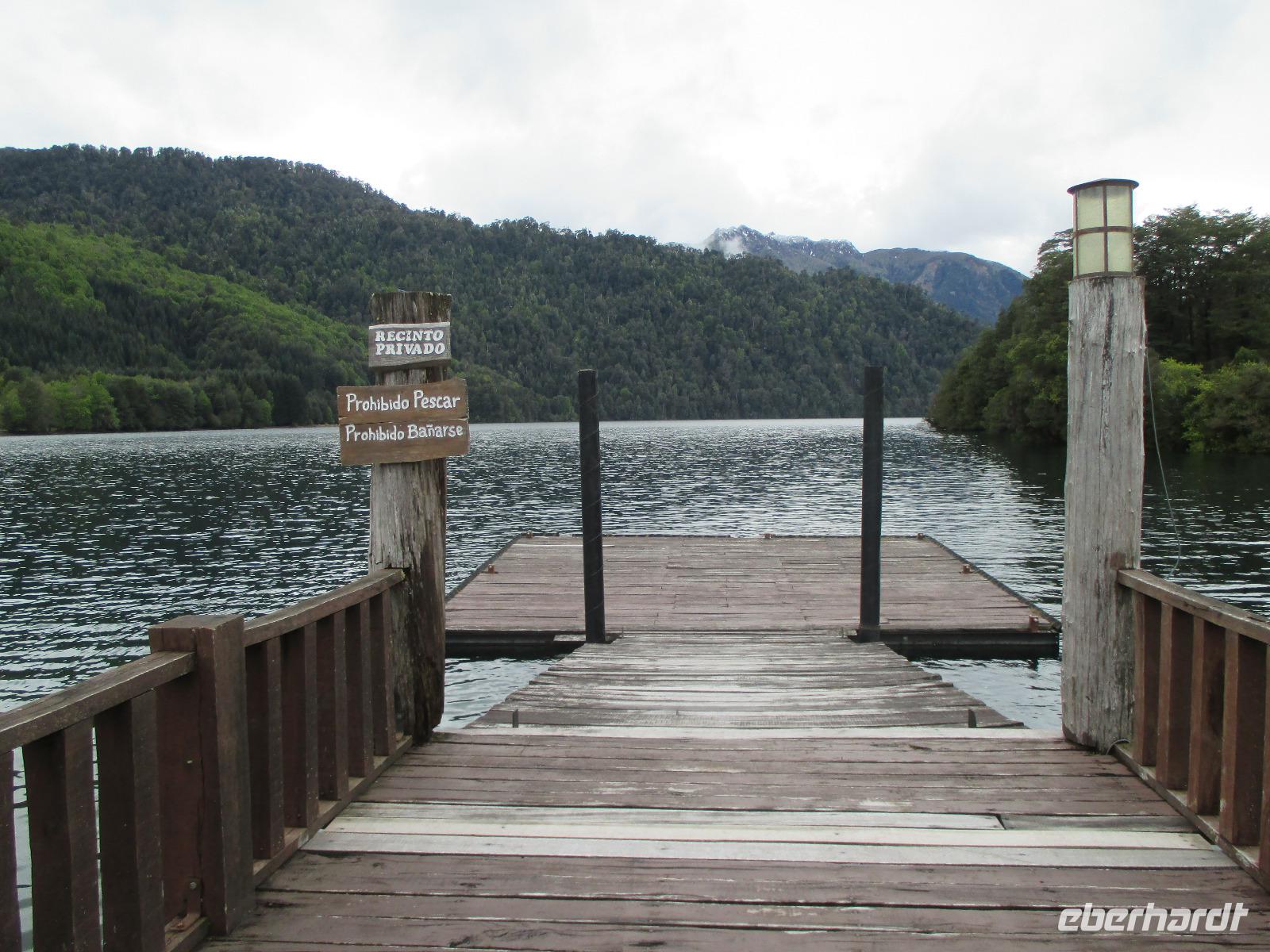 Nach einigen Widrigkeiten beim Frühstück checken wir im Hotel aus und unsere Bus-Chauffeure bringen uns zum Carabuga-Wasserfall. Dort angekommen machen wir erst einmal Bekanntschaft mit einem chilenischen „Kampfhund". Doch dann geht es los und wir steigen einige Stufen hinab um uns den Carabuga-Wasserfall anzuschauen. Nachdem unsere Bus-Chauffeure ihr Fotoshooting beendet haben, laufen wir noch ein kleines Stück weiter zur dazugehören Lagune. Danach ist der Weg das Ziel, denn wir wollen heute noch nach Argentinien. Kurz halten wir in einem kleinen Museum für Mapuche und schon geht es weiter entlang des Trompenpasen in Richtung chilenisch-argentinische Grenze. Die Natur ändert sich nun stetig und die endemischen Bäume werden immer interessanter für uns. Endlich kommen wir an der Grenze an und Samuel, der Hauptfahrer steigt aus um den Grenzübergang vorzubereiten. Leider kommt er mit weniger guten Nachrichten zurück: die Kontrolleure, die für die Autos und Busse zuständig sind, streiken. Und Sie arbeiten erst ab 14:00 Uhr wieder. Na toll, das sind ja nun rund noch zweieinhalb Stunden. Was tun? Nun als erstes machen wir die Personenkontrolle und holen uns den Ausreisestempel für Chile, den diese Kollegen arbeiten ja. Und dann heißt es warten, warten, warten. Wer im Bus kein Mittagsschlag halten möchte, unternimmt mit Eric eine wunderschöne und spontane Wanderung durch die hiesige Natur. Pünktlich um zwei nehmen die Kontrolleure wieder ihren Dienst auf und kurz danach rollt unser Bus in Richtung argentinischer Grenzübergang. Auch hier holen wir uns einen Stempel und schließlich setzen wir die restlichen runden hundert Kilometer bis nach San Martin del los Andes hauptsächlich durch argentinische Pampa fort. Nach dem Checkin im Hotel haben wir etwas Freizeit um Schokolade einkaufen zu gehen oder diese in flüssiger Form in einer der zahlreichen Cafe zu uns zu nehmen. Im ausgezeichneten Restaurant Ku speisen wir am Abend wahlweise Rind, Lamm oder Pasta.