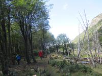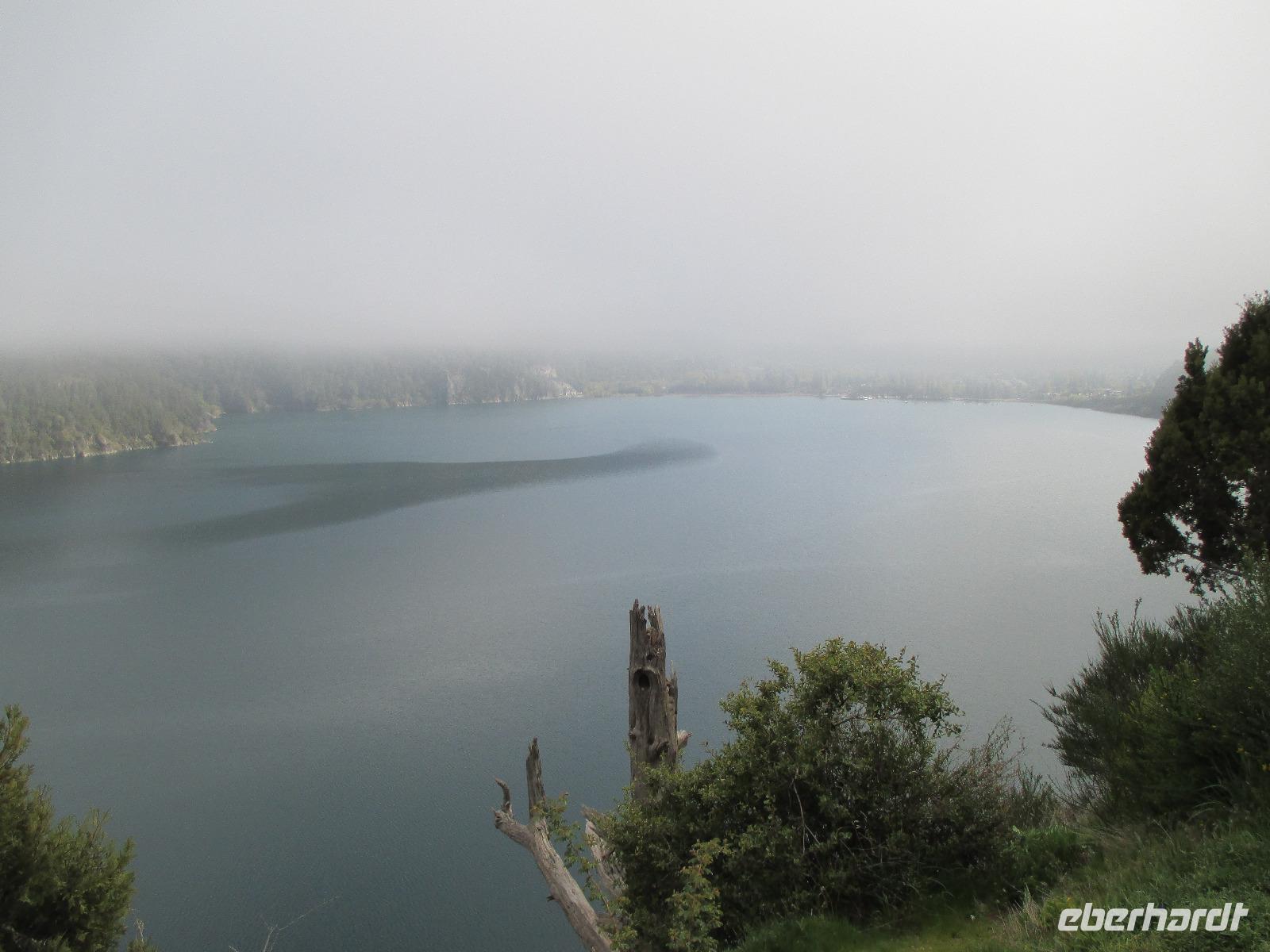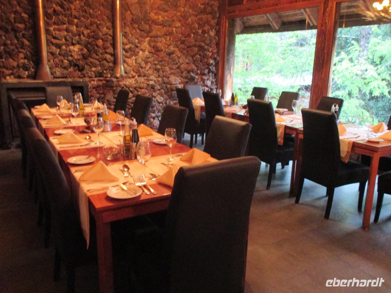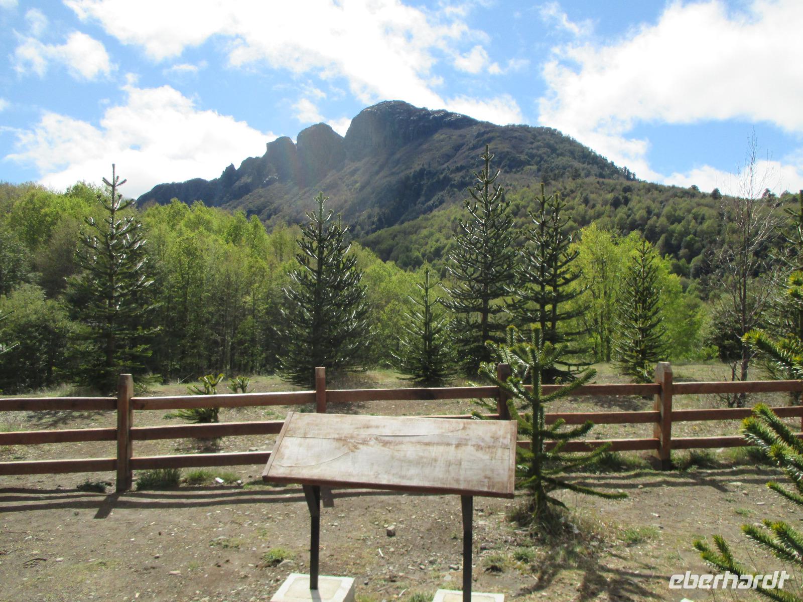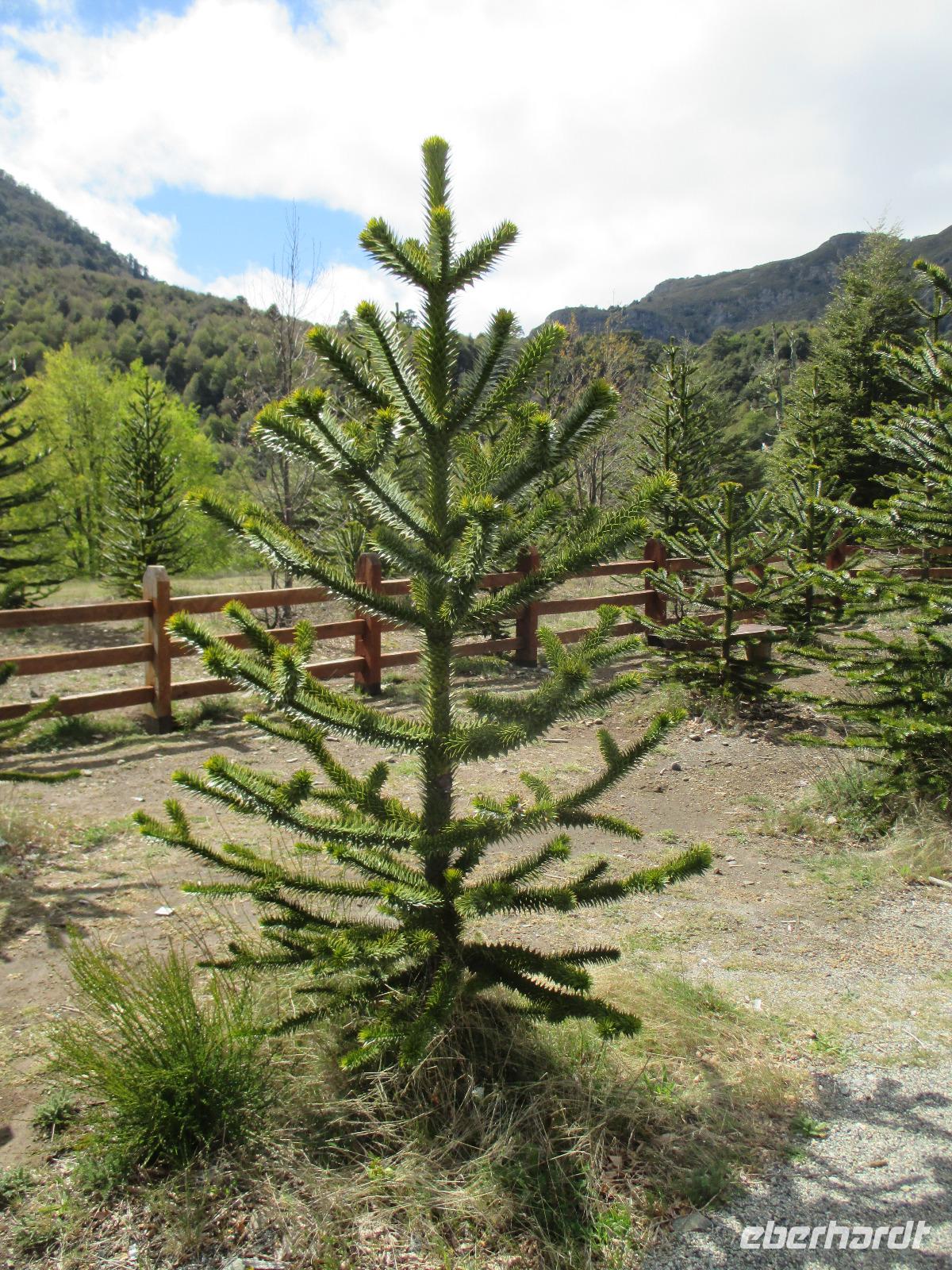 Nach einigen Widrigkeiten beim Frühstück checken wir im Hotel aus und unsere Bus-Chauffeure bringen uns zum Carabuga-Wasserfall. Dort angekommen machen wir erst einmal Bekanntschaft mit einem chilenischen „Kampfhund". Doch dann geht es los und wir steigen einige Stufen hinab um uns den Carabuga-Wasserfall anzuschauen. Nachdem unsere Bus-Chauffeure ihr Fotoshooting beendet haben, laufen wir noch ein kleines Stück weiter zur dazugehören Lagune. Danach ist der Weg das Ziel, denn wir wollen heute noch nach Argentinien. Kurz halten wir in einem kleinen Museum für Mapuche und schon geht es weiter entlang des Trompenpasen in Richtung chilenisch-argentinische Grenze. Die Natur ändert sich nun stetig und die endemischen Bäume werden immer interessanter für uns. Endlich kommen wir an der Grenze an und Samuel, der Hauptfahrer steigt aus um den Grenzübergang vorzubereiten. Leider kommt er mit weniger guten Nachrichten zurück: die Kontrolleure, die für die Autos und Busse zuständig sind, streiken. Und Sie arbeiten erst ab 14:00 Uhr wieder. Na toll, das sind ja nun rund noch zweieinhalb Stunden. Was tun? Nun als erstes machen wir die Personenkontrolle und holen uns den Ausreisestempel für Chile, den diese Kollegen arbeiten ja. Und dann heißt es warten, warten, warten. Wer im Bus kein Mittagsschlag halten möchte, unternimmt mit Eric eine wunderschöne und spontane Wanderung durch die hiesige Natur. Pünktlich um zwei nehmen die Kontrolleure wieder ihren Dienst auf und kurz danach rollt unser Bus in Richtung argentinischer Grenzübergang. Auch hier holen wir uns einen Stempel und schließlich setzen wir die restlichen runden hundert Kilometer bis nach San Martin del los Andes hauptsächlich durch argentinische Pampa fort. Nach dem Checkin im Hotel haben wir etwas Freizeit um Schokolade einkaufen zu gehen oder diese in flüssiger Form in einer der zahlreichen Cafe zu uns zu nehmen. Im ausgezeichneten Restaurant Ku speisen wir am Abend wahlweise Rind, Lamm oder Pasta.
