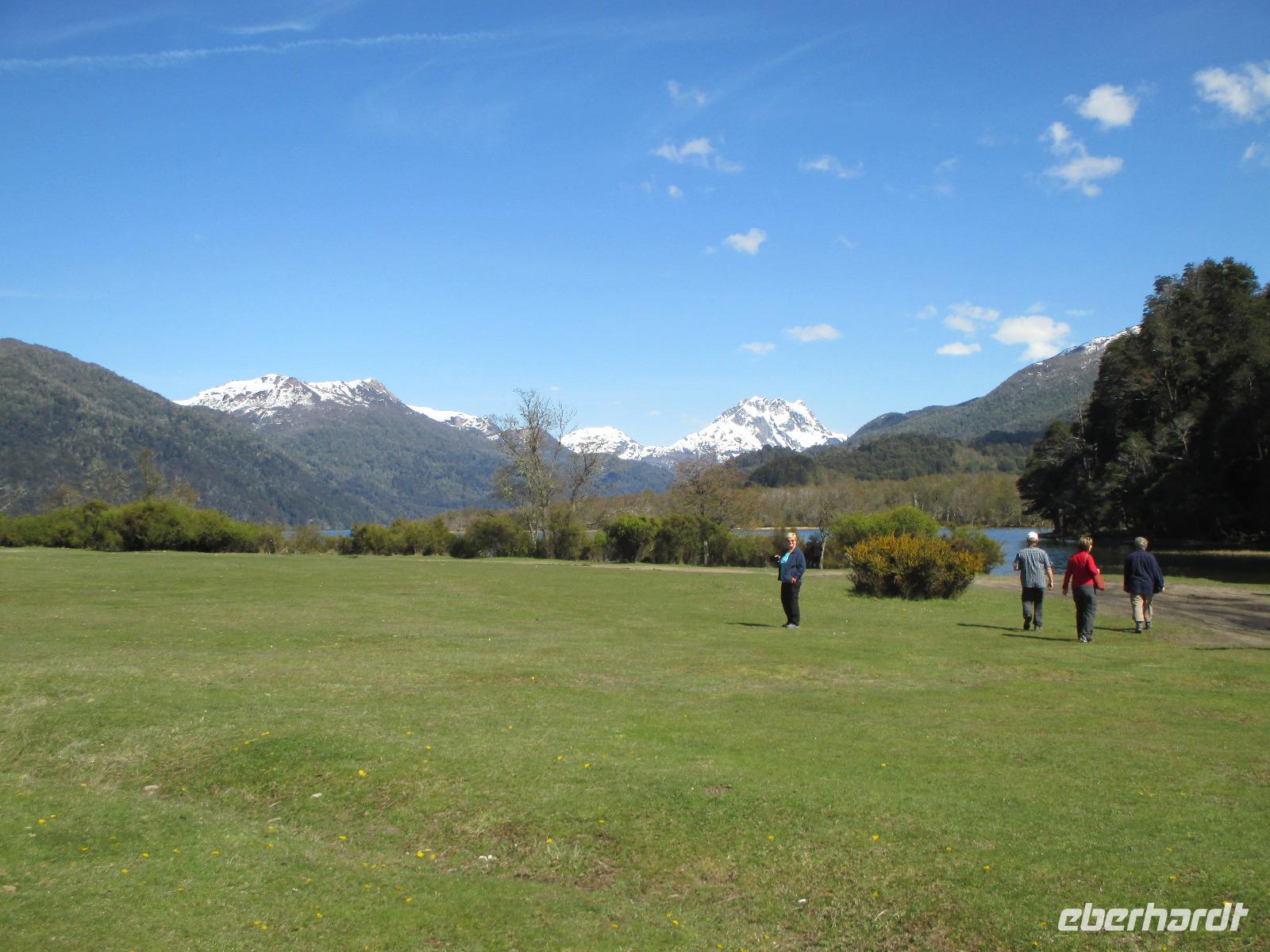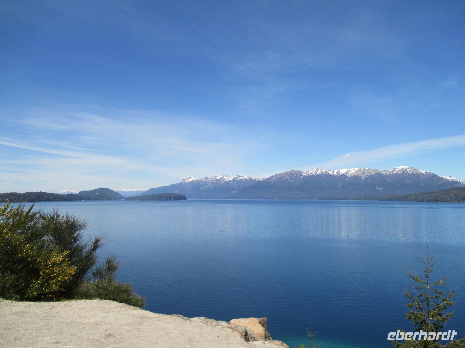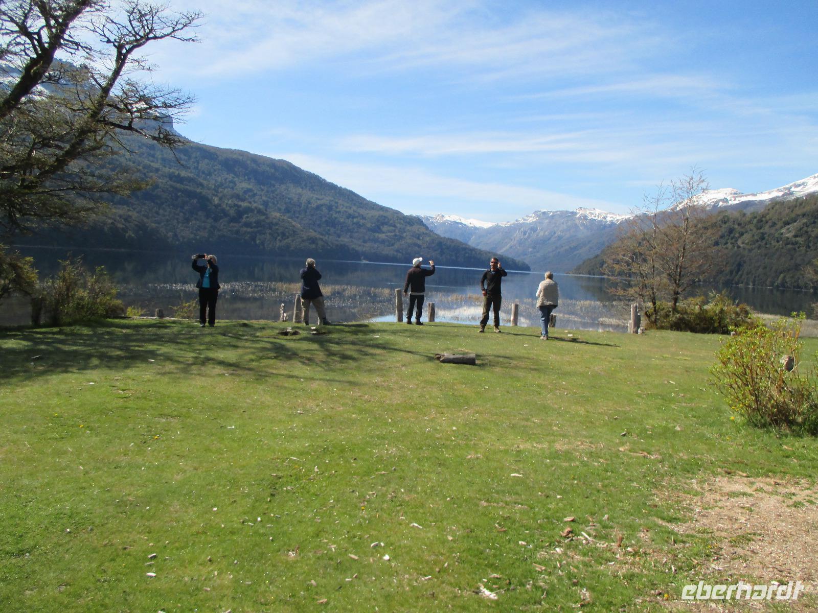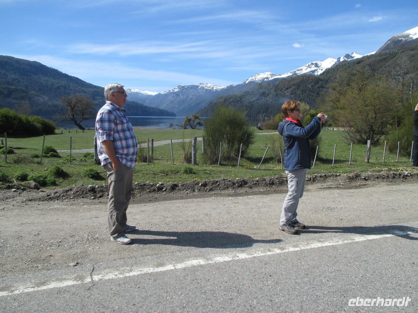 Auch heute ist wieder der Weg das Ziel, und was für eines. Unsere Fahrt führt uns von San Martin de los Andes nach Bariloche entlang des 7-Seen-Gebietes. Natürlich heißt es da heute öfter einmal: aussteigen, Fotos machen, kleiner Spaziergang und dann wieder einsteigen. So halten wir unter anderem am Lago Lacar, nach in San Martin gelegen und am Lao Machonico. Die Seen sind klar und teilweise spiegelt sich die Bergwelt in ihnen wieder. Die grüne Natur des aufkommenden Frühlings macht das schöne Bild noch komplett. Unsere Mittagspause verbringen wir in dem kleinen Ort La Angostura. Nach der Stärkung fahren wir noch rund zwei Stunden mit dem Bus, bevor wir den Nahuel Huapi See, an dem auch unser nächster Übernachtungsort Bariloche liegt, erreichen. Natürlich darf auch hier ein Fotostopp nicht fehlen. Bevor wir in die Stadt hineinfahren, muss unser Fahrer Samuel den Bus anmelden. Das ist hier so Usus, da wir uns mit einem chilenischen Bus in Argentinien befinden. Dann geht es weiter. Unser eigentlich gebuchtes Hotel Nevada hat sich „leider" überbucht und so übernachten wir in der kommenden Nacht im 5-Sterne-Hotel „Lago del Alma", direkt am Nahuel Huapi See gelegen. Alle unsere Zimmer haben Seeblick?. Die Zeit bis zum Abendessen steht uns individuell zur Verfügung. Auch Bariloche ist bekannt für Schokolade. Und so reiht sich auf der Hauptstraße ein Schokoladenshop neben dem anderen. Fleißige Händler stehen vor der Tür um uns mit Kostproben in ihre Läden zu locken. Nachdem wir eine kleine Ration gekauft haben, genießen wir in einem der zahlreichen Cafes einen Cappuccino. Das Abendessen haben wir heute in einem italienischen Restaurant. Uns wird Rind angeboten aber irgendwie haben wir uns argentinisches Rind besser vorgestellt. Hoffentlich wird das noch was auf dieser Reise....