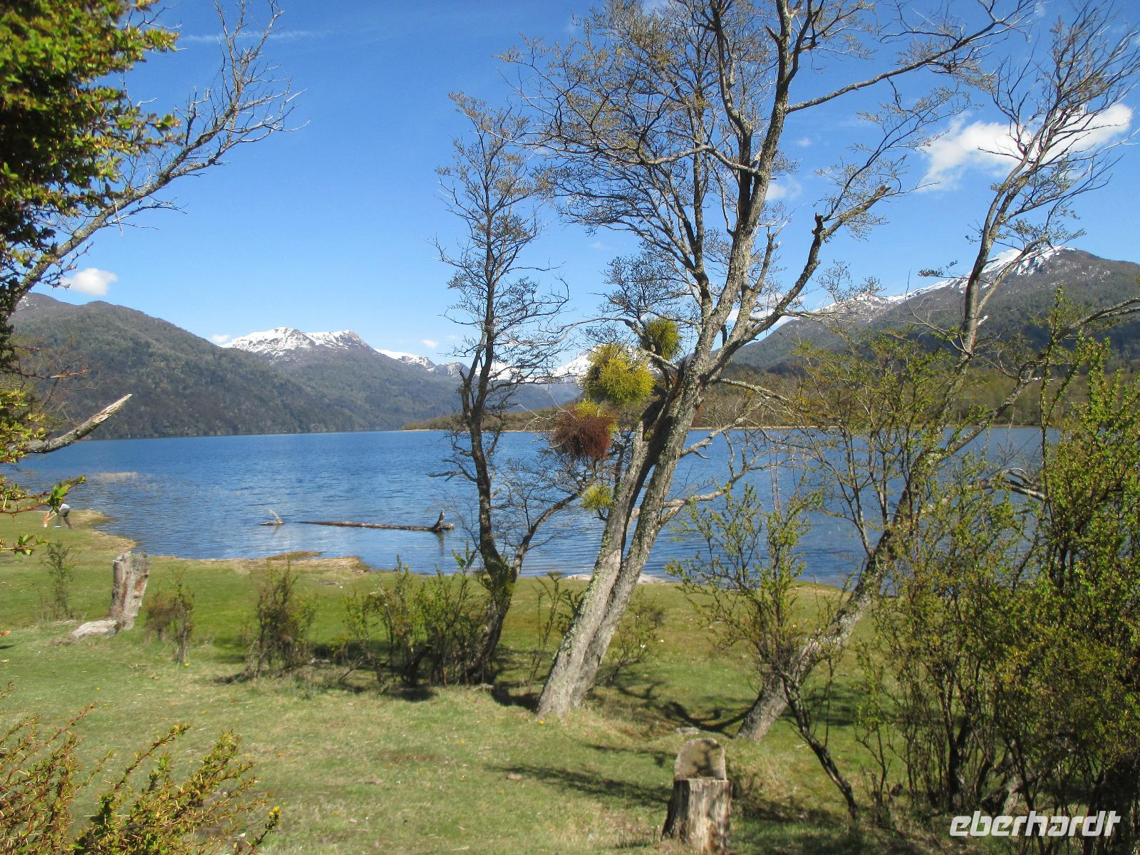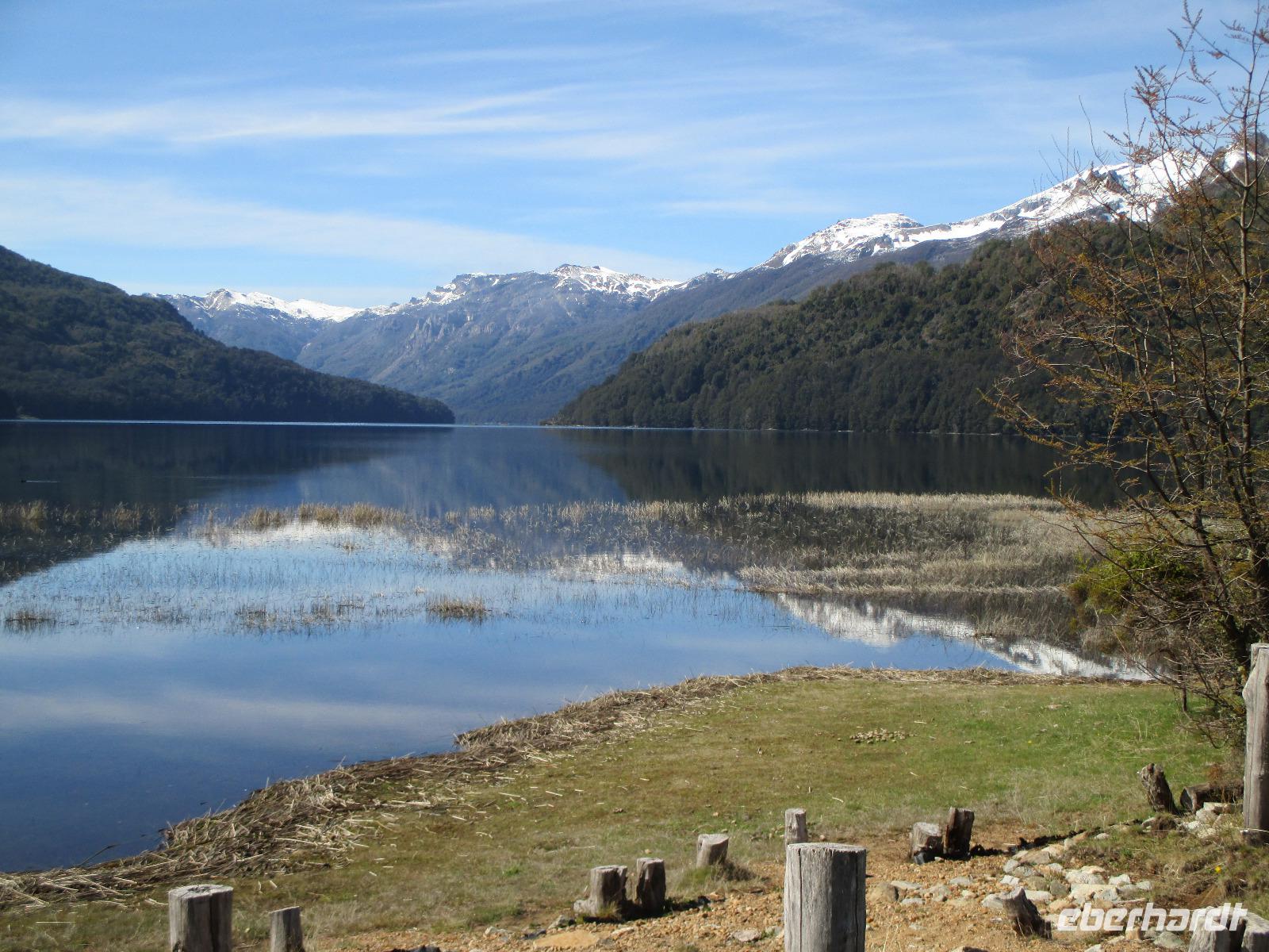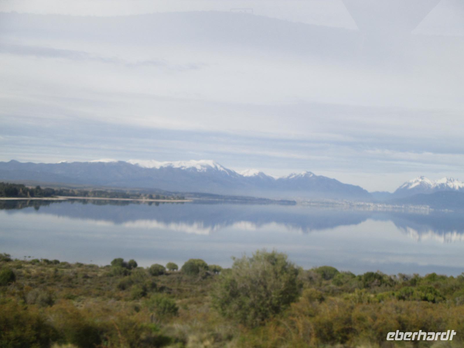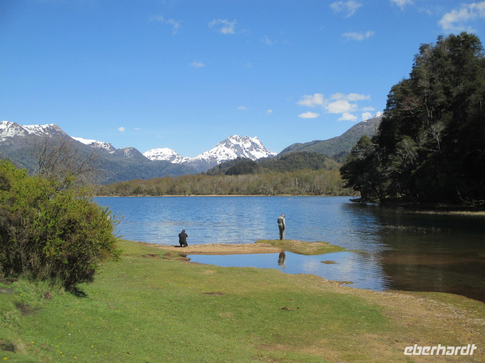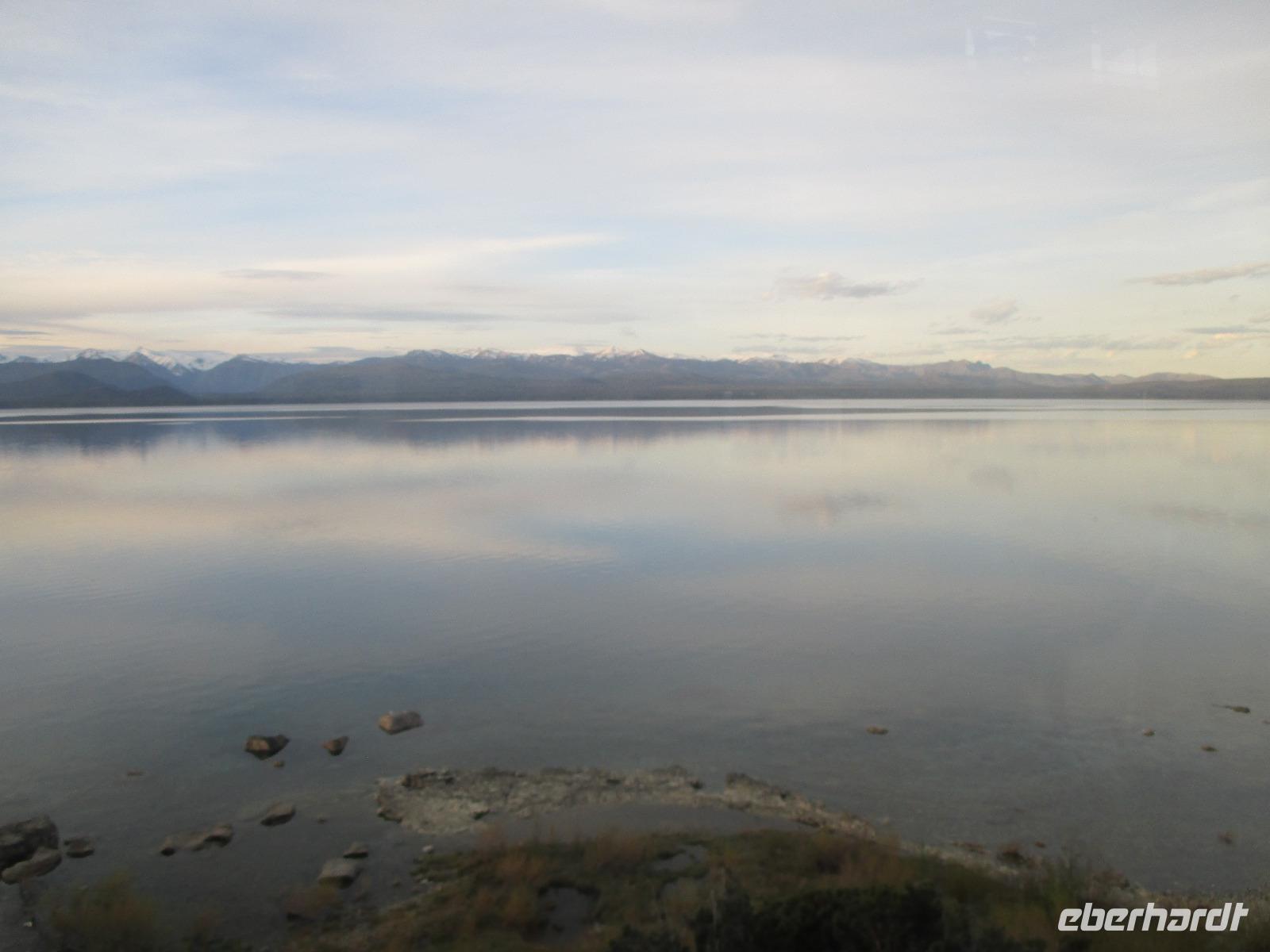 Auch heute ist wieder der Weg das Ziel, und was für eines. Unsere Fahrt führt uns von San Martin de los Andes nach Bariloche entlang des 7-Seen-Gebietes. Natürlich heißt es da heute öfter einmal: aussteigen, Fotos machen, kleiner Spaziergang und dann wieder einsteigen. So halten wir unter anderem am Lago Lacar, nach in San Martin gelegen und am Lao Machonico. Die Seen sind klar und teilweise spiegelt sich die Bergwelt in ihnen wieder. Die grüne Natur des aufkommenden Frühlings macht das schöne Bild noch komplett. Unsere Mittagspause verbringen wir in dem kleinen Ort La Angostura. Nach der Stärkung fahren wir noch rund zwei Stunden mit dem Bus, bevor wir den Nahuel Huapi See, an dem auch unser nächster Übernachtungsort Bariloche liegt, erreichen. Natürlich darf auch hier ein Fotostopp nicht fehlen. Bevor wir in die Stadt hineinfahren, muss unser Fahrer Samuel den Bus anmelden. Das ist hier so Usus, da wir uns mit einem chilenischen Bus in Argentinien befinden. Dann geht es weiter. Unser eigentlich gebuchtes Hotel Nevada hat sich „leider" überbucht und so übernachten wir in der kommenden Nacht im 5-Sterne-Hotel „Lago del Alma", direkt am Nahuel Huapi See gelegen. Alle unsere Zimmer haben Seeblick?. Die Zeit bis zum Abendessen steht uns individuell zur Verfügung. Auch Bariloche ist bekannt für Schokolade. Und so reiht sich auf der Hauptstraße ein Schokoladenshop neben dem anderen. Fleißige Händler stehen vor der Tür um uns mit Kostproben in ihre Läden zu locken. Nachdem wir eine kleine Ration gekauft haben, genießen wir in einem der zahlreichen Cafes einen Cappuccino. Das Abendessen haben wir heute in einem italienischen Restaurant. Uns wird Rind angeboten aber irgendwie haben wir uns argentinisches Rind besser vorgestellt. Hoffentlich wird das noch was auf dieser Reise....