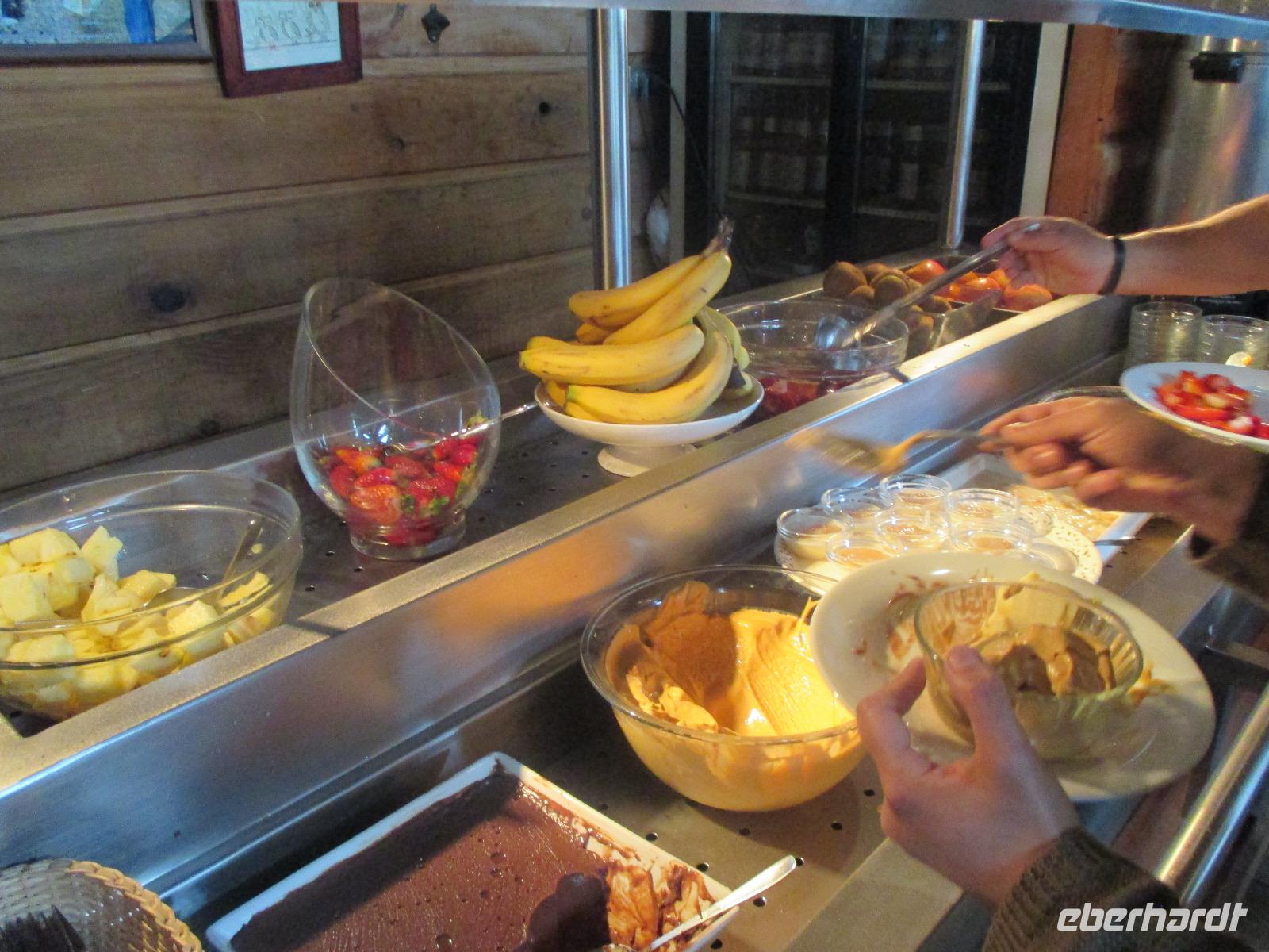 Nach einer ziemlich kurzen Nacht quälen wir uns aus unseren Betten zum Frühstück. Eric ist