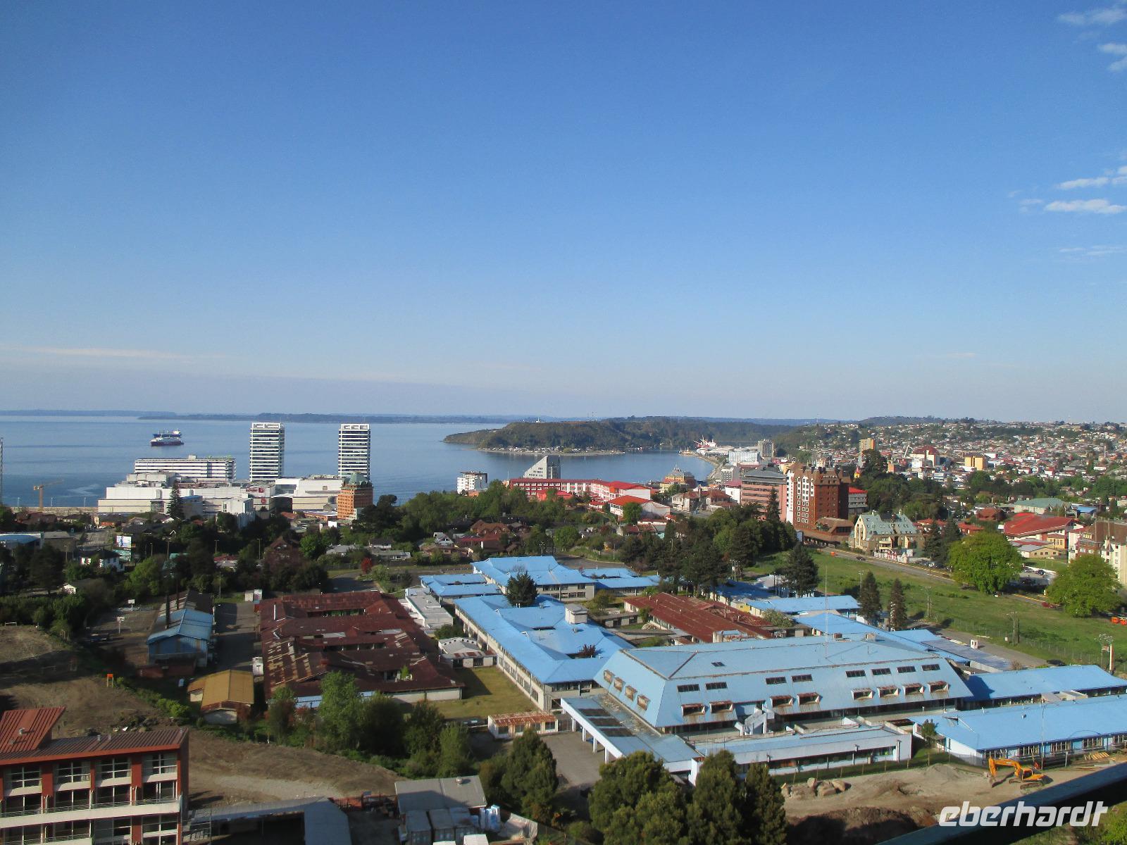 Wir checken im Hotel Cabanas del Lago aus und fahren in das rund 20 Minuten entfernte Puerto Montt. Zunächst halten wir an einem Aussichtspunkt von wo wir aus einen vollständigen Blick über die Stadt haben. Danach schlängelt sich der Bus die Straßen hinab bis zum Plaza de Armas, wo wir erneut aussteigen. Kurz vor dem Gottesdienst schlüpfen wir in die örtliche Kirche und schauen uns diese an. Im Inneren probt gerade ein Chor Lieder mit Orgeluntermalung - dies ist wirklich schön anzuhören. Danach haben wir noch ein wenig Zeit, das Denkmal für die deutschen Auswanderen anzuschauen, zum Meer herunterzulaufen oder sich das Denkmal der Liebenden anzuschauen. Heute ist relativ wenig los in der Stadt, da Bürgermeisterwahlen sind. Unser letzer Punkt in Puerto Montt ist der Besuch des hiesigen Hafens, in dem zahlreicher frischer Fisch, Obst, Gemüse, Käse und andere Produkte angeboten werden. Gemeinsam mit Eric spazieren wir durch den Markt und er zeigt bzw. erklärt uns die diversen Produkte. Peter lässt es sich im Anschluss daran natürlich nicht nehmen, sich frische Muscheln mit einem Glas Weißwein in einem der kleinen Restaurants schmecken zu lassen. Danach geht es zum Flughafen von Puerto Montt. Wir heben ab in Richtung Punta Arenas. Bei bestem Wetter sehen wir von hier oben auch den Perito-Moreno-Gletscher - einmalig. Pünktlich landen wir in Patagonien und unser neuer Busfahrer José erwartet uns bereits um uns nach Puerto Natales zu bringen. Nach rund zweieinhalb stündiger Fahrt erreichen wir die Weskar Lodge. Beim gemeinsamen Abendessen beobachten wir die untergehende Sonne, die sich langsam hinter der Bergwelt von uns verabschiedet.
