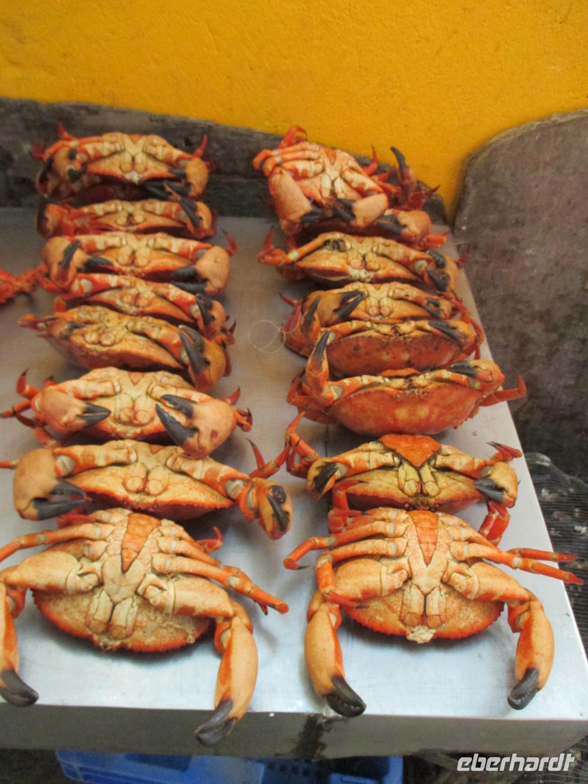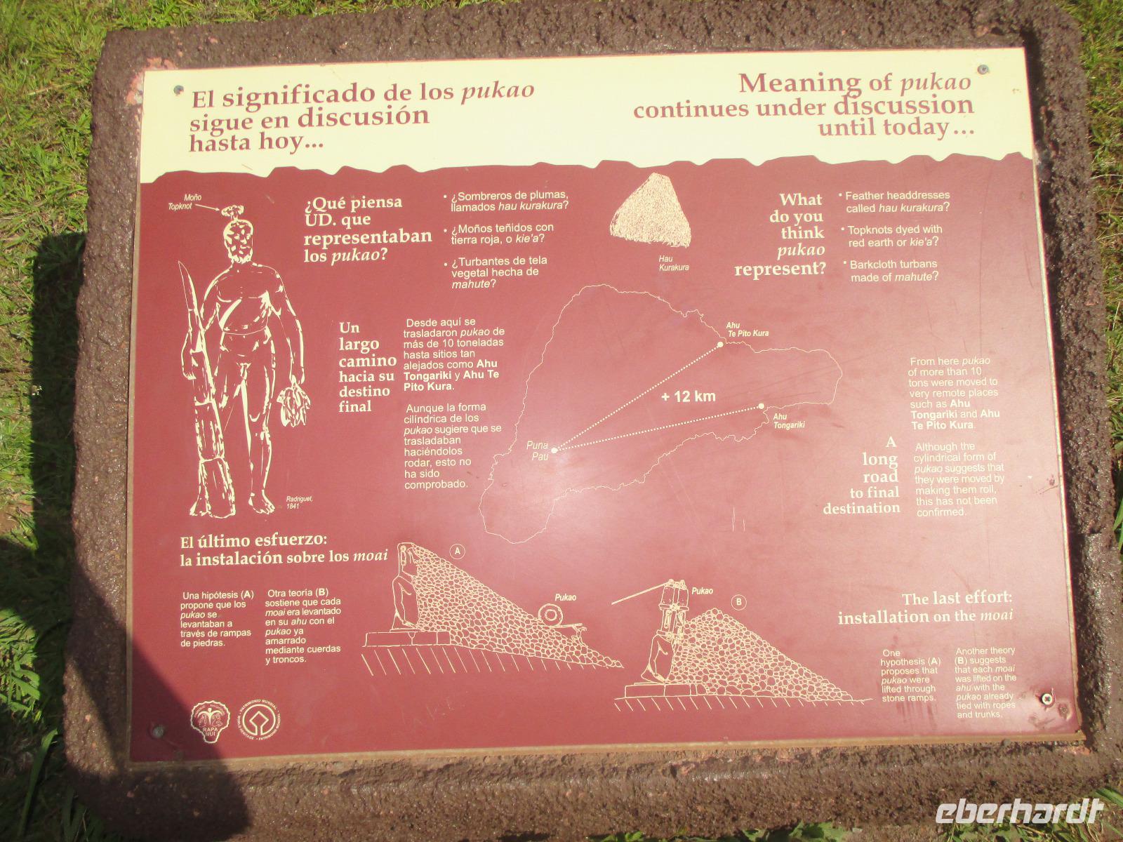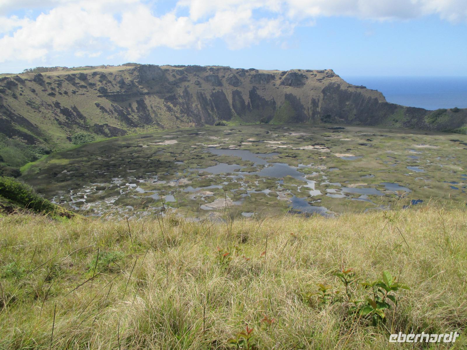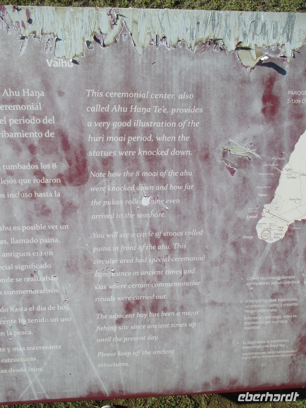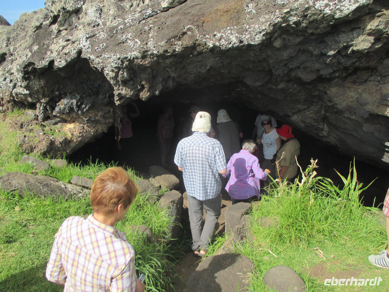 Bevor wir den heutigen Nachmittag frei gestalten können, unternehmen wir am Vormittag noch einen Halbtagesauflug, der uns zunächst in den Hafen von Hanga Roa führt. Hier legen unter anderem die Tenderschiffe der Kreuzfahrer an und die Fischer der Insel gehen hier mit ihrem Fang an Land. Es steht dann auch bereits ein Mittelsmann am Anleger an, der ihnen den Fisch abkauft um diesen an die Restaurants weiterzuverkaufen. Leider ist es somit den Inselbewohnern erschwert, preislich erschwinglich an guten Fisch zu gelangen. Wir sehen hier kleine Fische und Schildkröten, die wissen, dass hier die Fischer sind und sie gut zufüttern. Nachdem wir uns den einzigen Moai im Hafen angeschaut haben, der als einer der letzten in den 90iger Jahren restauriert wurde, fahren wir entlang des Kraters nach Vinapu. Hier besichtigen wir eine Mauer als auch einen Moai aus rotem Tuffstein. Dieser ;Moai ist der einzige weibliche, was man an die Brüsten erkennen würde. An diesem Moai ist auch noch der Bauchnabel erkennbar, was bei den anderen schon nicht mehr so ist. Malena zeigt uns noch das Kraftwerk der Insel und schon geht es weiter. Wir halten oberhalb von Hanga Roa und haben somit die Möglichkeit, die Fluglandebahn in ihrer gesamten Länge zu sehen. Nach unserem Besuch am Kratersee des Vulkan Raro Kau, ein Süßwasserspeicher, in dem auch das Wasser für die Hotels aufbereitet wird, bringt uns Luis zur Zeremonialsätte Orongo. Hier vorgelagert ist die Vogelinsel, um der auch der Vogelmannkult herrscht. Malena erzählt uns die gesamte Geschichte dazu und was für uns sehr erstaunlich ist, dass diese noch nicht mal sehr alt ist. Der letzte Vogelmannwettbewerb fand erst im jahr 1867 statt. Nachdem wir noch die Häuser angeschaut sowie einige Bilder im Eingangsbereich der Stätte angeschaut haben, fahren wir zurück nach Hanga Roa. Der Nachmittag steht uns nun frei. Wir nutzen diesen zum Mittagessen oder zwei meiner Gäste gehen sogar tauchen. Andere wiederum bummeln durch die Hauptstraße des Ortes oder ruhen sich am hoteleigenen Pool aus.