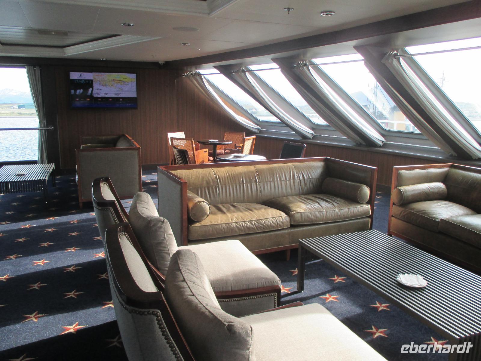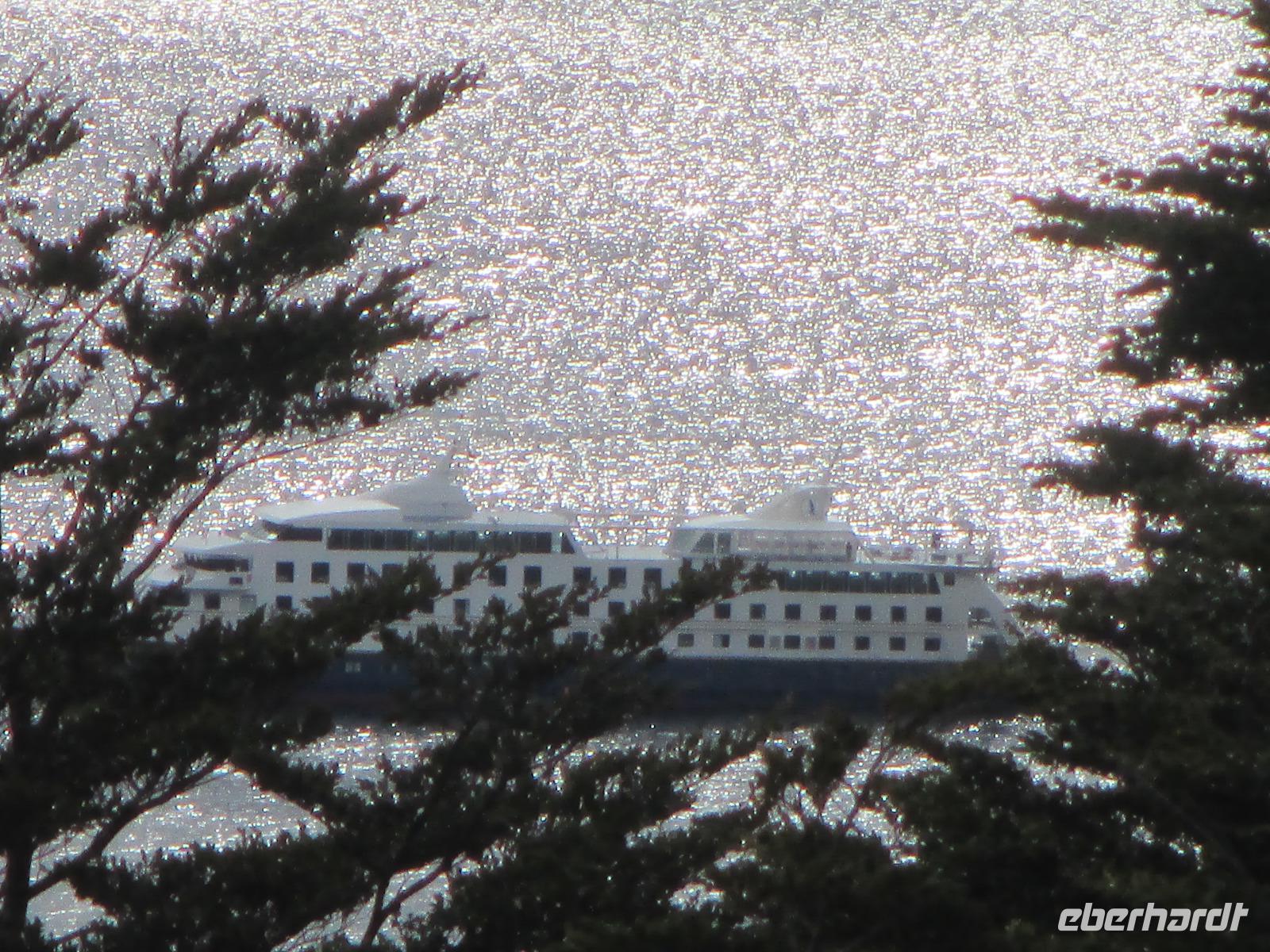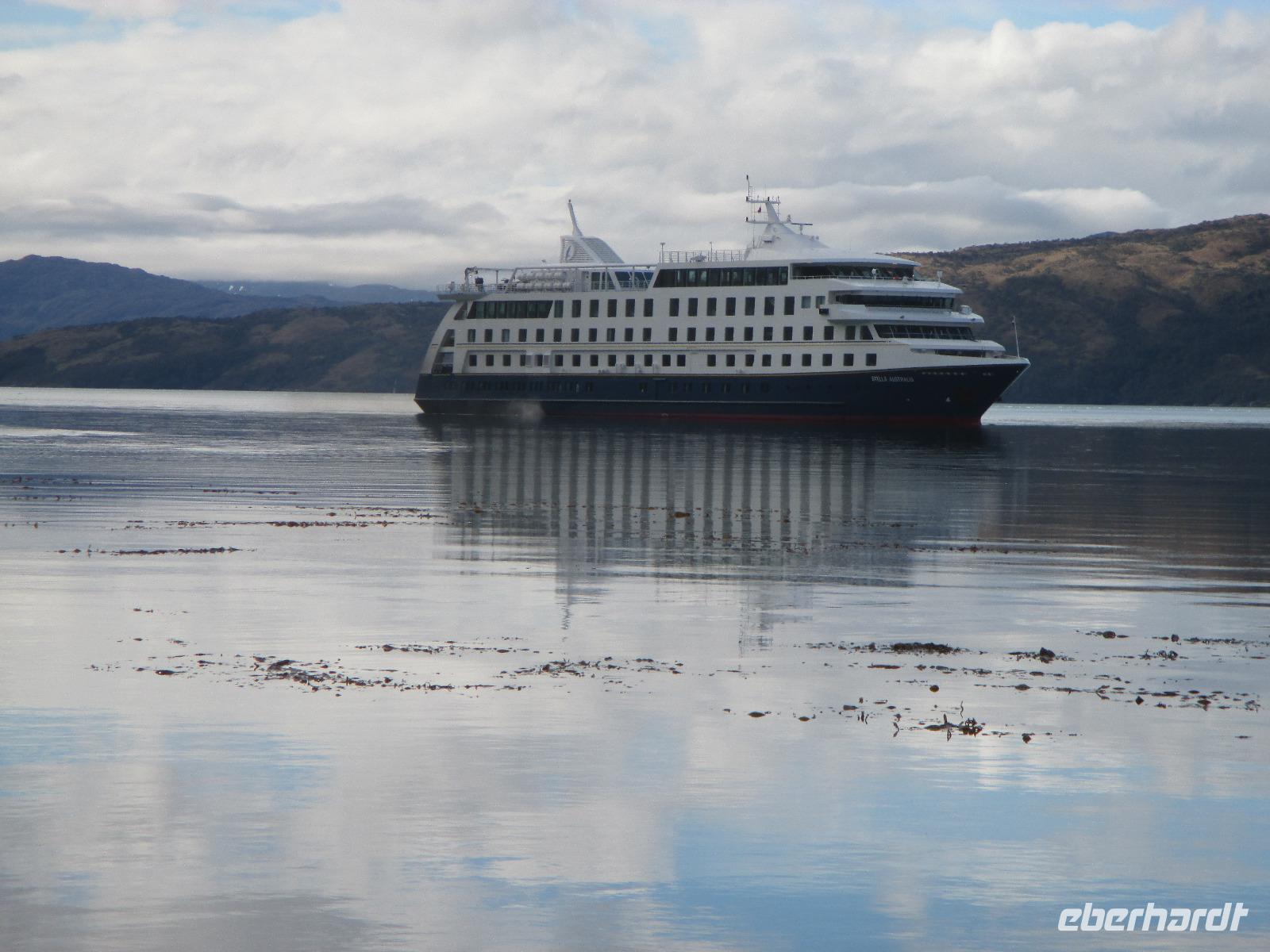Die erste Nacht an Bord verlief ruhig und wir sind alle ausgeschlafen. Wer möchte, kann sich ab 06:00 Uhr mit einem starken Kaffee munter machen. Danach treffen wir uns alle auf Deck 5 um die Entscheidung des Kapitäns abzuwarten, ob wir an Kap Hoorn anlanden können oder nicht. Wir sind alle guter Hoffnung, denn die Wellen sind nicht allzuhoch und auch der Wind ist noch nicht stark. Wir warten und warten und warten. Nach einer längeren Zeit entscheidet der Kapitän, dass wir aufgrund von Sicherheitsbedenken, nicht an Kap Hoorn anlanden werden. Die Enttäuschung ist natürlich riesengroß aber die Sicherheit geht immer vor. Und so möchte ich mich vor allem bei meiner Gruppe bedanken, die, im Gegensatz zu anderen Passagieren, für diese Entscheidung dennoch Verständnis aufbringen konnten. Damit wir aber nicht ganz umsonst die lange Tour unternommen haben, umrundet der Kapitän mit seiner Stella Australis das gesamte Kap. Das hat ja auch nicht jeder und so haben wir die Chance, noch das Denkmal zu fotografieren, den Leuchtturm zu sehen und uns vor der Pirartenflagge der Stella Australis aufzustellen, wer möchte. Nun heißt es erstmal auf Deck 1 "Frühstück ist fertig" und wir wärmen uns bei Kaffee und Tee auf. Das weitere Vormittagsprogramm ist gut geplant. Erst wird der englischsprachige Film "Die Antarktis-Expedition von Shacklezon" gezeigt und anschließend Vorträge über "Patagonien, Eis und Blumen" sowie über den nachmittäglichen Ausflug zur Wulaia-Bucht" gehalten. Halb zwolf lädt uns Diana ein, mit ihr auf die Brücke zu kommen. Der Kapitän hält sich ganz still im Hintergrund und lässt uns auf seinen Stuhl Platz nehmen. Seine Crew erklärt uns, wie die Stella Australis gesteuert wird, was es mit den ganzen Sicherheitssystemen auf sich hat und die Einzeichnung der Seekarte. Nach einem Mittagessen vom Buffet und der dazugehörigen Siesta treffen wir uns am späteren Nachmittag mit unserem Guide Augustin für eine mittelschwere Wanderung der Wulaia-Bucht wieder. Augustin erzählt uns einige (Liebes-)Geschichten zum Leben der Yaghán-Indianer, über kroatische Bewohner, die hier ihre Zelte aufschlugen als auch zur hiesigen Pflanzenwelt. Wir steigen bergauf über leicht verschlunge Pfade und erreichen schlussendlich einen Aussichtspunkt, bei der uns die gesamte Wulaia-Bucht zu Füßen liegt. Zurück in der Bucht besuchen wir noch das Informationszentrum, in dem wir uns über die Geschichte der ehemaligen Radiostation, der Entdeckungen und Schlachten hier in der Region informieren. Bevor wir mit dem Zodiac zurück übersetzen, wärmen wir uns bei heißer Schokolade. Dieser Abend klingt diesmal mit Bingo und Karaoke aus.