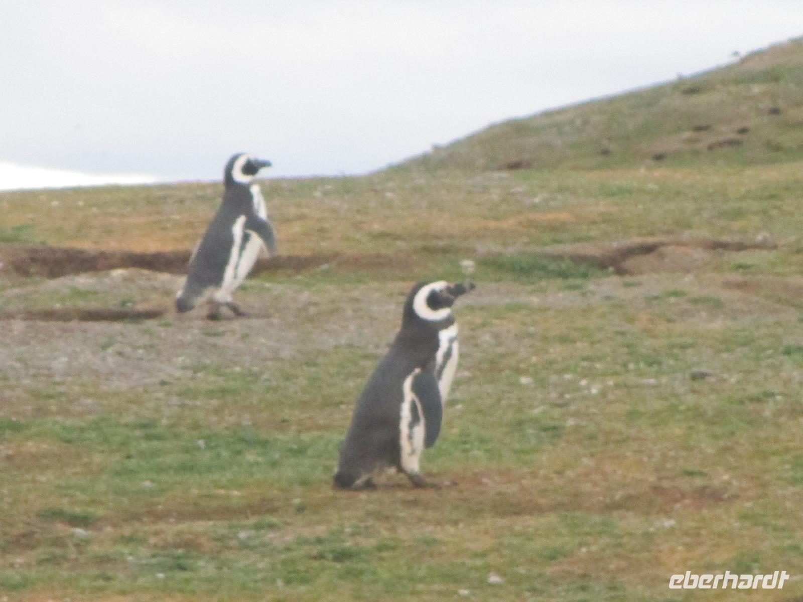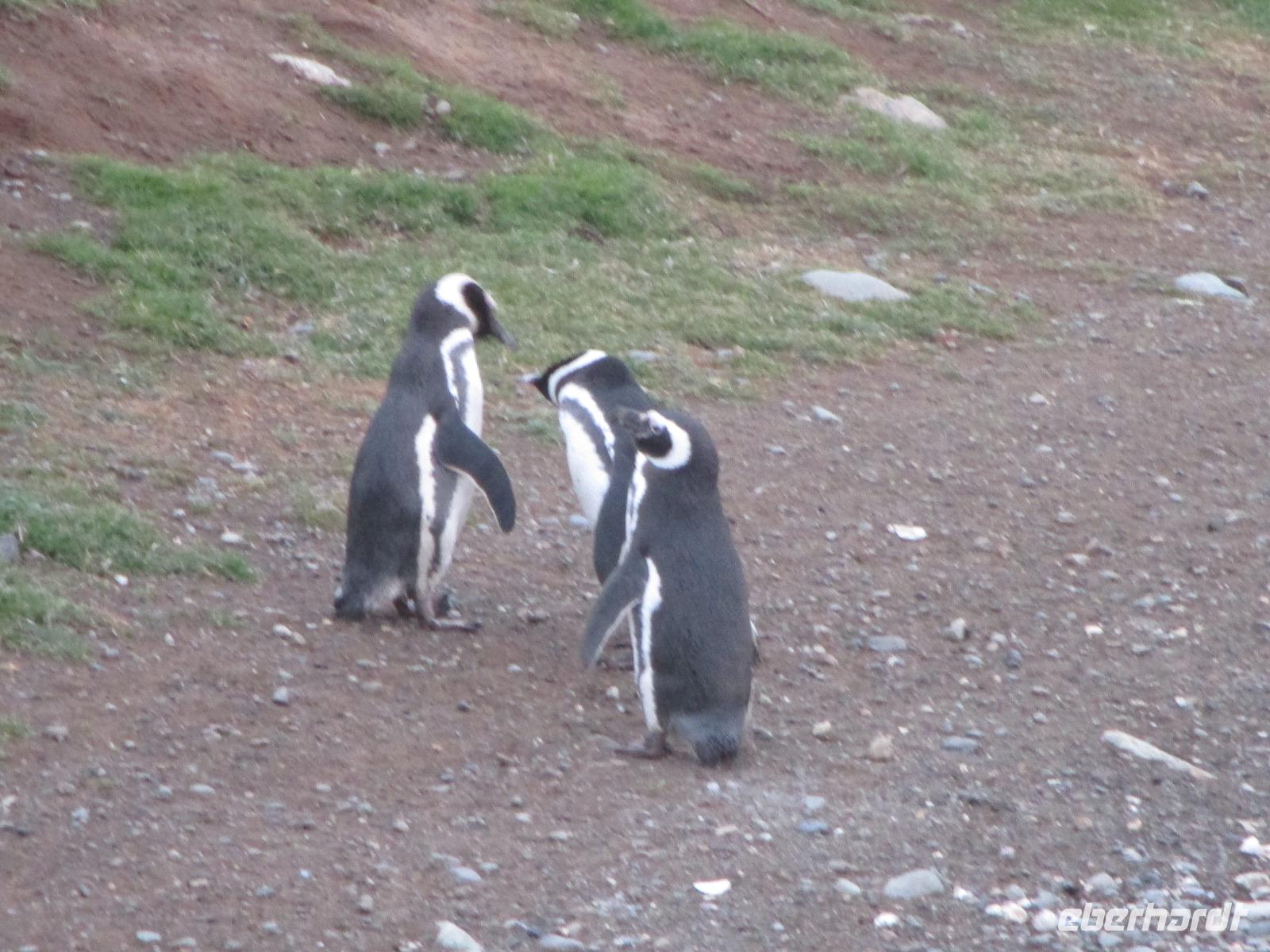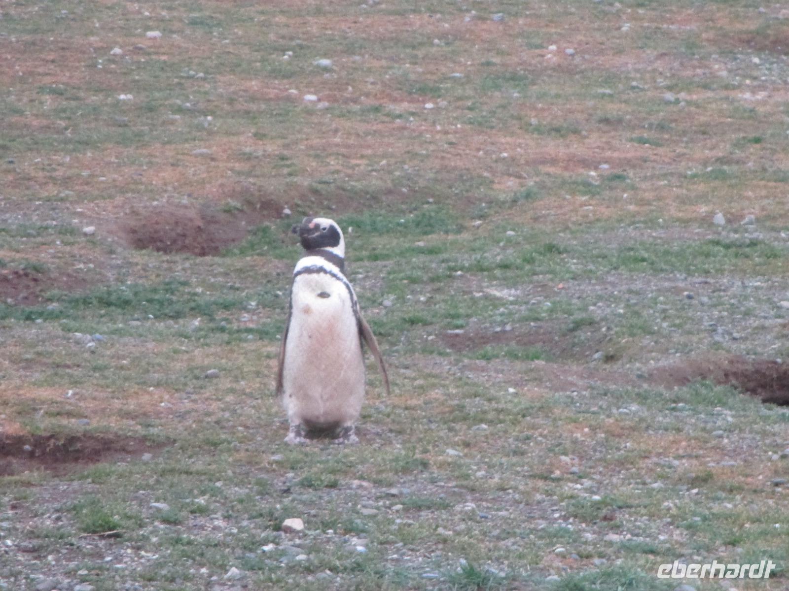 Auch heute heißt es wieder zeitig aufstehen, den die Stella Australis erreicht unser letztes Ziel, Isla Magdalena, bereits vor 07:00 Uhr. Heute ist es auch sehr windig und kühler. Warm eingepackt warten wir darauf, mit den Zodiacs an Land gebracht zu werden. Die ersten Pinguine sehen wir bereits durch unsere Feldstecher von Bord aus. Über einen festgelegten Weg bis hin zu einem Leuchtturm spazieren wir durch das Zuhause von mehr als 24.000 Magellan-Pinguinen. Putzig stellen sich einige der schönen Tiere zur Schau und lassen sich fotografieren. Manche verstecken sich in Ihren Nestern, andere kreuzen unseren Weg. Natürlich haben die Pinguine immer Vorfahrt. Einige machen auch solchen Lärm, das wir diesen unbedingt auf unseren Videos festhalten müssen. Zurück an Bord frühstücken wir und stellen dann die Koffer vor die Tür, damit die chilenische Einreisebehörde diese kontrollieren kann. Nach einer ziemlich langen Wartezeit können wir dann am Mittag von Bord gehen. Die kurze Strecke vom Schiff zum Terminal müssen wir im Bus zurück legen. Dann wird noch unser Handgepäck durchleuchtet und dahinter sind bereits unsere Koffer aufgestellt. Eric erwartet uns bereits im Terminal und wir freuen uns, ihn wiederzusehen. Wir beginnen unsere Stadtrundfahrt durch Punta Arenas, die uns zunächst zum Aussichtspunkt Cerro de la Cruz führt. Von hier oben haben wir einen Überblick über die Stadt, den Hauptplatz und den Hafen. Dort sehen wir auch die Stella Australis, die wir vor wenigen Minuten verlassen haben, die neben einem riesigen Kreuzer liegt. Da sieht man wirklich einmal, wie unterschiedlich die Dimensionen sind. Hier am Aussichtspunkt sind auch einige Wegweise aufgehangen, die die Kilometerangaben bis in die Heimat anzeigen. Danach geht es zurück in die Stadt zum Plaza de Armas. Um den Hauptplatz herum stehen zahlreiche beeindruckende Gebäude wie das Haus der Schafsbaronin Sarah Braun, die kroatische Kirche oder dem Rathaus. Auf dem Hauptplatz selber ist Herrn Magelann ein Denkmal gesetzt. Eine Sage besagt, wer die Füße des Herrn Magellans küßt, kehrt zurück nach Punta Arena - gesagt, getan. Nachdem wir noch schnell das Denkmal von Herrn Menderez fotografiert haben, gibt uns Eric eine halbe Stunde Zeit, Punta Arenas individuell zu entdecken. Unser letzter Programmpunkt ist der Besuch des hiesigen Friedhofs, der von zahlreichen Mausoleen gesäumt ist. Bei dem Grab einer kroatischen Adelsfamilie treffen wir auf einen Verbliebenen, der gerade das Grab seiner Vorfahren pflegt. Wie Eric so ist, geht er natürlich gleich auf ihn drauf zu und spricht ihn an. Der junge Mann, Anwalt von Beruf, erzählt uns einige Geschichten zu seiner Familie und lässt uns sogar kurz in das Mausoleum eintreten. Im Anschluss besichtigen wir noch das riesige Grab von Sarah Braun im orthodoxen Stil mit großem Garten. Nachdem wir das Grab des einsamen Indianers besichtigt haben, verlassen wir wieder den Friedhof. Einen letzten Fotostopp legen wir am Denkmal für die Schafszucht ein und danach bringt uns unser Fahrer José zum Flughafen. Am späten Nachmittag geht unser Flieger in die Luft, der uns zurück nach Santiago de Chile bringt. Wir übernachten erneut im Flughafen Hotel Holiday Inn Airport. Nach einem gemeinsamen Abendessen verabschieden wir uns von drei Reisegästen, die bereits nach Hause oder weiter nach Argentinien fliegen und gehen müde aber zufrieden ins Bett.