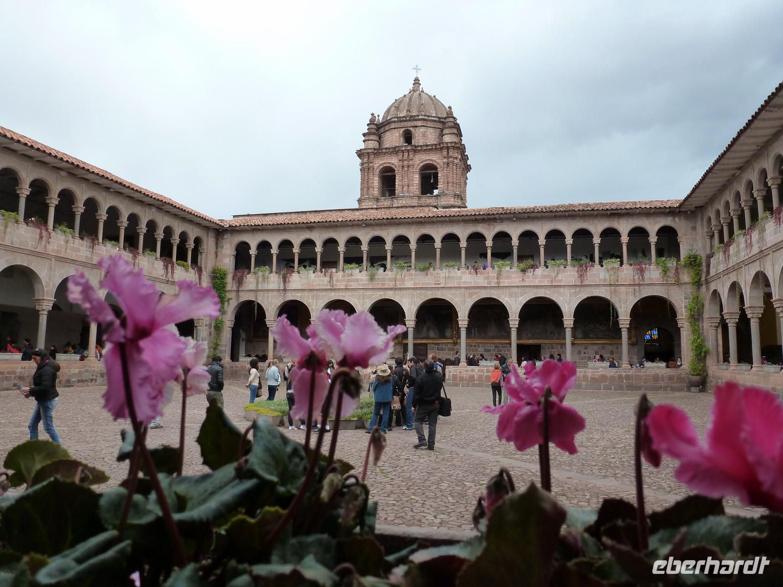 Heute verließen wir auch schon Lima und flogen um 8:20 Uhr nach Cusco - die Hauptstadt der Inka. Nach einer Stunde waren wir schon da - der Flug verlief einwandfrei und wir landeten pünktlich. Dort wurden wir von unserer Reiseleiterin Elisabeth, einer richtigen Inka-Frau begrüßt. Wir fuhren gleich erstmal ins Hotel - viele von uns staunten wie groß die Stadt doch ist - mitten im Hochland der Anden gelegen mit vielen Häusern bis hoch an die Berghänge. Und uns begegneten auch schon die ersten Inka-Frauen in ihren traditionellen Kleidungen: bunte Röcke, farbenfrohe Tragetücher, lange Haare und Hüte. Unser Bus lief uns vor der Innenstadt raus, den die Gassen sind für ihn zu eng. So spazierten wir zum Novotel - ein wunderschönes Hotel ganz in der Nähe des Plazas del Armes, des Hauptplatzes Cuscos. Wir probierten gleich im Hotel den Koka-Tee, den die Höhe von 3300 Meter machte sich durchaus bemerkbar und Koka hilft gegen die Höhenkrankheit. Und dann spazierten wir zum Hauptplatz und haben im Café Plaza auf einer ganz tollen Terrasse Kaffee, Sandwiches, Kuchen oder Suppe genossen mit einem einmaligen Blick auf das bunte Leben auf dem Hauptplatz. Und am Nachmittag sind wir mit Elisabeth durch die Straßen der Stadt spaziert, haben uns alte Inkagassen angeschaut, den Haupttempel des ehemaligen Inkareiches besichtigt und hatten dann das große Glück, einer Prozession der Inka auf dem Hauptplatz beizuwohnen. Mit Masken und Tanz haben sie das Fest des heiligen Gabriel zelebriert - es war sehr spannend. Schließlich haben wir uns die Kathedrale angeschaut und sind dann bei Regen noch weiter durch die Straßen spaziert, bevor wir zurück zum Hotel gelaufen sind um uns etwas auszuruhen. Am Abend erwartete uns im Tunupa Restaurant auf dem Hauptplatz typisch peruanische Musik mit traditionellem Tanz bei bestem Essen wie Lamm oder Apaka.