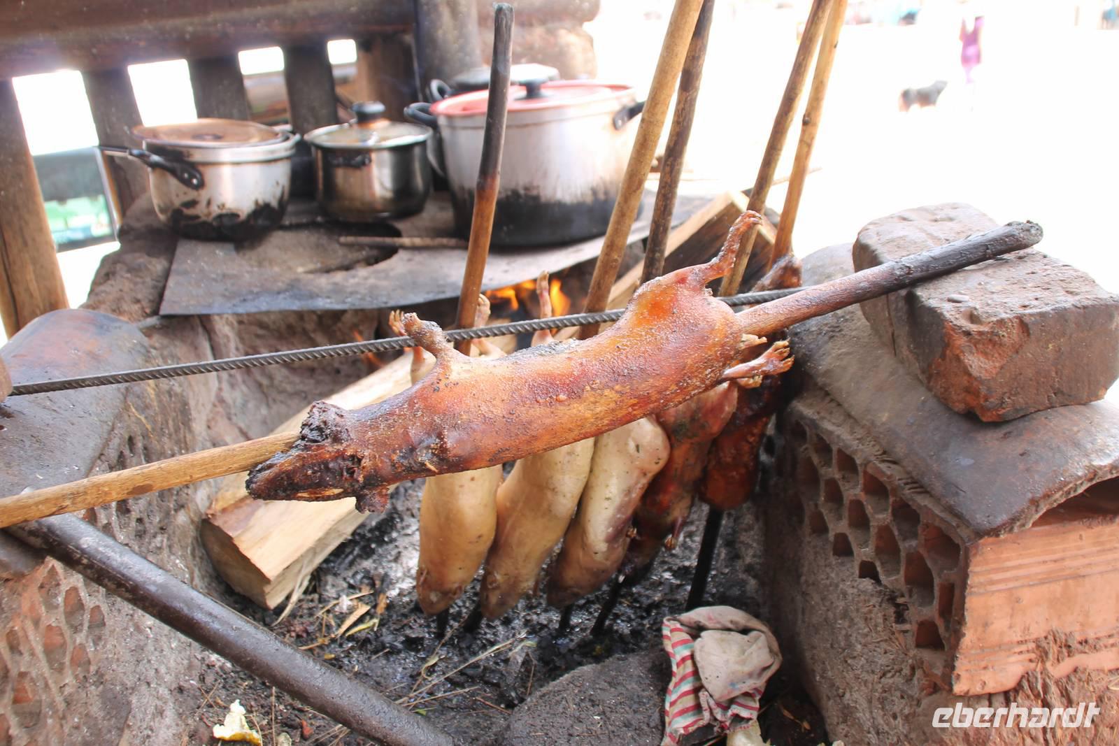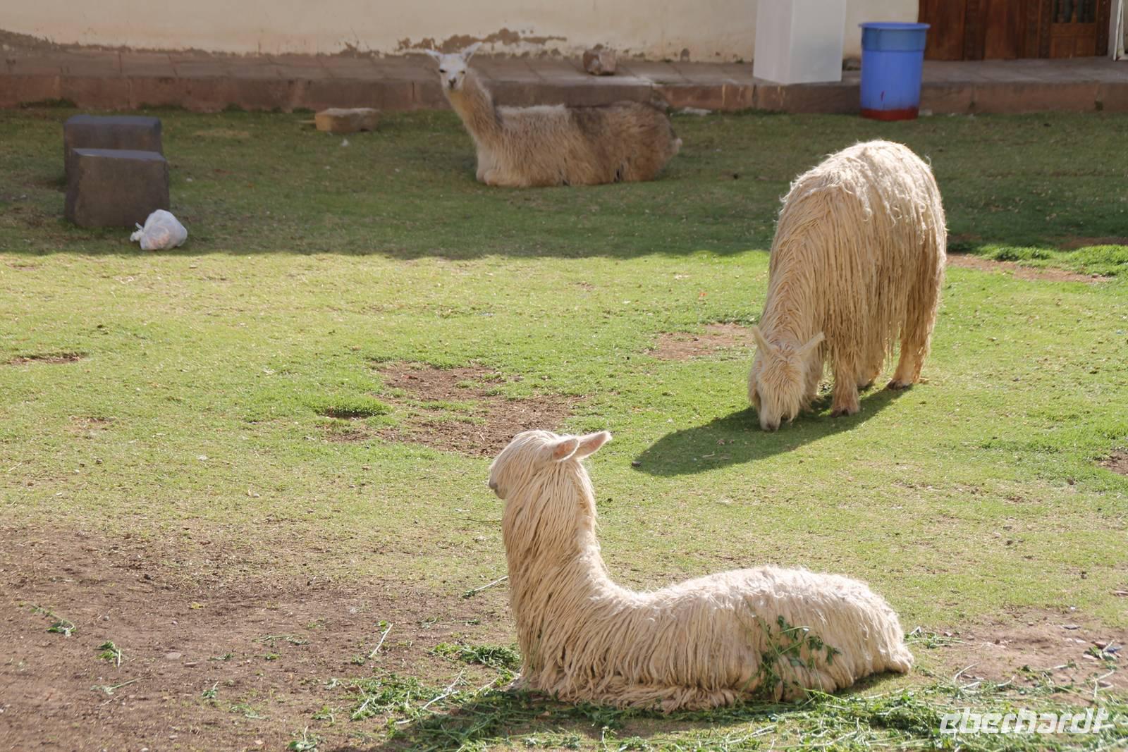 Nach unserer ersten Nacht auf über 3400m Höhe, starteten wir von Cusco mit dem Bus ins Urubamba-Tal. Nach ca. 2 Stunden Fahrt erreichten wir den Marktplatz von Pisac. Die Fülle an Waren ist unglaublich und die Verkäufer waren gegenüber den Interessenten deutlich in der Überzahl. Mit unserer Reiseleiterin Yuenna spazierten wir gemütlich durch die engen Gassen und kauften das eine oder andere Souvenir. Danach ging es weiter entlang des Urubamba-Flusses bis wir an einem Straßenstand vorbeikamen, um das erste Mal Meerschweinchen zu probieren. Frisch gegrillt und am Spieß probierten wir die kleinen süßen Tierchen. Es war schon etwas gewöhnungsbedürftig, da wir Sie zuvor noch lebend auf dem Inkamarkt in Käfigen gesehen hatten. Nach dieser kleinen „Stärkung" ging es weiter bis zum Ende des HeiligenTales in Ollaytaytambo. Der gewaltige, über Terrassen zu erreichende Sonnentempel wurde auf Grund von Kriegshandlungen nie ganz fertig gestellt. Als Erbauer dieser Tempel-/ Festungsanlage gilt der Inka Patcha Cuti. Weiter ging es zu unserer Hotelanlage „Agusto's Urubamba" Der Weg dorthin war etwas abenteuerlich, da es noch keine asphaltierte Zufahrtsstraße gibt. Die Hotelanlage ist wunderschön gestaltet und rings herum erstrecken sich die 6000er Andenberge.
