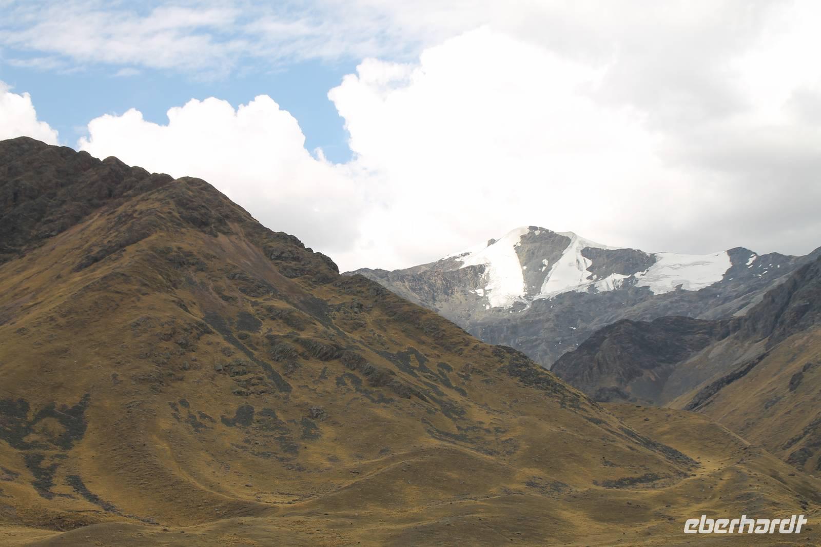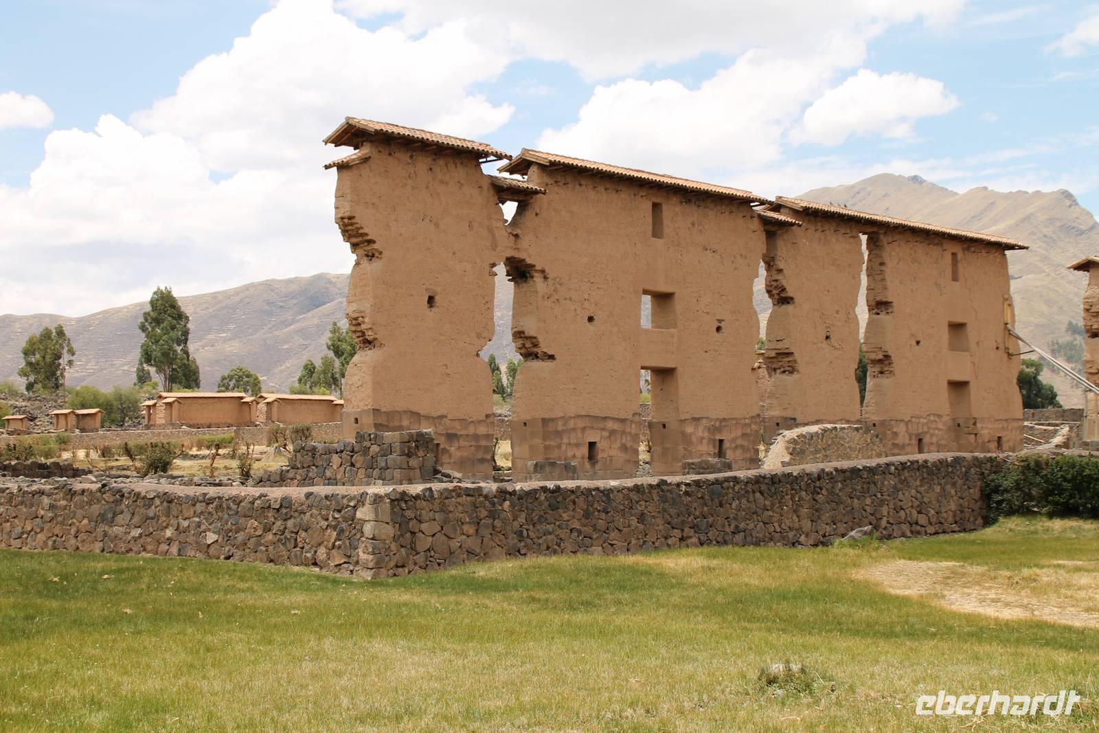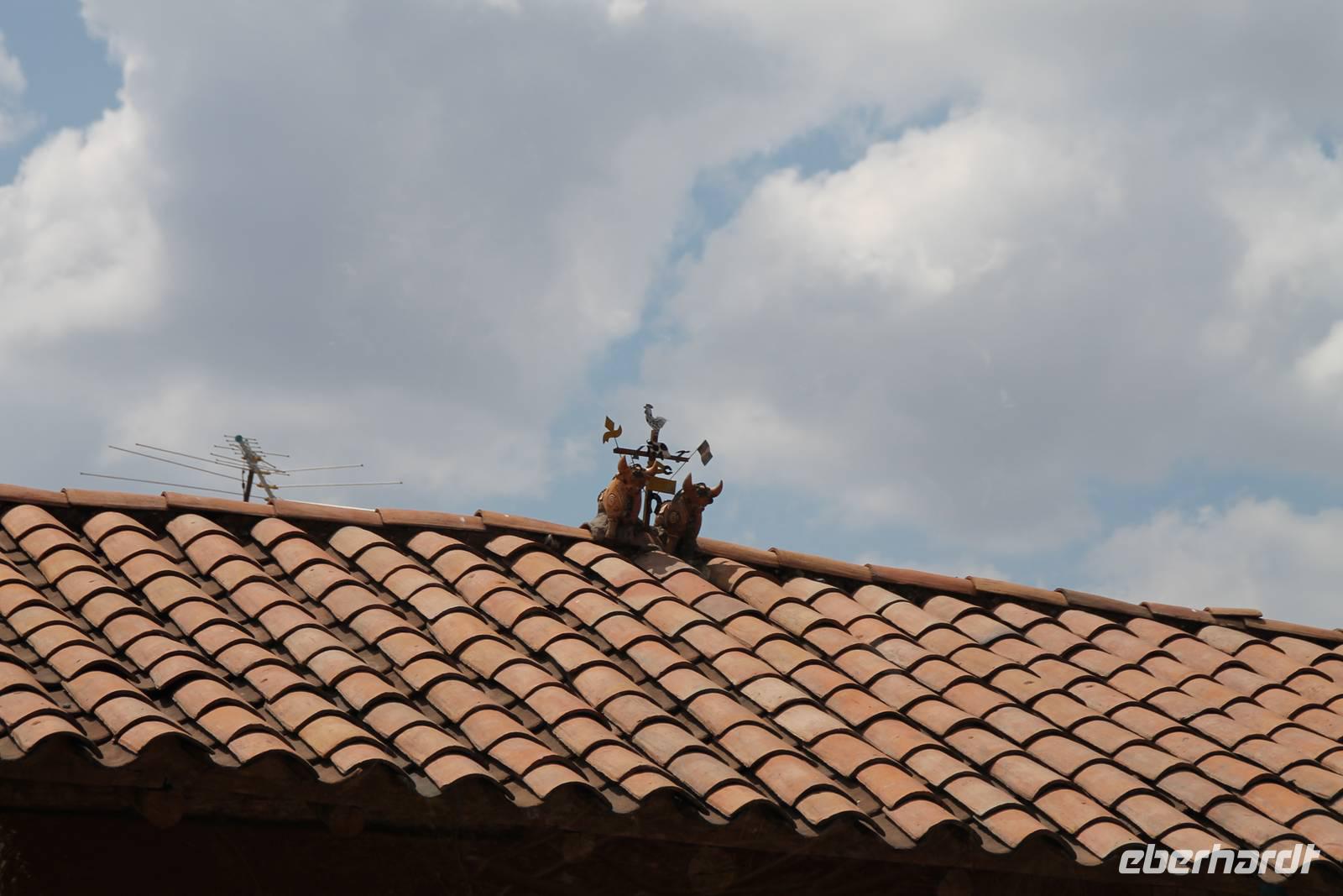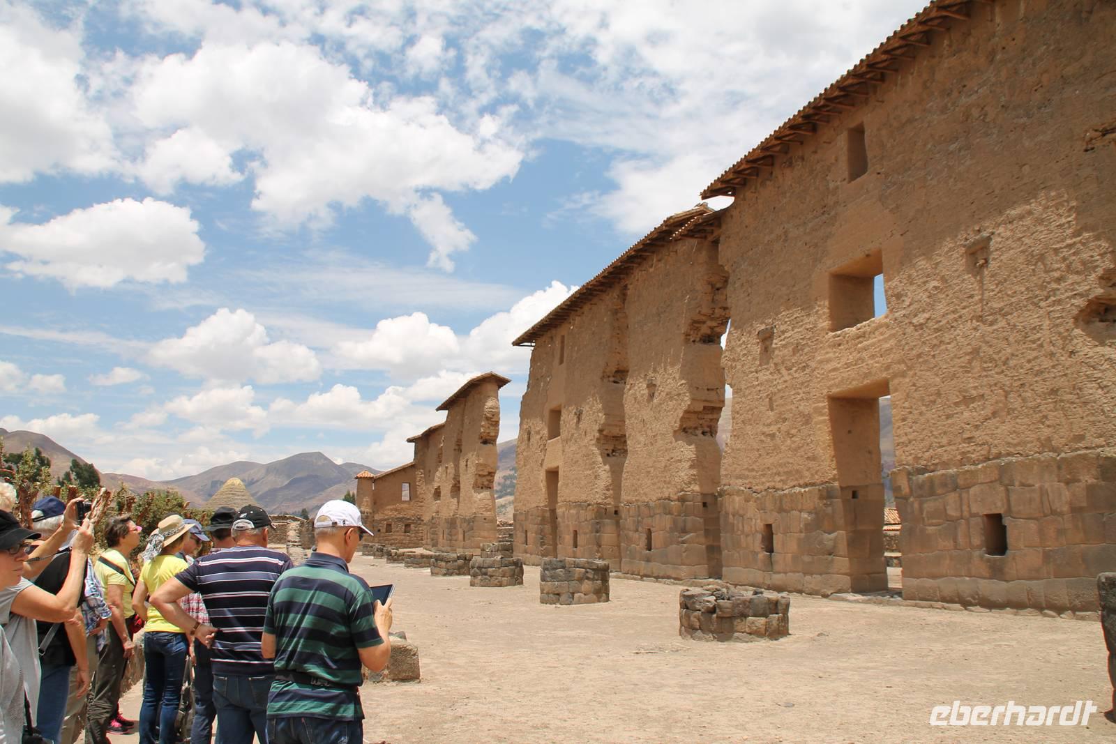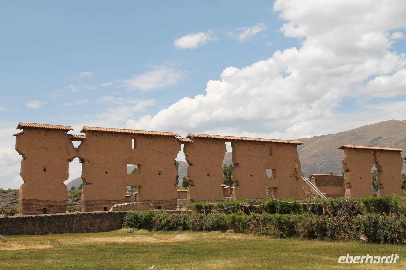 Nach einer wieder recht kurzen Nacht, fuhren wir nach dem Frühstück von Cuzco weiter in Richtung Puno. In Andahuaylillas, einem kleinen Ort entlang unserer Fahrtroute, besuchten wir eine Kirche, welche aufgrund ihrer Fresken und farbigen Deckenbemalung, auch die „Sixtinische Kapelle" bzw. „Sixtiner-Kirche" Perus genannt wird. Von dort aus fuhren wir etwa 2 Stunden zum Viracocha-Tempel in Raqui. Unsere Reiseleiterin Yuenna erklärte uns alles über die historischen Gebäude und die Zeit der Tiahuanaco-Kultur. Danach fuhren wir zum Mittagessen zum „Feliphon" und von dort hinauf zum La Raya-Pass auf 4335 m Höhe. Hier machten wir eine kleine Fotopause und sahen uns an den Verkaufsständen nach einem Souvenir um. Man merkte die Höhe deutlich und bewegte sich dementsprechend langsamer.