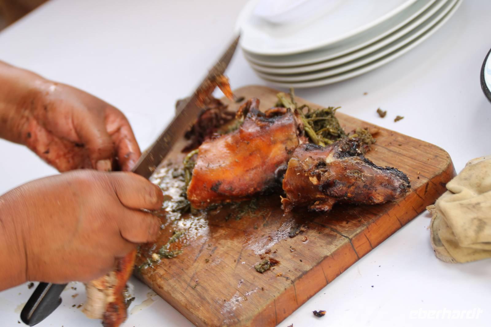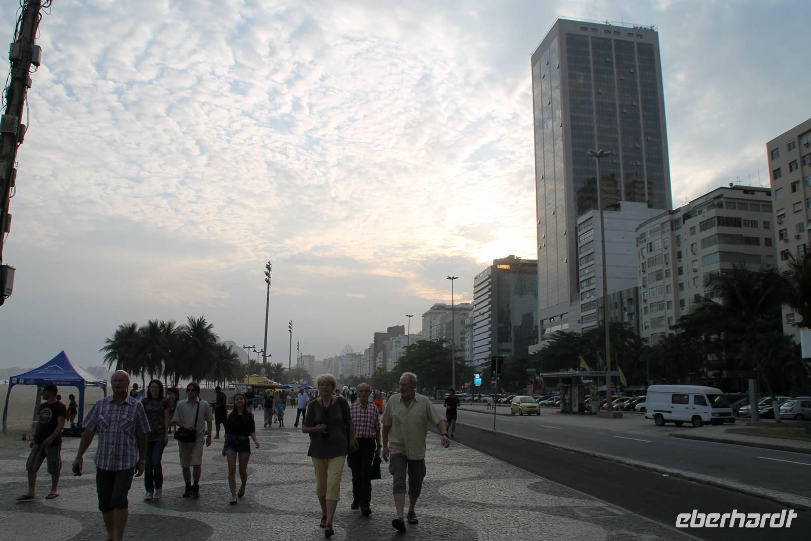 „Golden Tulip" an der Copacabana. Nach dem Zimmerbezug ging es in das Grill-Restaurant "Churascarias". Das Abendessen war ein Traum! Zuerst konnten wir uns die Vorspeise aus einem reichhaltigen Buffet zusammenstellen, anschließend kamen ohne Unterbrechung Kellner mit Fleischspießen von Tisch zu Tisch und wer wollte, der konnte sich vom Spieß etwas abschneiden lassen. Aber selbst der größte Hunger und Appetit sind irgendwann gestillt. Amüsiert schauten wir den Kellnern bei ihrer nicht ganz ungefährlichen Arbeit zu und ließen uns dennoch hin und wieder zu einem kleinen Häppchen hinreißen.