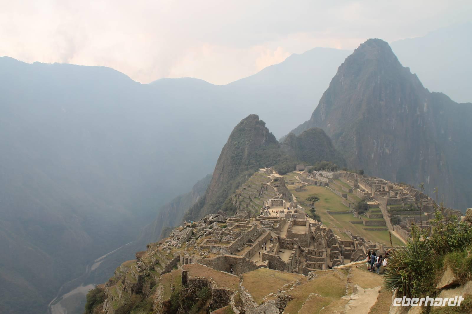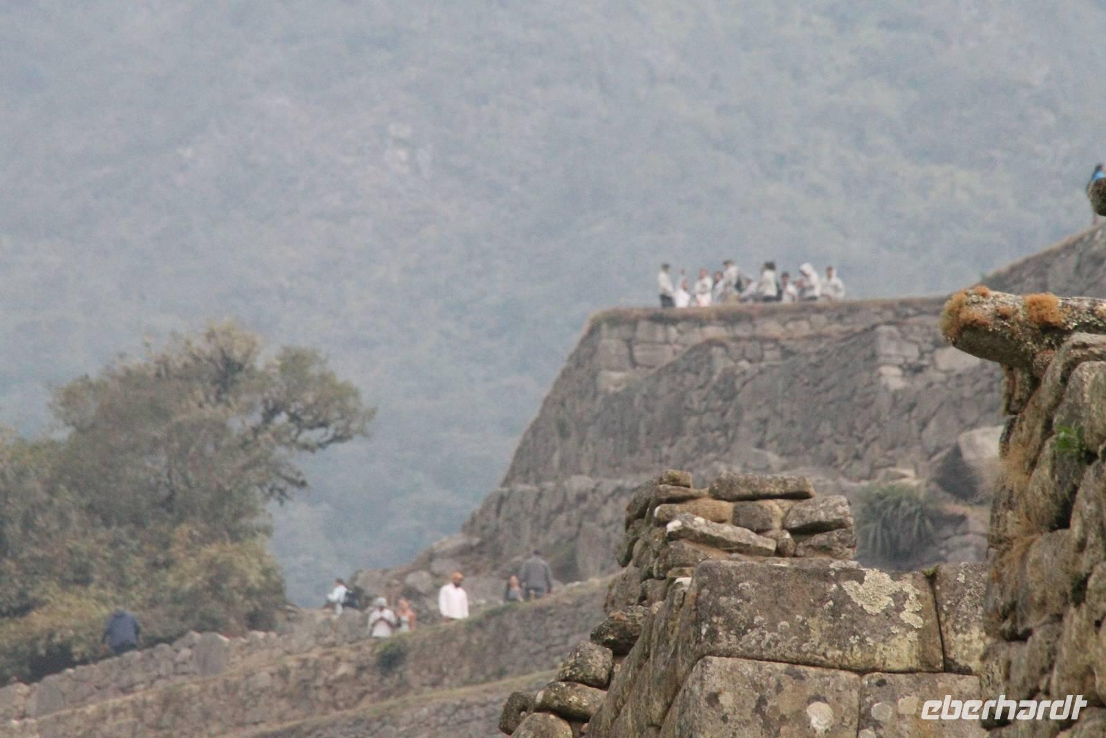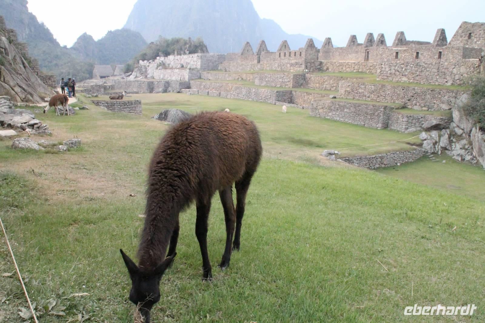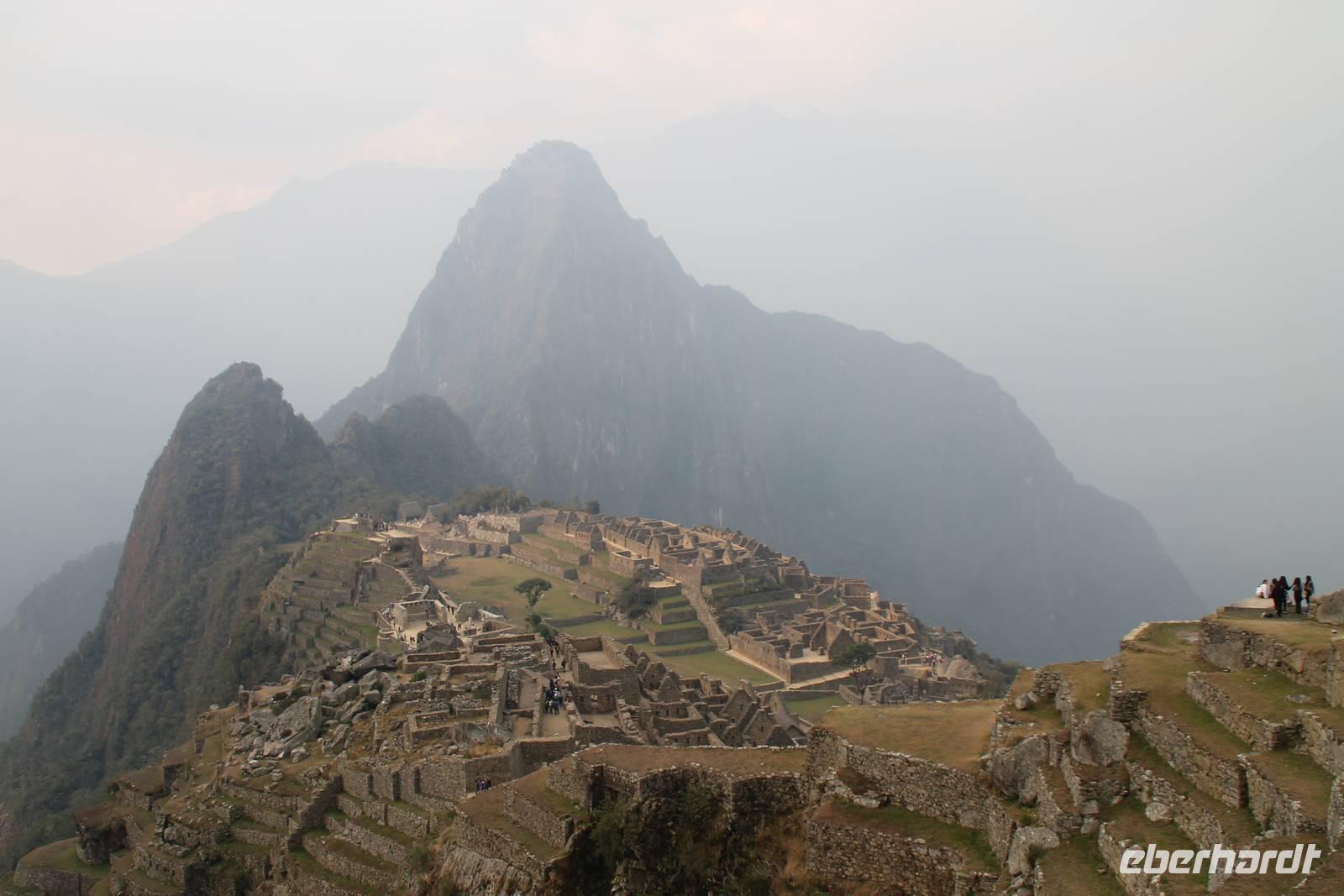 Nach einer kleinen Toilettenpause und dem Check-in, spazierten wir etwa 5min. zu den Pendelbussen und fuhren hoch zum „alten Berg" - „Machu Pichu". Die in den Bergen gelegene Inkastadt war eines der eindrucksvollsten Erlebnisse unserer Reise. Oben angekommen gingen wir erst einmal ins Restaurant und genossen unser leckeres Mittagessen, welches im Ticketpreis für Machu Pichu mit inkludiert war. Danach spazierten wir für ca. 3 Stunden gemütlich durch die 1911 entdeckte Inkaanlage. Yuenna beeindruckte uns wieder einmal mit ihrem unglaublichen Wissen über die Inkas und die späteren Forschungsarbeiten.