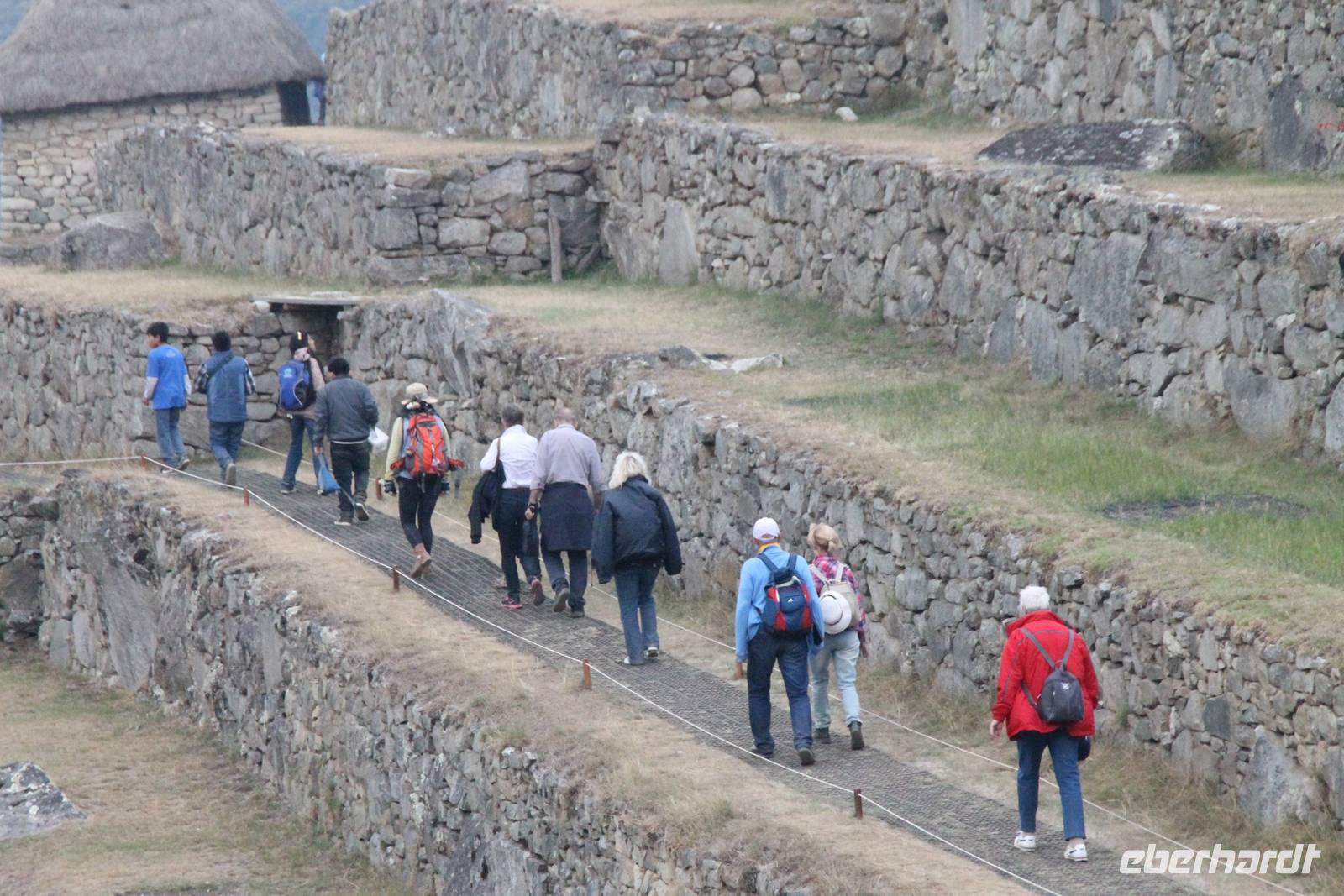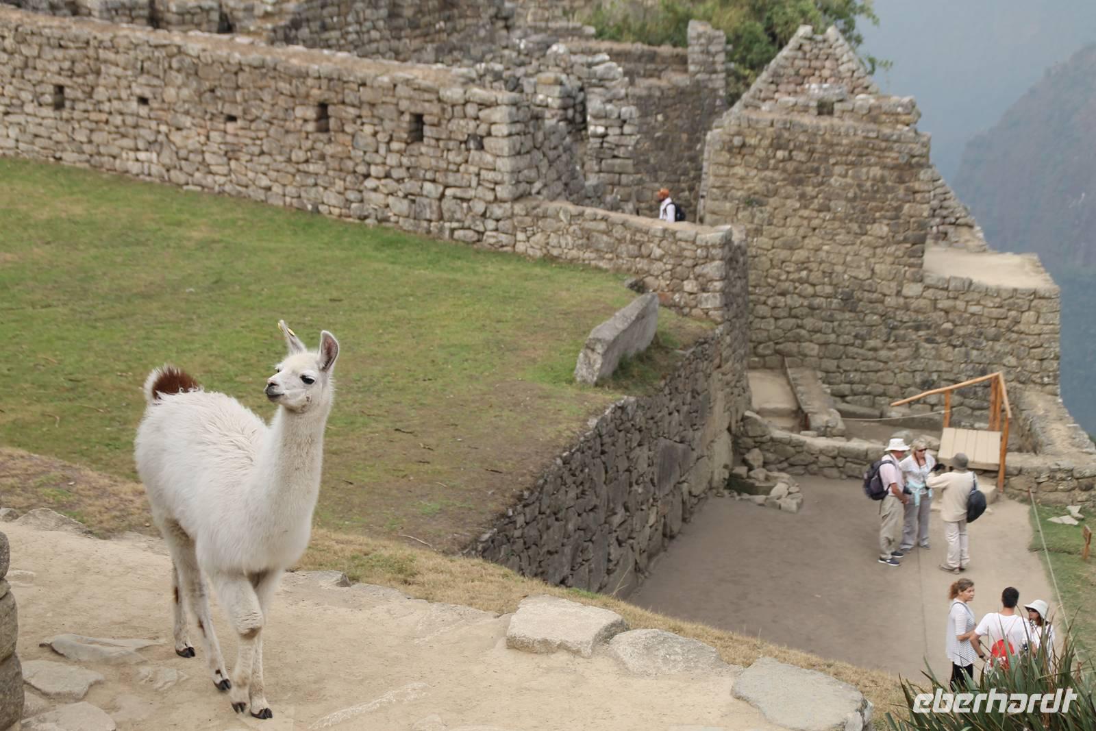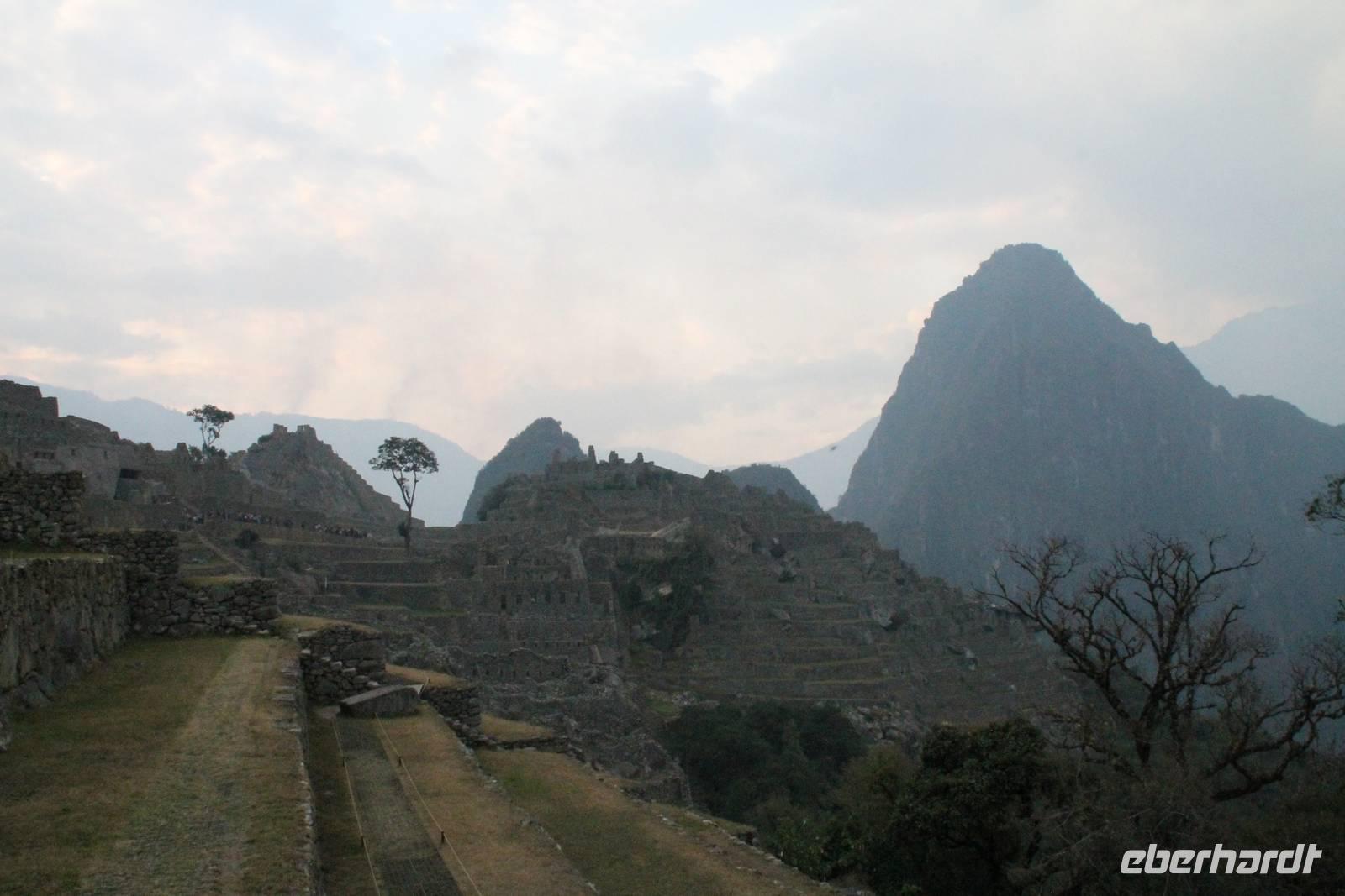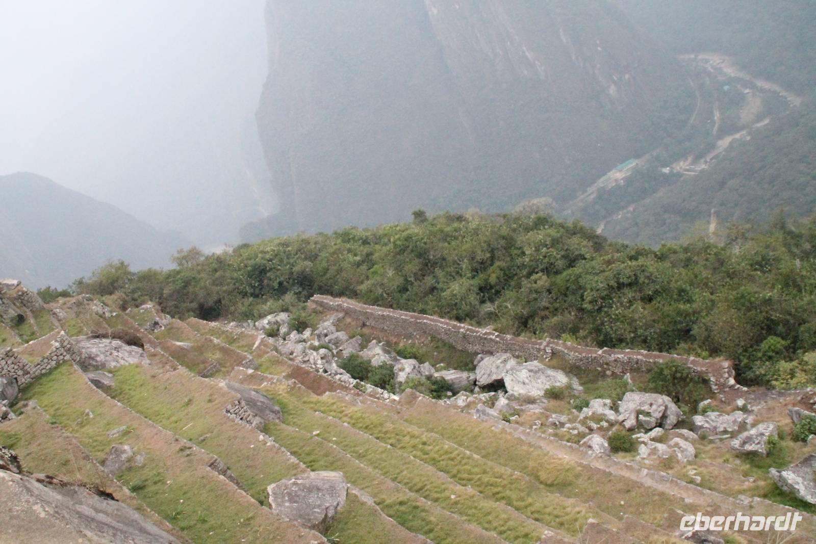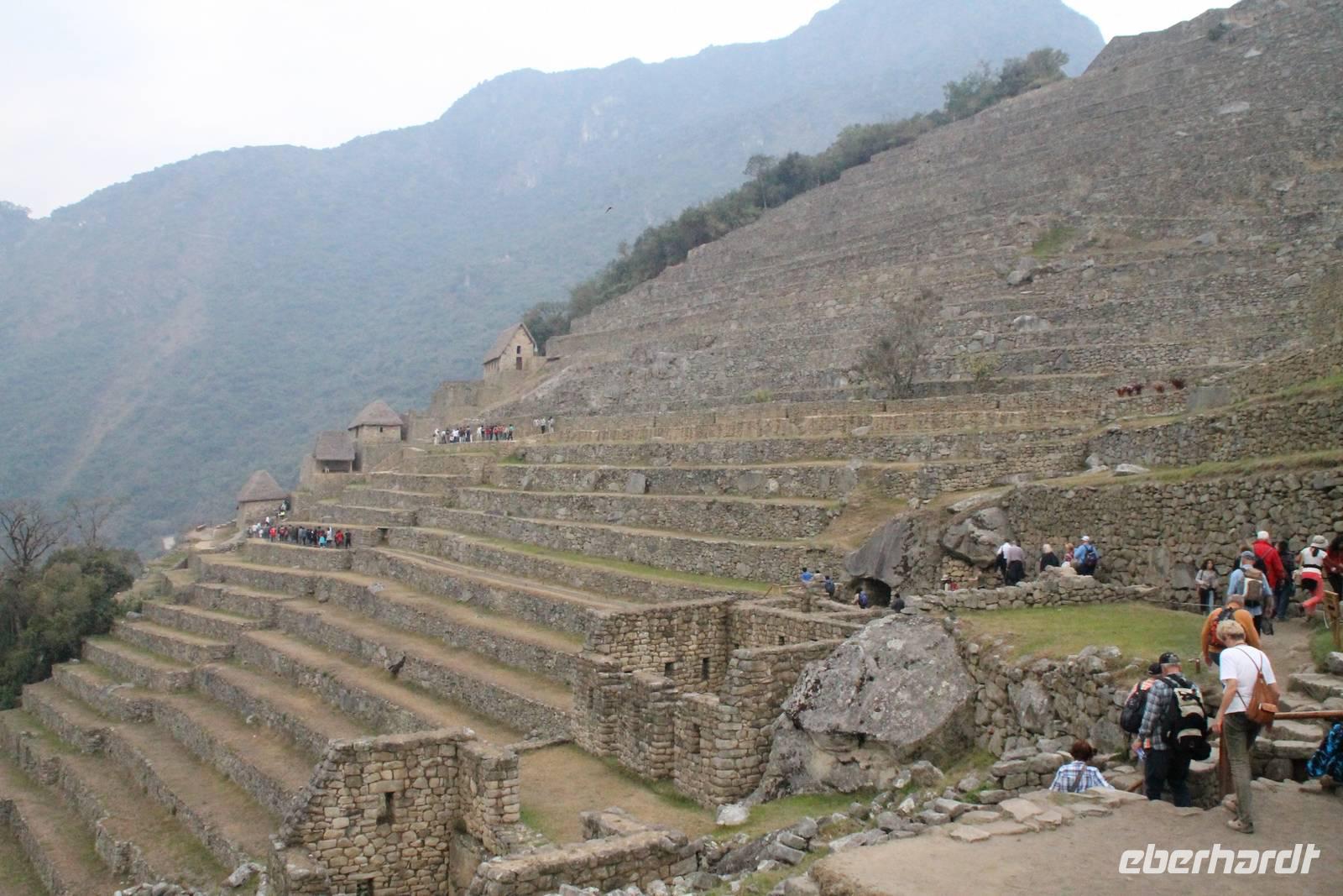 Nach einer kleinen Toilettenpause und dem Check-in, spazierten wir etwa 5min. zu den Pendelbussen und fuhren hoch zum „alten Berg" - „Machu Pichu". Die in den Bergen gelegene Inkastadt war eines der eindrucksvollsten Erlebnisse unserer Reise. Oben angekommen gingen wir erst einmal ins Restaurant und genossen unser leckeres Mittagessen, welches im Ticketpreis für Machu Pichu mit inkludiert war. Danach spazierten wir für ca. 3 Stunden gemütlich durch die 1911 entdeckte Inkaanlage. Yuenna beeindruckte uns wieder einmal mit ihrem unglaublichen Wissen über die Inkas und die späteren Forschungsarbeiten.