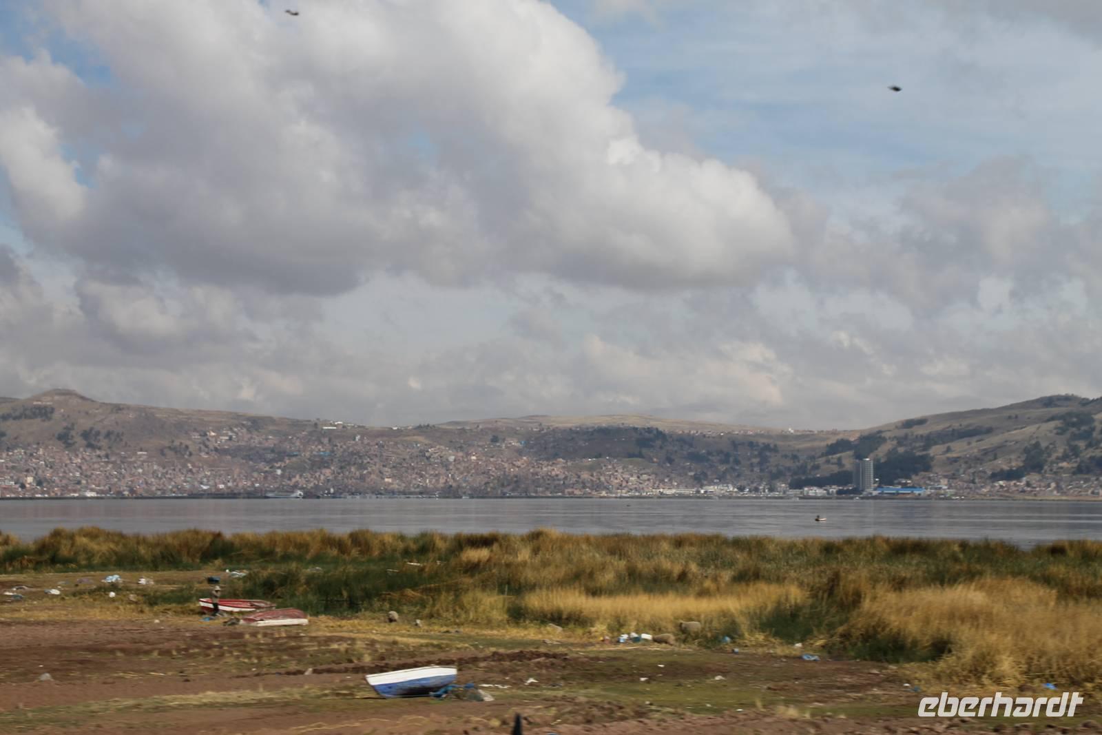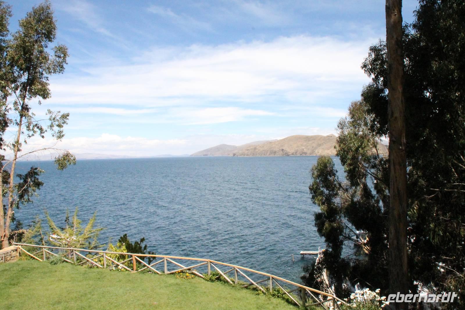 Direkt am Titicacasee lag unser schönes Hotel, mit schönem Blick auf die Bucht von Puno.