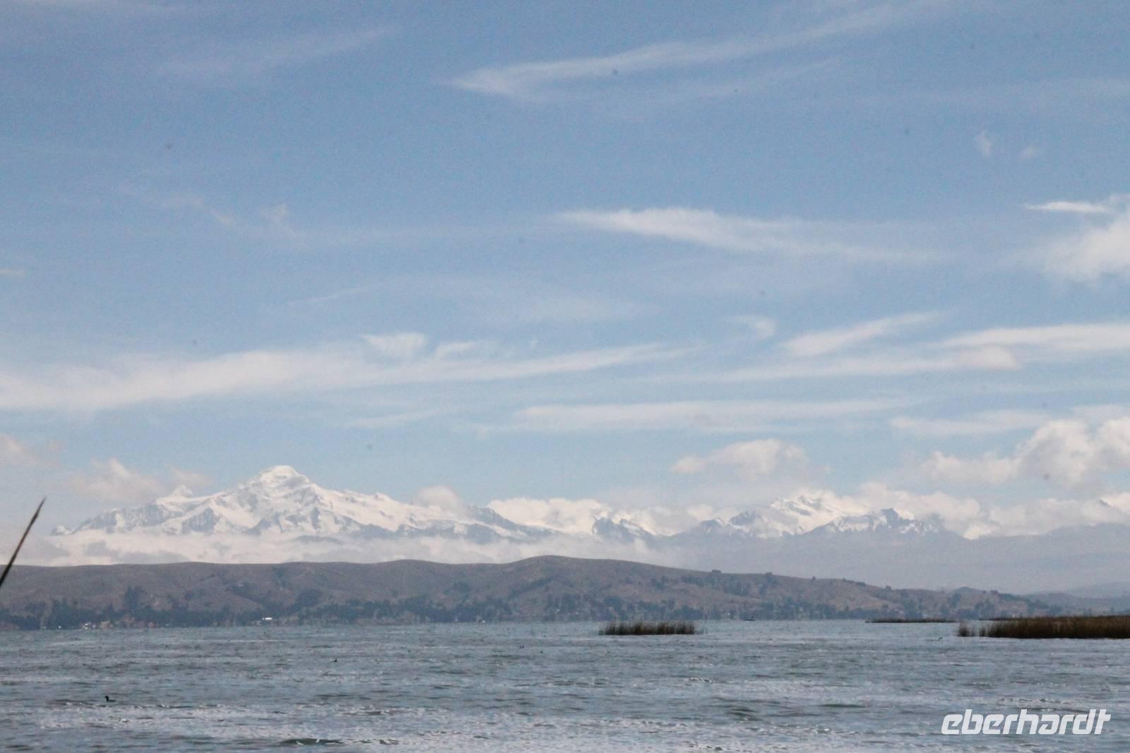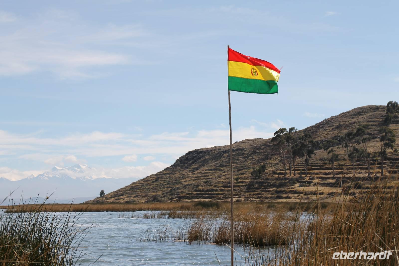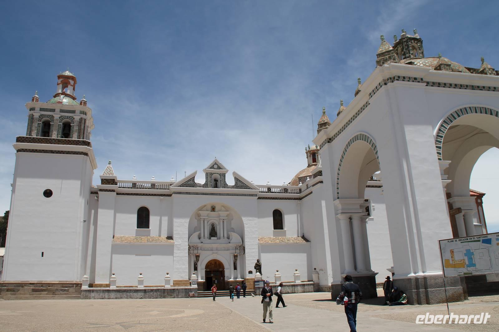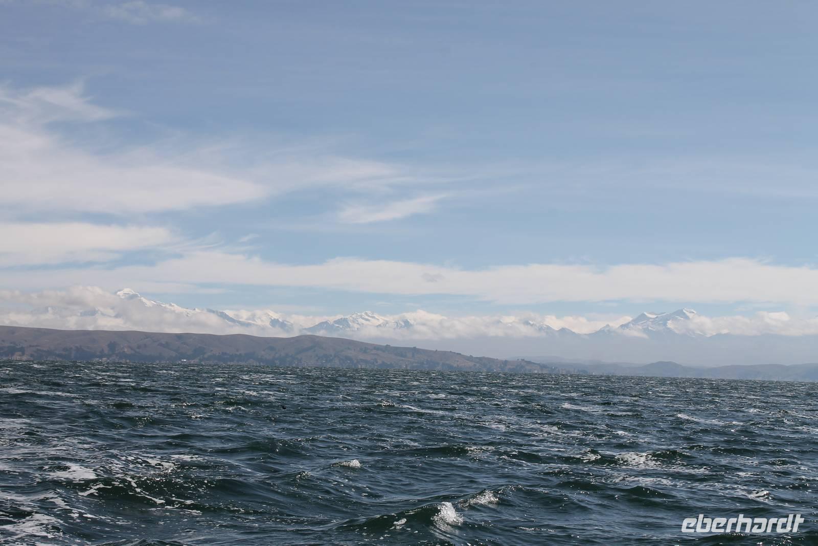 Unser erstes Ziel in Bolivien war die Stadt Copacabana, in der wir die „Basilica de La Virgen de la Candelaria" besichtigten. Im Inneren befindet sich eine aus dunklem Holz geschnitzte Madonna, welche Francisco Yupanqui, der Enkel des letzten Inkas, geschaffen hat. Der Figur werden unzählige Wunder zugeschrieben. Nach der Besichtigung fuhren wir zum Hafen und von dort mit Kapitän Freddy und Bootsmann Eddy in einem „Hydrofoil"- Boot zur Sonneninsel. Auf der Insel stiegen wir zur Quelle der Jugend empor, tranken von dem Jugend versprechenden Wasser (wer wollte) und fanden uns anschließend im Restaurant „Uma Kollu" ein. Von dort hatten wir einen tollen Blick auf den Titicacasee und die im See liegenden Inseln. Mit dem Boot ging es anschließend zur Mondinsel, um die Überreste vergangener Tempelanlagen anzusehen, leider war davon nicht mehr viel übrig.