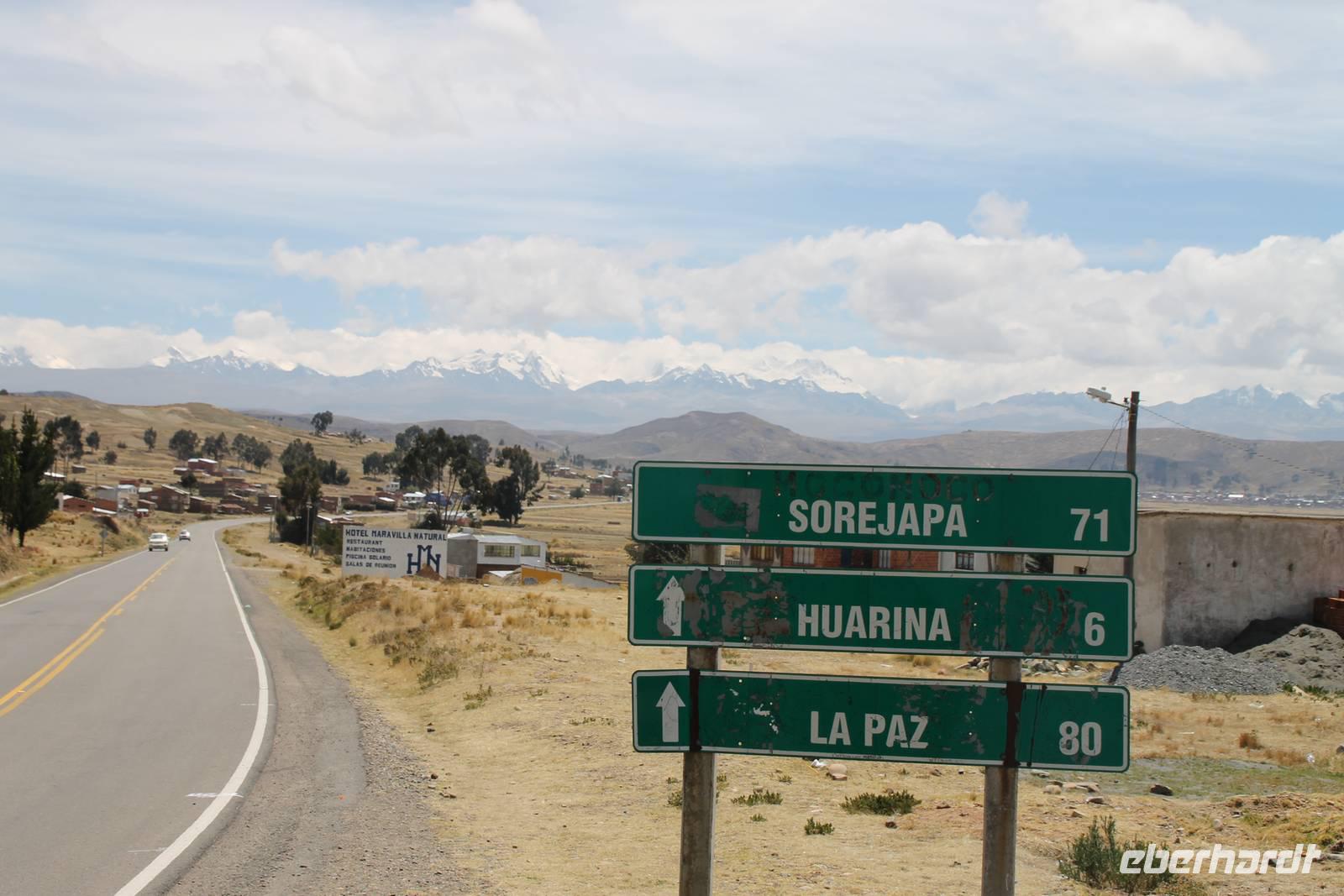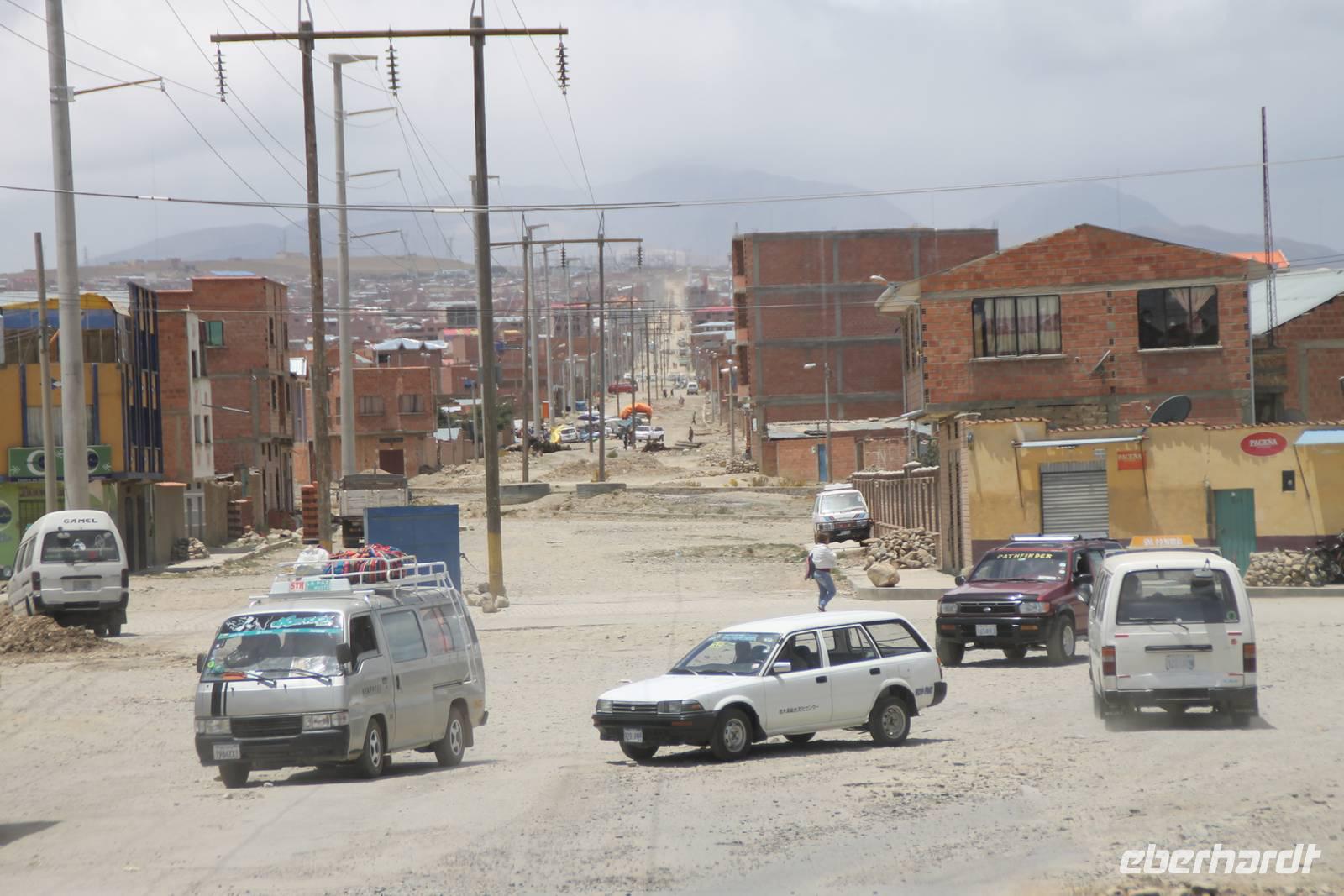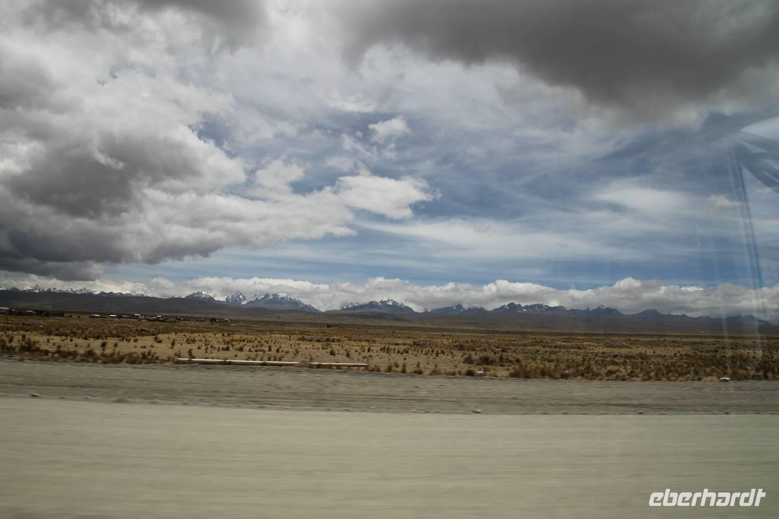 Nach dem Frühstück fuhren wir gegen 08:00Uhr weiter zur Grenze von Bolivien. Für die zweistündige Fahrt begleitete uns Reiseleiter Bonitio. Es waren sehr amüsante zwei Stunden, da er immer von „Papa", „Mama" und „Chaca chaca" sprach! :-)