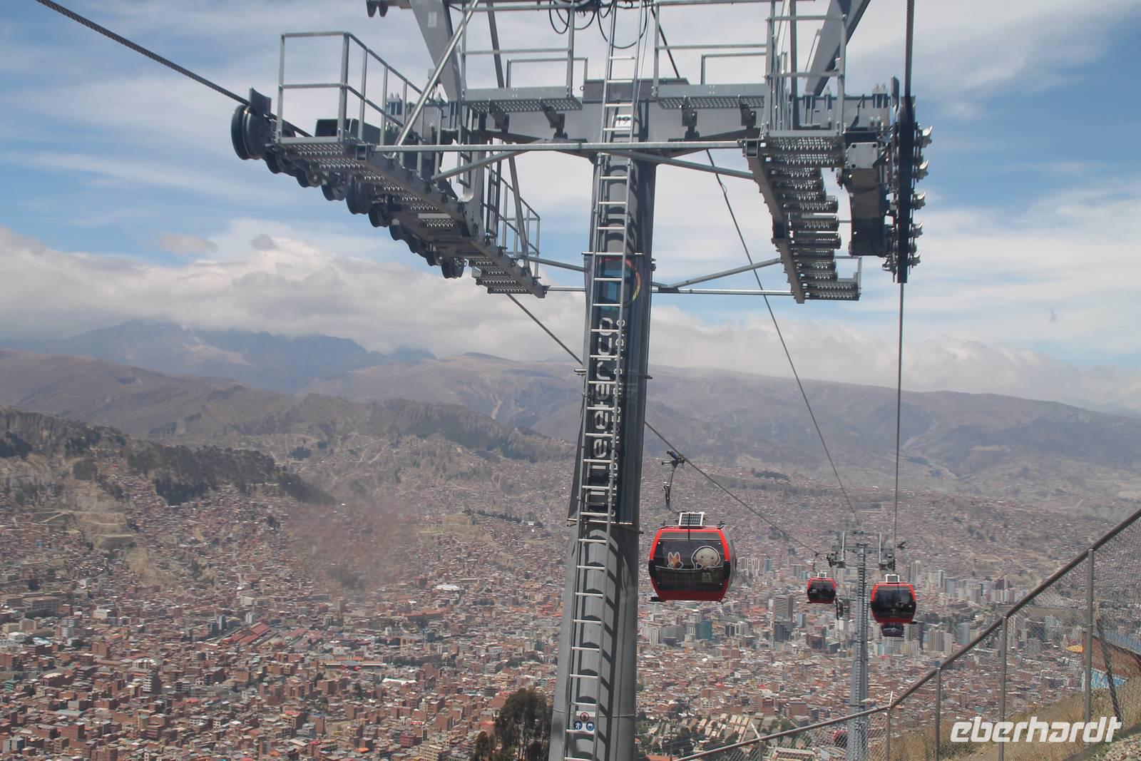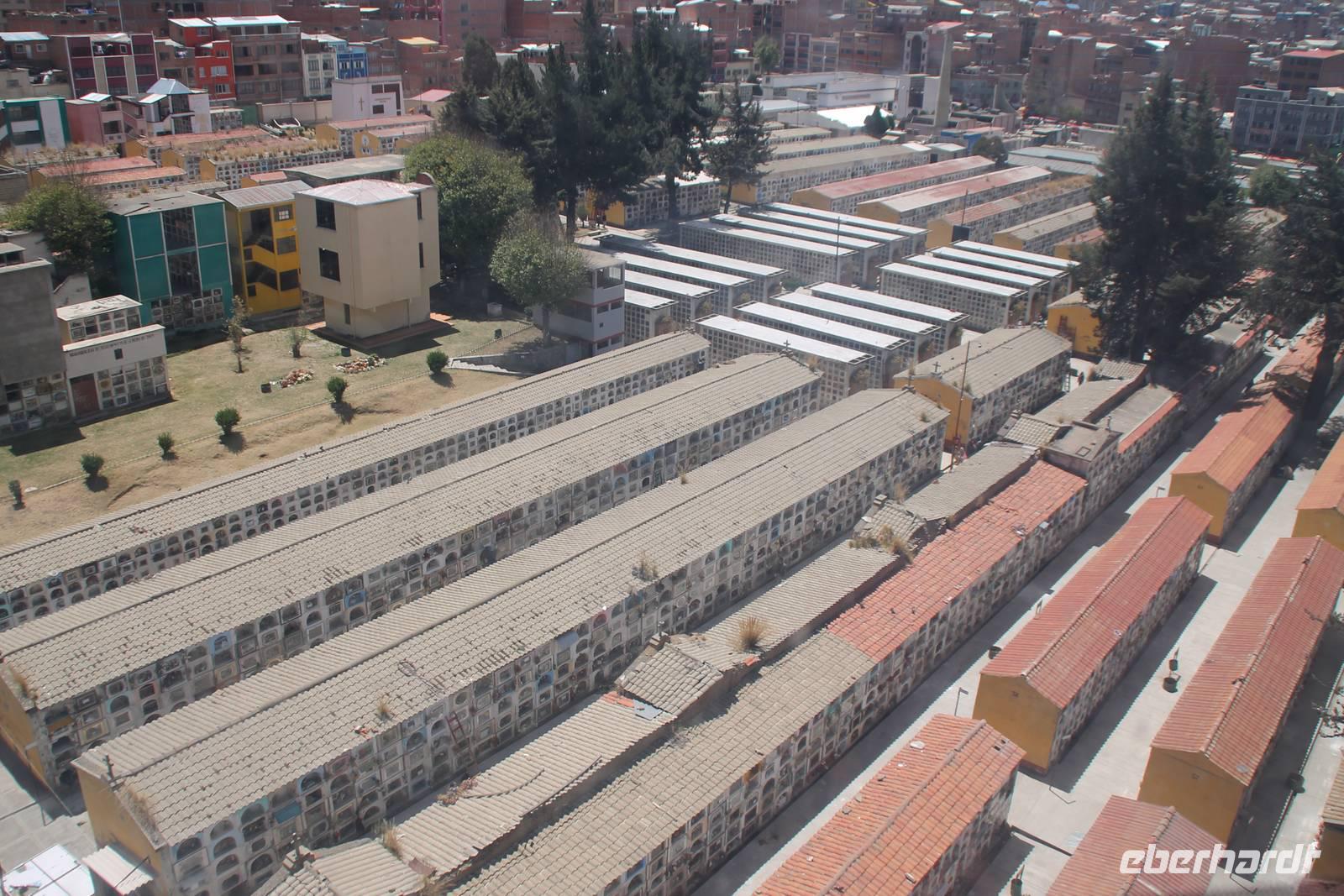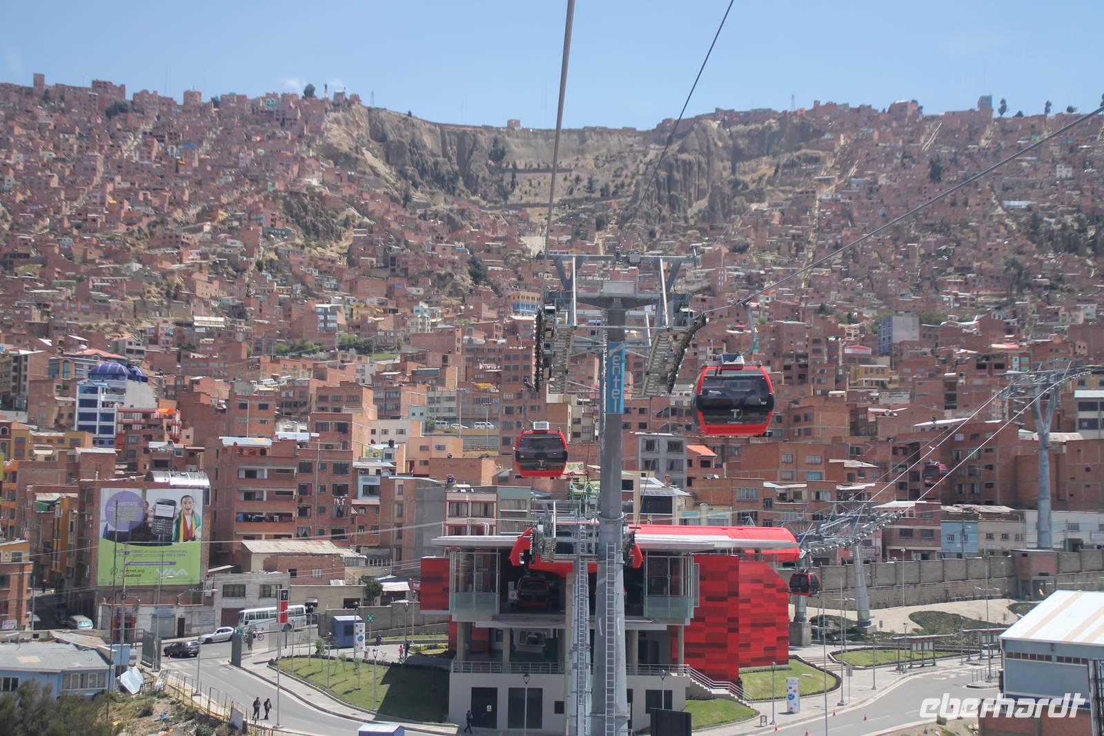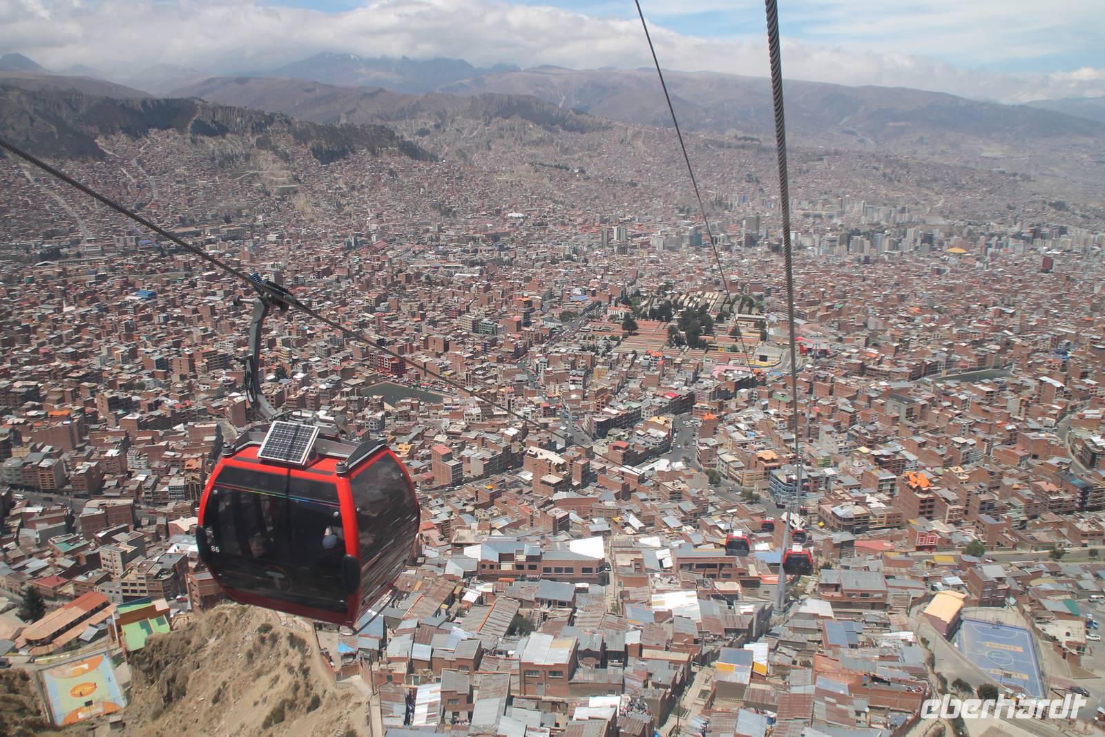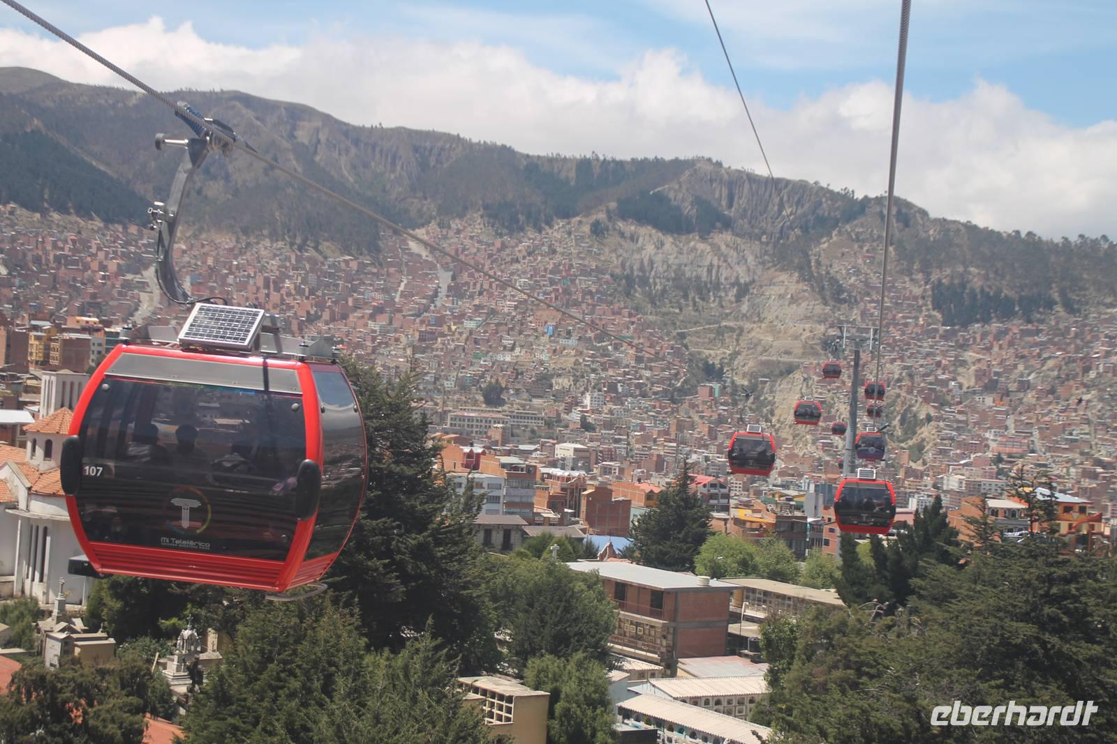 An meinem Geburtstag fuhren wir nach dem Frühstück mit dem „Hydrofoil"- Boot über den Titicacasee zu den Inseln der Urus Iruitos. Abwechselnd leben hier sechs Familien, jeweils eine Woche auf der Schilfinsel. Dort erfurhren wir von Roger, dass der weiße Wurzelbereich des Schilfes essbar ist und dass es im Titicacasee endemische Fische sowie an den Ufern Vögel gibt, die nur hier vorkommen. Wer wollte, konnte auch ein Stück mit einem Schilfboot mitfahren. Nach einem tollen Gruppenfoto ging es wieder zurück zum Hotel. Dort angekommen gab es noch eine kleine Geburtstags-Überraschungs-Torte, was mich natürlich sehr gefreut hat. Nach unserer Kuchenpause ging es gleich weiter mit unserer Rundreise. Von Huatajata aus fuhren wir nach La Paz und waren erstaunt, wie die angrenzende Satellitenstadt El Alto in rasendem Tempo wächst, so schnell, dass Straßenbau und Versorgungsanschlüsse nicht mithalten können. Direkt an El Alto grenzt bereits die bolivianische Hauptstadt La Paz, welche inmitten eines weiten Talkessels liegt. Wir fuhren zur Überraschung mit einer neuen Gondelbahn (von Doppelmayer), die uns vom oberen Rand der Stadt in den gigantischen Kessel hinein brachte. Wir sahen ein geschlossenes, fast grünloses Stadtbild, welches sich bis zu den Spitzen der umliegenden Hügel hoch zog. Die Bergketten bilden für die Stadt die natürliche Wachstumsgrenze. In La Paz wohnen die armen weit oben und die reichen ganz unten im Tal. An der Endstation angekommen, fuhr die Gruppe weiter zum Mondtal, einer Landschaft, die durch Erosion, Wind und Wasser entstanden ist und bizarre Formen gebildet hat. Ich ging in der Zeit mit zwei Reisegästen in eine Krankenstation, wegen gesundheitlichen Problemen. Die Gruppe unternahm anschließend noch eine kleine Stadtbesichtigung und am späten Nachmittag trafen wir uns wieder im Ritz Hotel von La Paz, wo wir eine Nacht verbrachten. Wir waren begeistert von den überaus großen Zimmern!