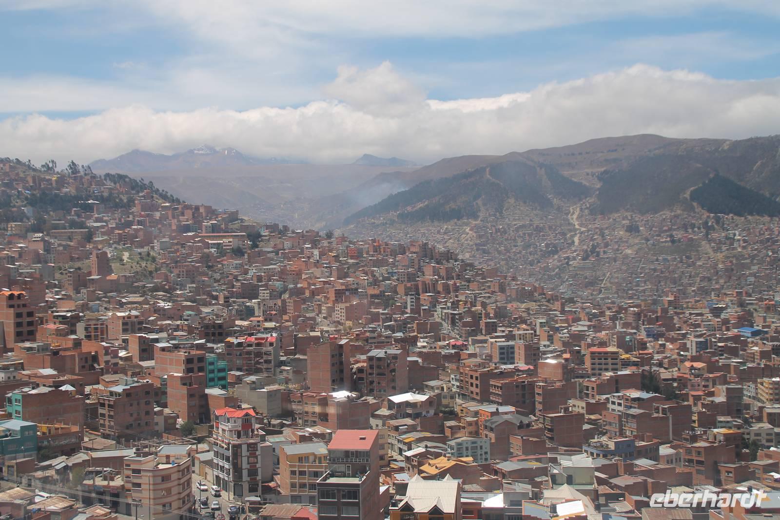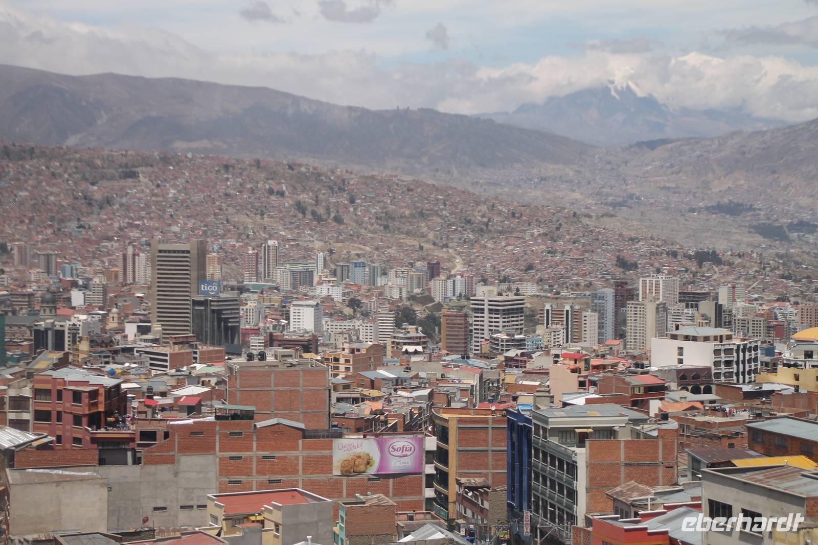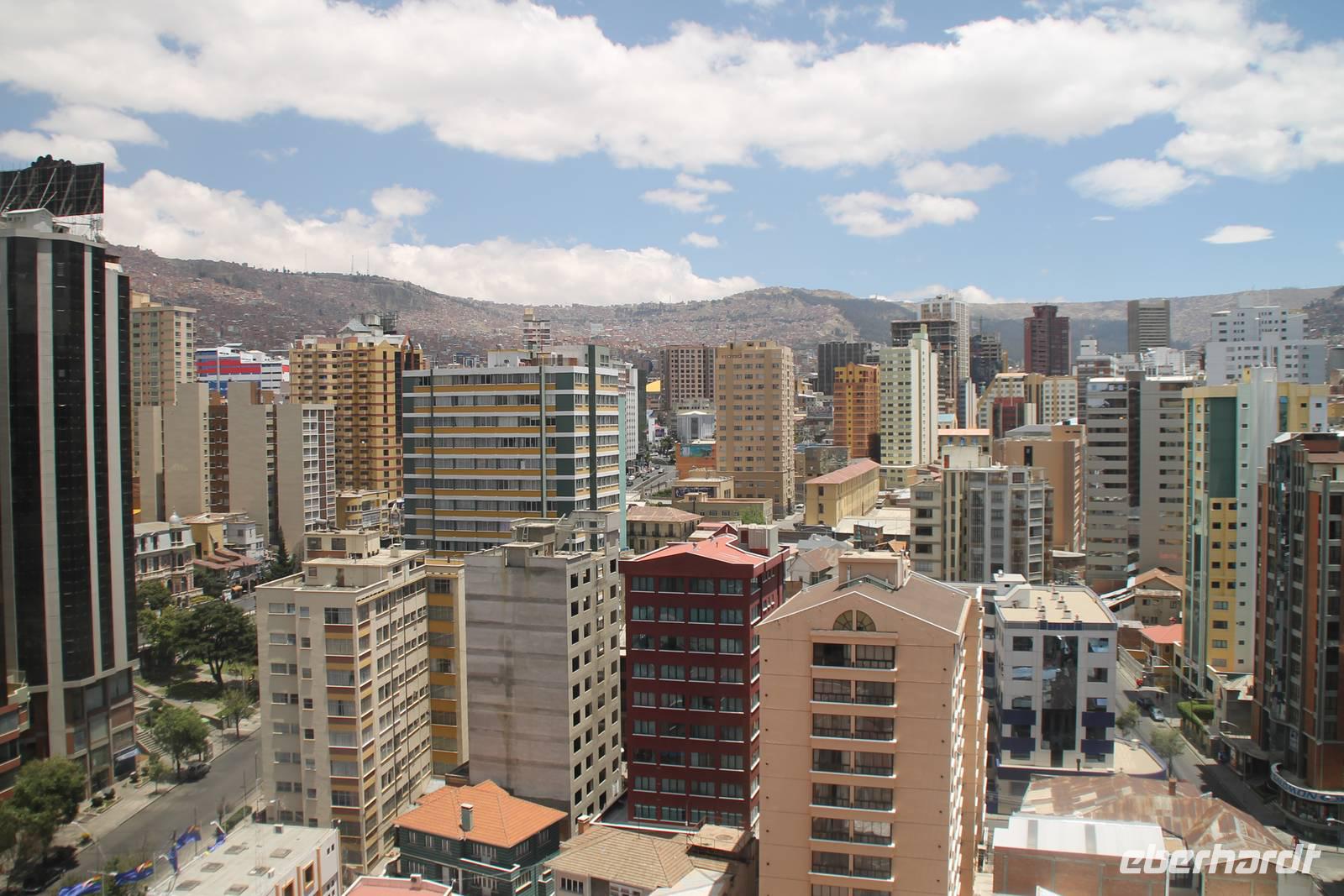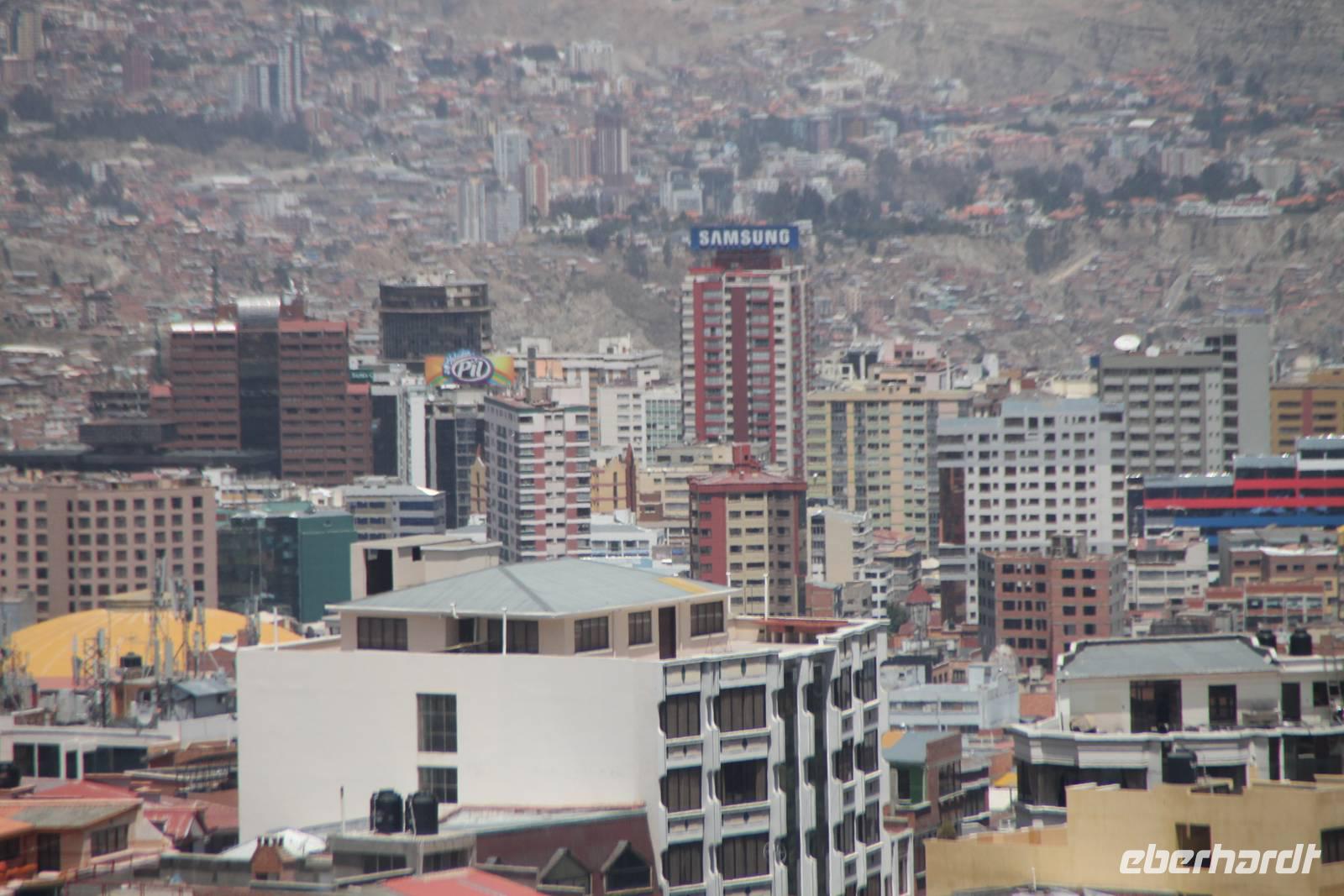 Heute konnten wir endlich etwas ausschlafen und den Vormittag nach unseren Belieben gestalteten. Die meisten spazierten mir zum Radisson Hotel, von wo aus wir eine tolle Aussicht über die Stadt hatten. Gegen 13:00Uhr fuhren wir zum Flughafen von La Paz und unterwegs verabschiedeten wir unseren örtlichen Reiseleiter Roger. Nach der Gepäckabgabe, den aufwändigen Ausreise-Formalitäten und einer Stunde Verspätung - mit etwas Entschädigungs-Schnaps, flogen wir schließlich nach Santiago de Chile. Im chilenischen Iquique ist es üblich, für eine kurze Zwischenlandung zu stoppen. Dort mussten wir das Flugzeug verlassen, offiziell einreisen, beim Zoll unsere Einreiseformulare abgeben, unsere Koffer durchleuchten lassen, die Koffer wieder abgeben und schließlich nochmal durch die Sicherheitskontrolle. Danach waren wir alle genervt und der Flug wurde fortgesetzt. In Santiago de Chile angekommen, wartete bereits unser nächster Reiseleiter Camilo. Er wuchs in der DDR auf und sprach somit ein perfektes Deutsch. Gemeinsam fuhren wir dann zu unserem Hotel, welches wir gegen Mitternacht erreichten.