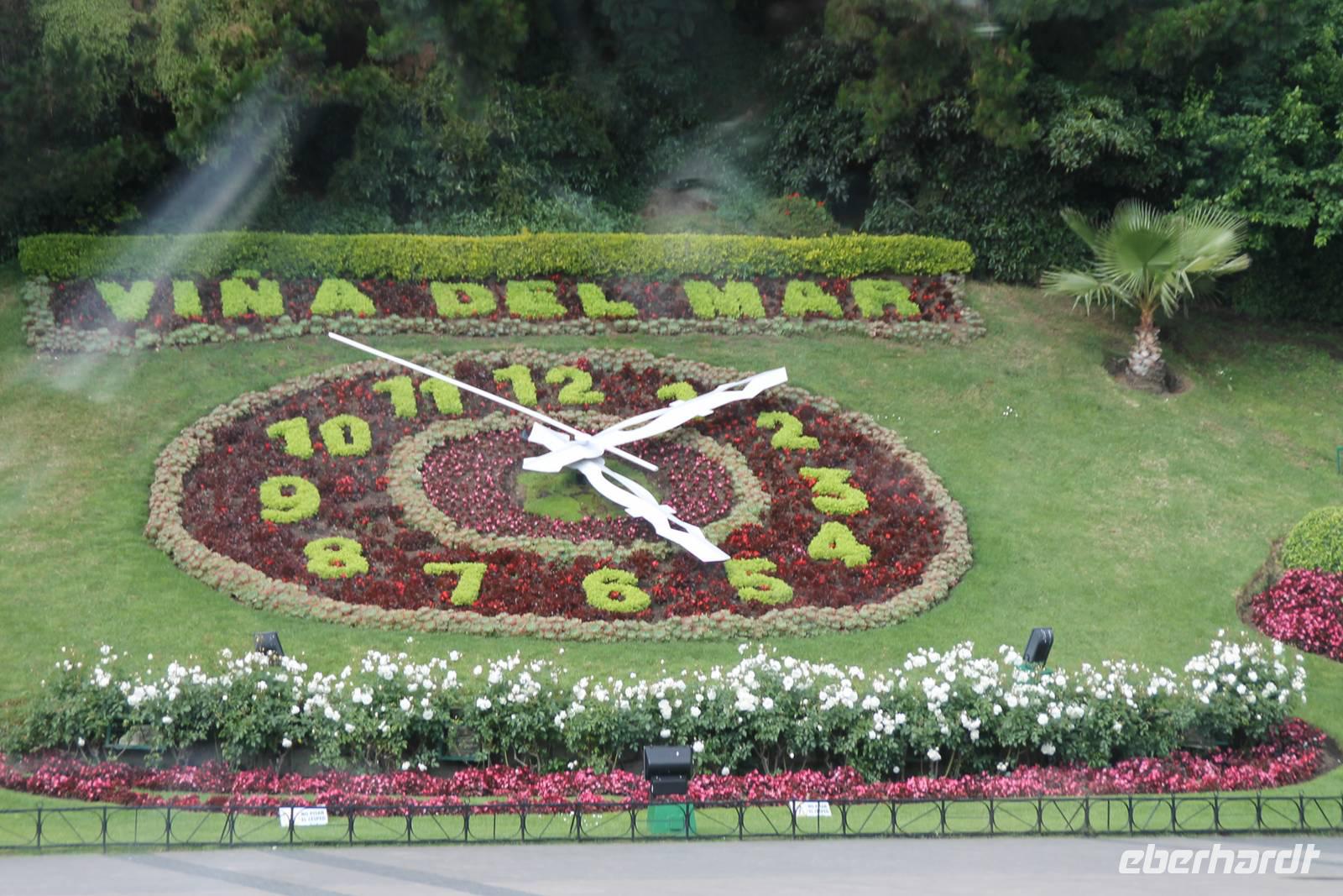 Vorbei an einer riesigen Blumenuhr, die der Stadt anlässlich der Fussball-WM 1962 geschenkt wurde, ging es zu einem kleinen Strandboulevard, der noch etwas verschlafen wirkte. Das Wasser hat durch den kalten Humboldt-Strom eine Temperatur von ca.14-16 Grad Celsius und erst im Januar/ Februar steigt sie auf 17-18 Grad an. Dennoch nutzten einige von uns die Gelegenheit, mit den Füßen im Wasser am Strand entlang zu laufen. Wer nicht aufpasste, wurde von den tosenden Wellen nass gespritzt. Von Valparaiso aus, fuhren wir anschließend zum Hotel zurück, nach Sanatiago de Chile. Wer wollte konnte mit mir abends im Drehrestaurant „Giratorio" zu Abend speisen.