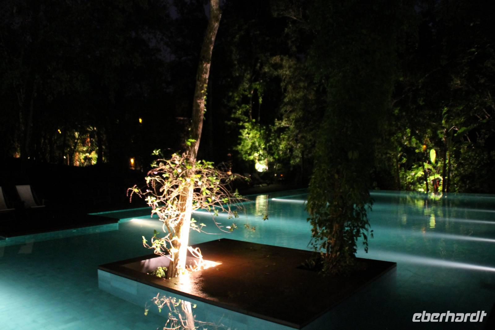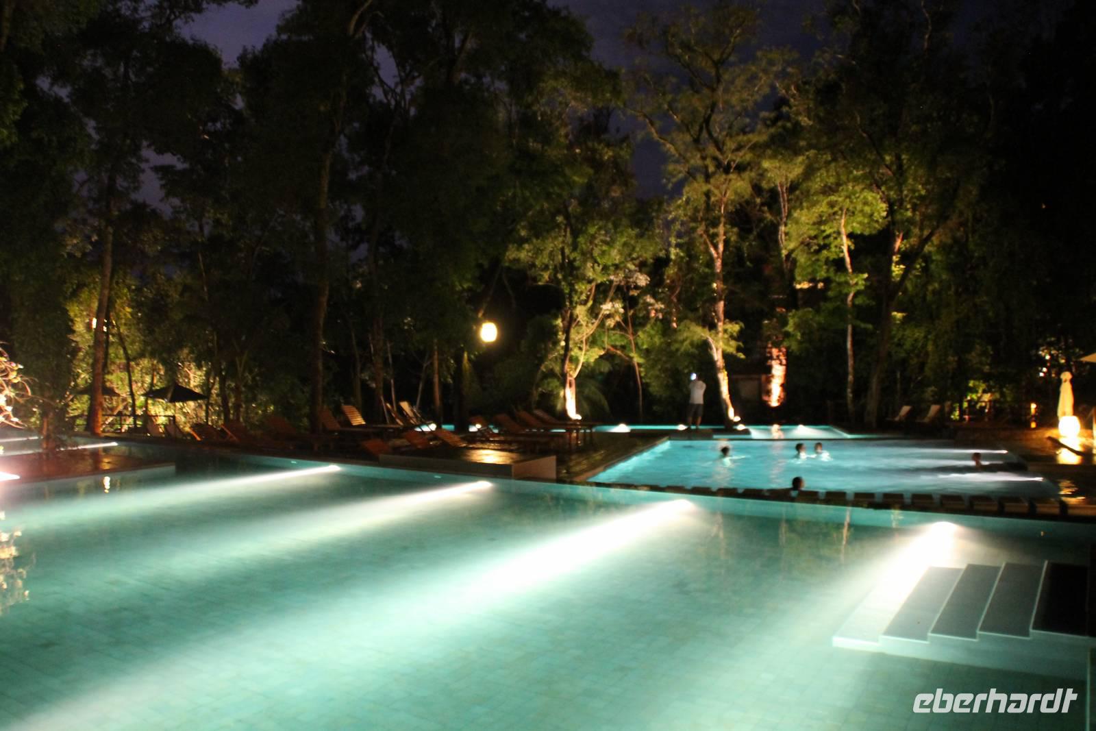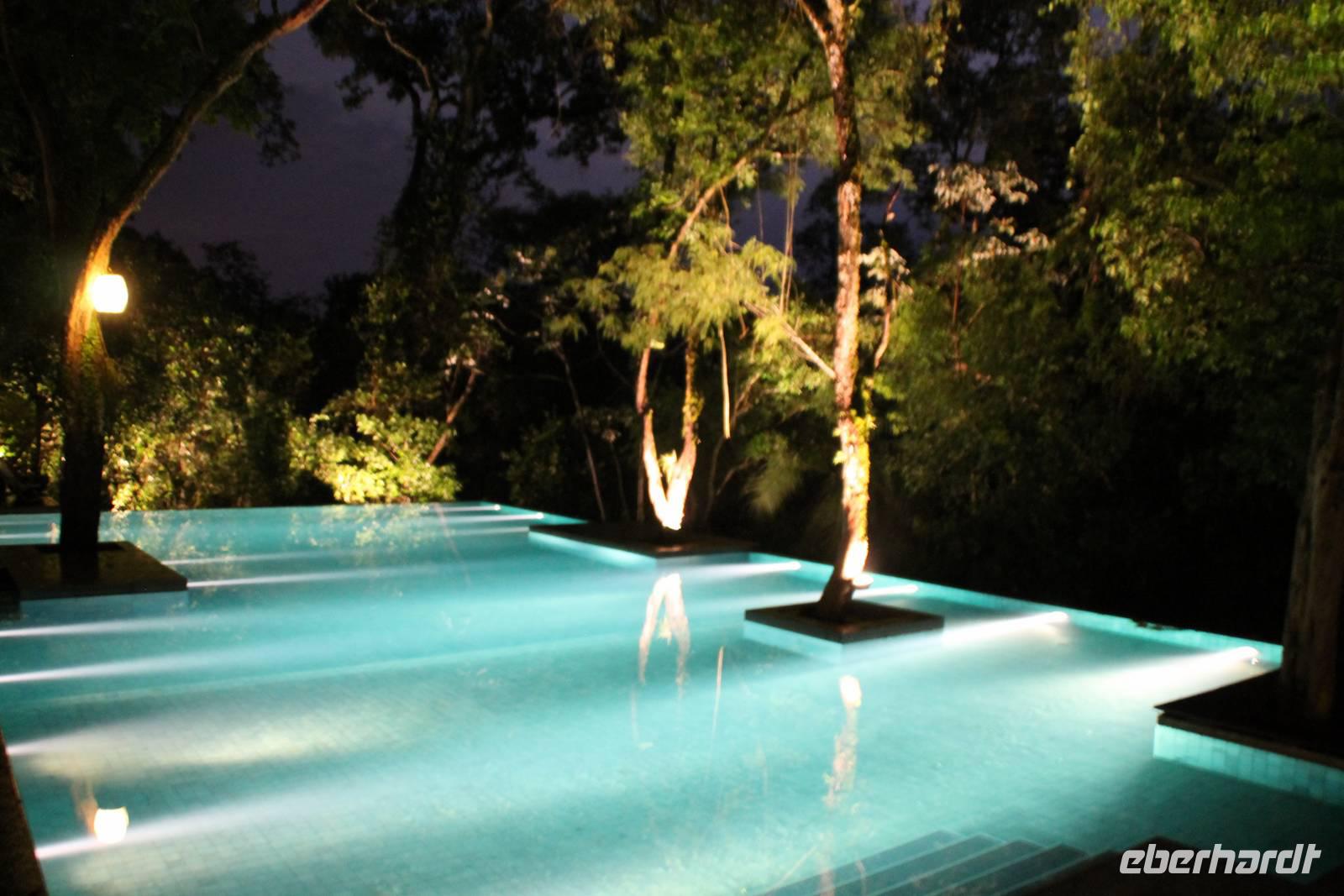 Vom Nationalpark aus fuhren wir anschließend zu unserer Hotelanlage "Loi Suites Lodge" und genossen noch etwas Freizeit. Die Hotelanlage ist mitten im Urwald im Lodge-Stil errichtet worden und die einzelnen Gebäude erreicht man über hölzerne Hängebrücken. Zudem wurden zwischen den Bäumen große und kleine Poolanlagen errichtet, was zum Baden einlud. Es war einfach ein Traum! Nach einem hervorragendem Abendessen ließen wird den Abend bei ein paar leckeren Cocktails ausklingen.