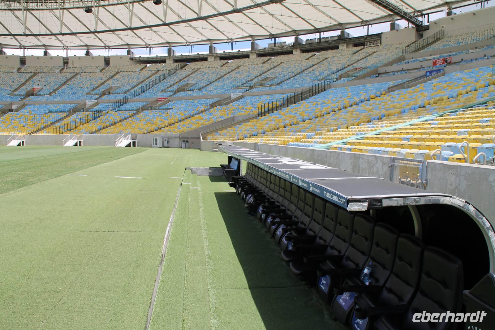 Heute ging es wieder etwas früher los, um rechtzeitig mit der Zahnradbahn zum Corcovado hoch zu fahren. Am Fuße des Berges angekommen, fuhren wir ca. 25 min. durch den subtropischen Regenwald. Oben, an der Bergstation „Parque Nacional da Tijuca" angekommen, war zumindest die weiße Christus-Figur zu sehen. Beim Blick von der Aussichtsplattform, welche unterhalb dieses Monumentes steht, konnten wir auch kurzzeitig den Zuckerhut und die Bucht von Botafogo sehen, bevor sich die Wolkendecke wieder über der Stadt zuzog. Mit der Zahnradbahn fuhren wir dann wieder zur Talstation zurück und wurden dort von unserem Reisebus abgeholt. Weiter ging es mit dem Reisebus zum Maracana Stadion. Dort konnten wir zuerst von außen ein paar Fotos machen und wer wollte konnte mit Johannes, fakultativ eine Stadionführung unternehmen. Wir besuchten die Katakomben, Tribünen und Umkleidekabinen, wo unsere Nationalmannschaft Weltmeister wurde.