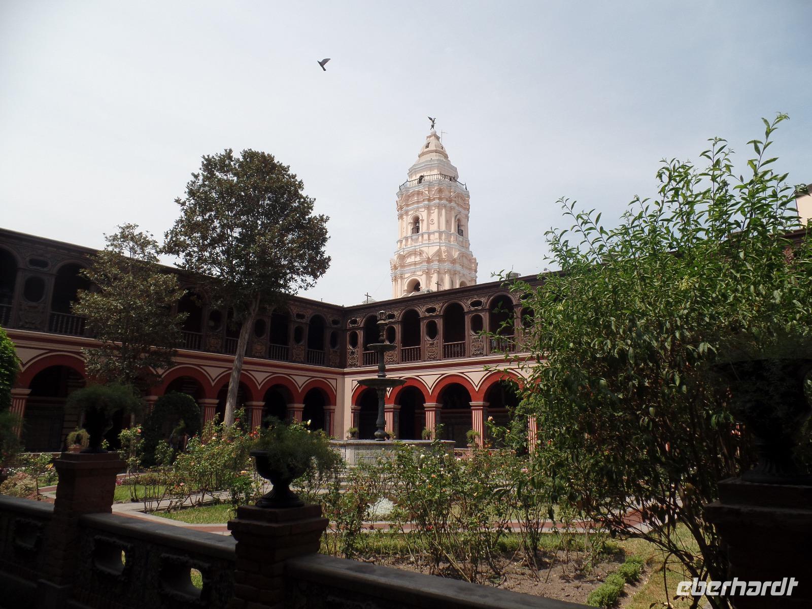 Gemeinsam mit Ursula sahen wir sowohl die moderne Gegenden Limas, als auch in das historische Zentrum der Stadt, das im Jahr 1988 zum Unesco Weltkulturerbe ernnant wurde. Wir gingen zu Fuss zu dem Santo Domingo Kloster mehr als 400 Jahre alt und voll mit tolle Fließen und Kacheln aus Sevilla, die die Spaniard hier brachten aus Andalusien. Bei der Besichtigung des Klosters Santo Domingo erstaunten wir das älteste in Holz geschnitzte Chorgestühlt Limas. Die wunderbare Innen-Altstadt von Lima hat uns sehr gefallen. Die Sonne ist richtig stark heute aber am Schatten ist angenehme und wenn der Wind kommt ist herrlich. Die Stadtrundfahrt endetet mit der Besichtigung der Stadtviertel San Isidro und Miraflores. Wir machten eine Stopp am Park der Liebe, der große Ähnlichkeit mit Parc Güell in Barcelona hat. Von hier hat man einen tollen tollen Blick auf den Pazifische Ozean. Wir entdeckten hier die Wellen-Reiter Surfer am pazifischen Ozean. Wir verabschiedeten uns hier von Ursula bis morgen und entschieden selbst zum Hotel zu laufen statt mit Bus. Aber vorher gingen wir bis ans Meer wo einige von uns badeten. Herrlich die Erfrischung von Ozean zu bekommen?? Danach hoch wieder auf dem Kennedy Park aßen wir gemeinsam ein Sandwich mit Pommes und weiter bis zum Hotel. Einen wunderschönen Spaziergang am Schatten über die ganze Arequipa Allee mit 3 Pausen. Wir sind bisschen müde und bis zum Abendessen hatten wir freie Zeit. Bis 19.15 Uhr hatten wir Freizeit und Benjamin hatte eine Überraschung aber diesmal wurde er überrascht. Eine Familie aus Madrid und Italien, die hier seit einigen Jahren wohnen und schon mit 5 Kindern, wusste dass ich hier war und warteten alle im Hotel um gemeinsam ein Eis zu essen. Ich hatte ihn, mein Freund, Otto seit mehr als.....20 Jahre nicht mehr gesehen!!!! Das Leben. Benjamin könnte genießen seine Freunden zu treffen, Otto aus Madrid und Lucia aus Italien, die seit mehr als 15 Jahre nicht gesehen hat. Zusammen Lucia und Otto mit schon 5 Kindern wohnen hier in Lima seit mehr als zwei Jahre und fühlen sich ganz wohl. Ganz nette Menschen sind die Peruanern, immer freundlich und mit einem Lächeln ins Gesicht.