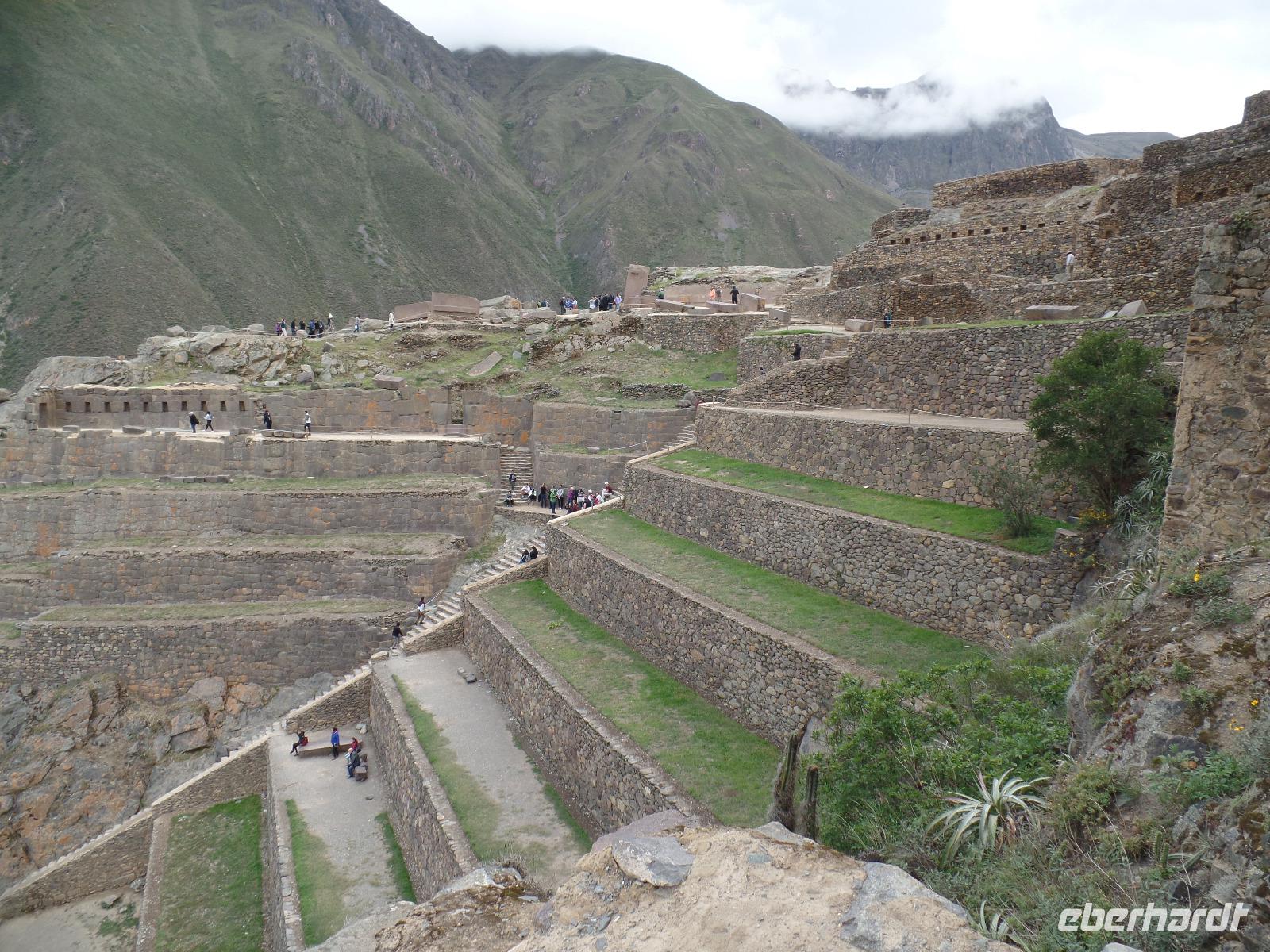 Wir fuhren weiter und machten uns gemütlich kurz eine schöne Pause um Geld zu wechseln. Die Natur wird hier immer schöner. Schon in Ollantaytambo Festung besichtigten wir den beeindruckenden Sonnentempel und die Terrasse der zehn Nischen. Einfach herrlich. Ollantaytambo war der einzige Ort, an dem sich die Inka den Spaniern erfolgreich zur Wehr setzten. Der Sonnentempel wurde aus sechs gigantischen Monolithen mit einem Gesamtgewicht von mehr als 50 Tonnen erschaffen. Unglaublich... und das alles zur Mittelalterzeit in Europa. Ollantaytambo ist spannend, wir gehen durch enge Gassen dieser kleinen Stadt.