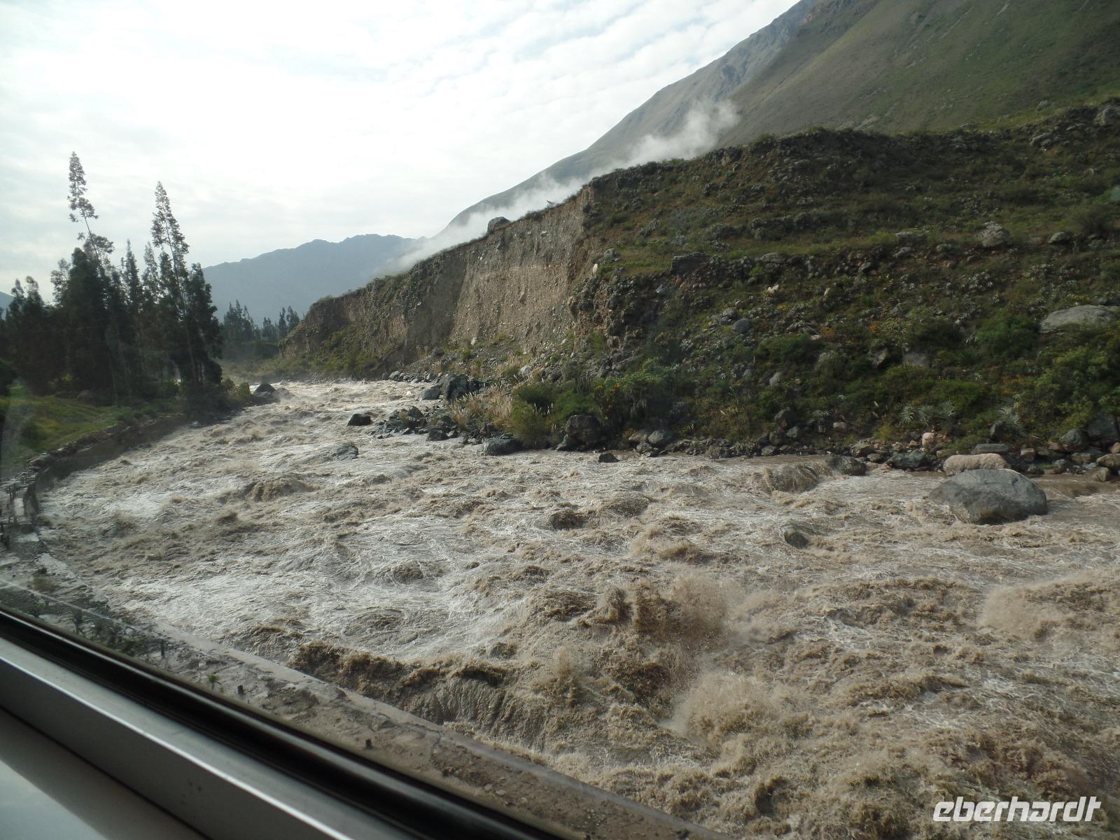 Um 5:30 am werden wir aufgeweckt und geniessen die ersten Strahlen der Sonne. Nach dem Frühstück in diesem herrliche Anlage Hotel Inkallpa, fuhren wir ohne grosse Koffer kurz bis Bahnhof. Hier früh am Morgen um 8 Uhr beginnt unsere unvergessliche Zugfahrt im Panoramawagen nach Machu Picchu. Die Fahrt führt uns durch das fruchtbare und beeindruckende heilige Tal des Río Urubamba bis nach Agua Calientes. Zug Vistadome hat tolle Aussichten durch Panoramafenster... Auf die Fahrt erstaunten wir zwei Gletchers. San Francisco Gletscher aber die schönste von allen.... Veronica Gletzcher! Da oben! Ewige Schnee... über 5.000 Meter hoch... die Spitze, den Gipfel ist wie eine perfekte Pyramide. Wir fuhren erste Klasse. Wir haben alle feste Plätze und fahren gemeinsam in einem Wagon. Einfach herrlich. Wir haben einen 2.Früstück am Bord und genassen die weniger als 2 Stunden Fahrt ganz gemütlich. Wunderschön. Nur 40 Kilometer pro Stunde Geschwindigkeit. Der Fluss begleitet uns immer Tal unter. Immer Berg ab, Tal unter bis Aguas Calientes.