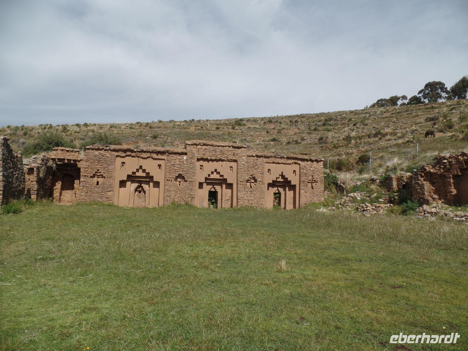 Später auf der Mondinsel wollte Benjamin schnell ins Wasser um zu testen wie kalt es wirklich war aber dieses Jahr hat er sich nicht zugetraut. Die Mondinsel ist ein heiliger Platz und beherbergt den Konvent „Iñak Uyu" (Jungfrauen der Sonne"), den wir besichtigten. Uns hat es auch gefallen.