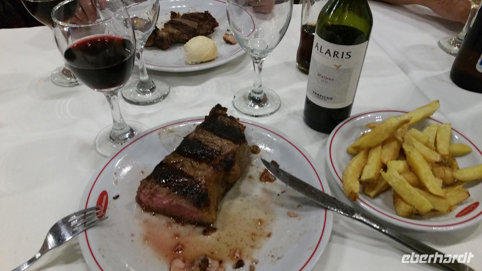 Zum Abendessen empfiehlt Benjamin ein Restaurant wo wir heute nochmals zum letzten Mal unser erstes argentinisches Steak essen könnten. So ein riesigen großen Steak.... ob wir das schaffen... aber es war richtig saftig und zart wie Butter und mit einen Glas Rotwein haben wir es alles oder fast alle ganz gut geschafft.