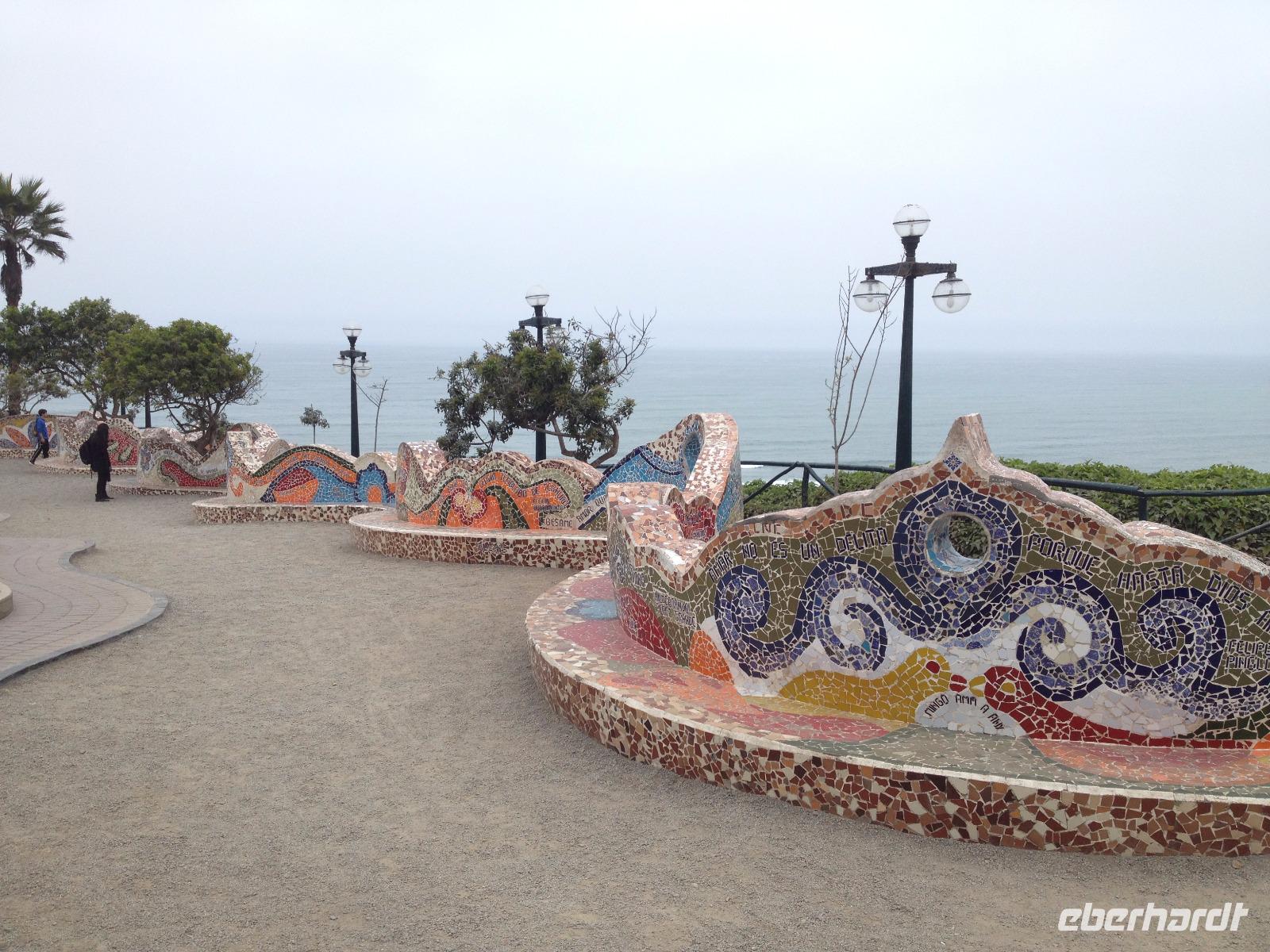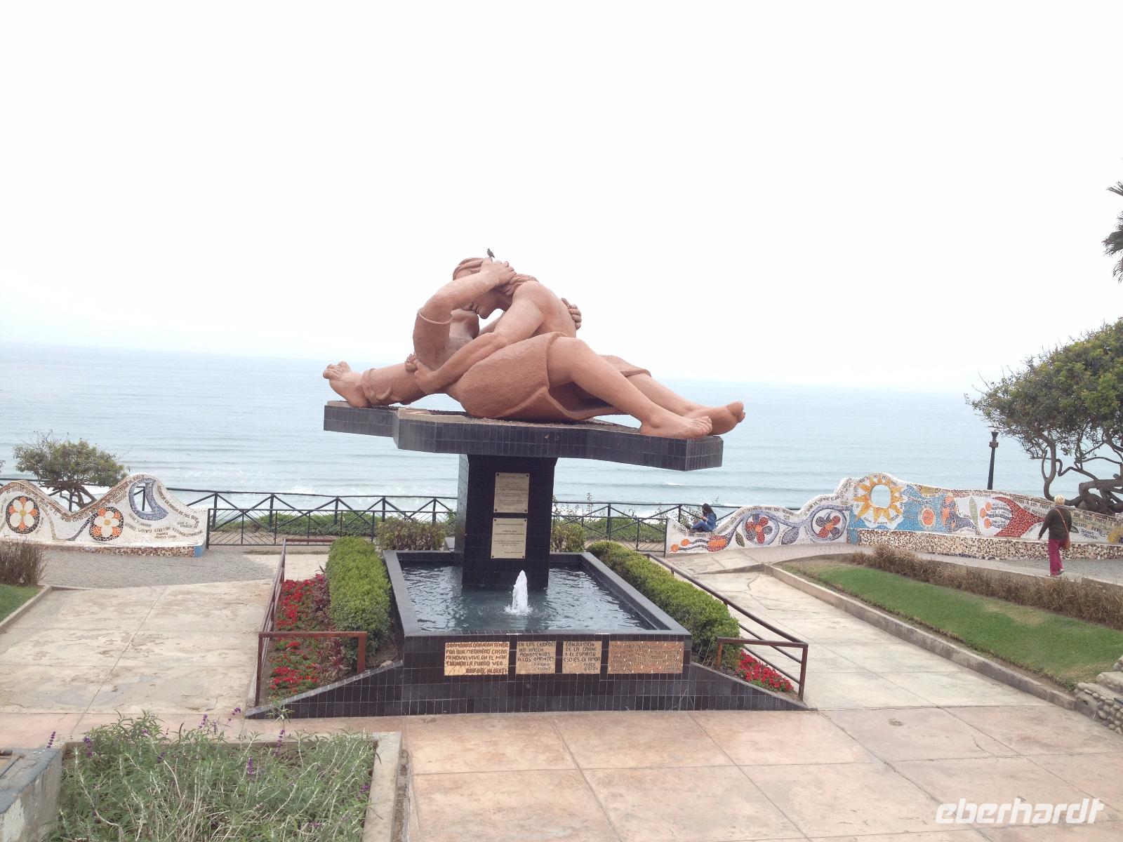 Danach sind wir zum Miraflores Viertel gefahren, wo wir den Parque del Amor besuchten, welcher in katalanischem Jugendstil angelegt wurde. In dessen Mitte befindet sich ein großes Denkmal, das die Liebe des peruanischen Volkes mit der Welt darstellen soll.