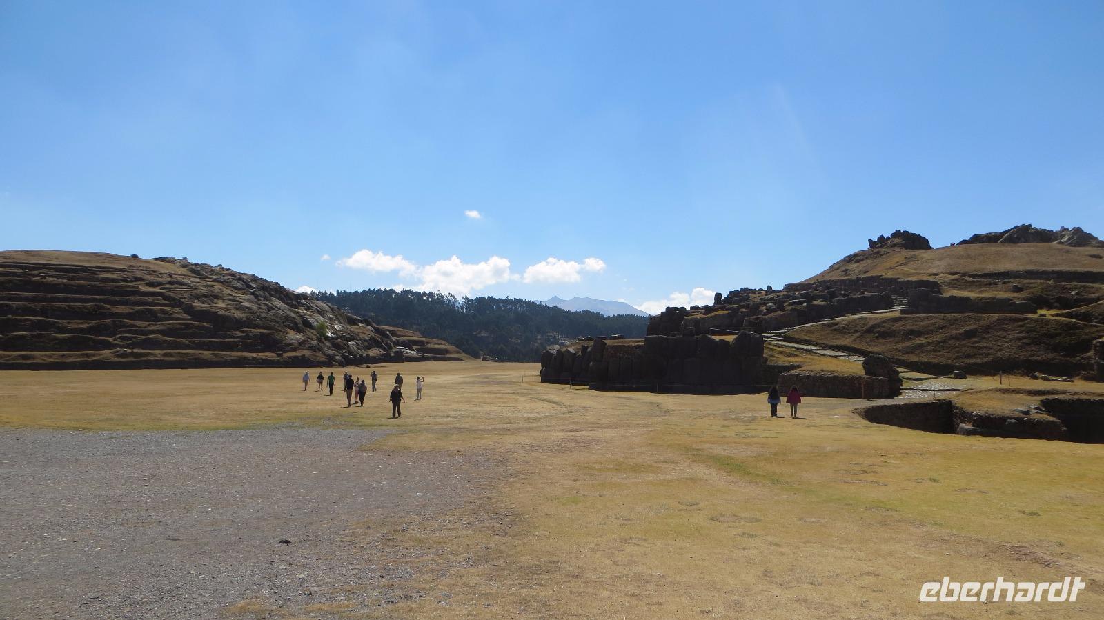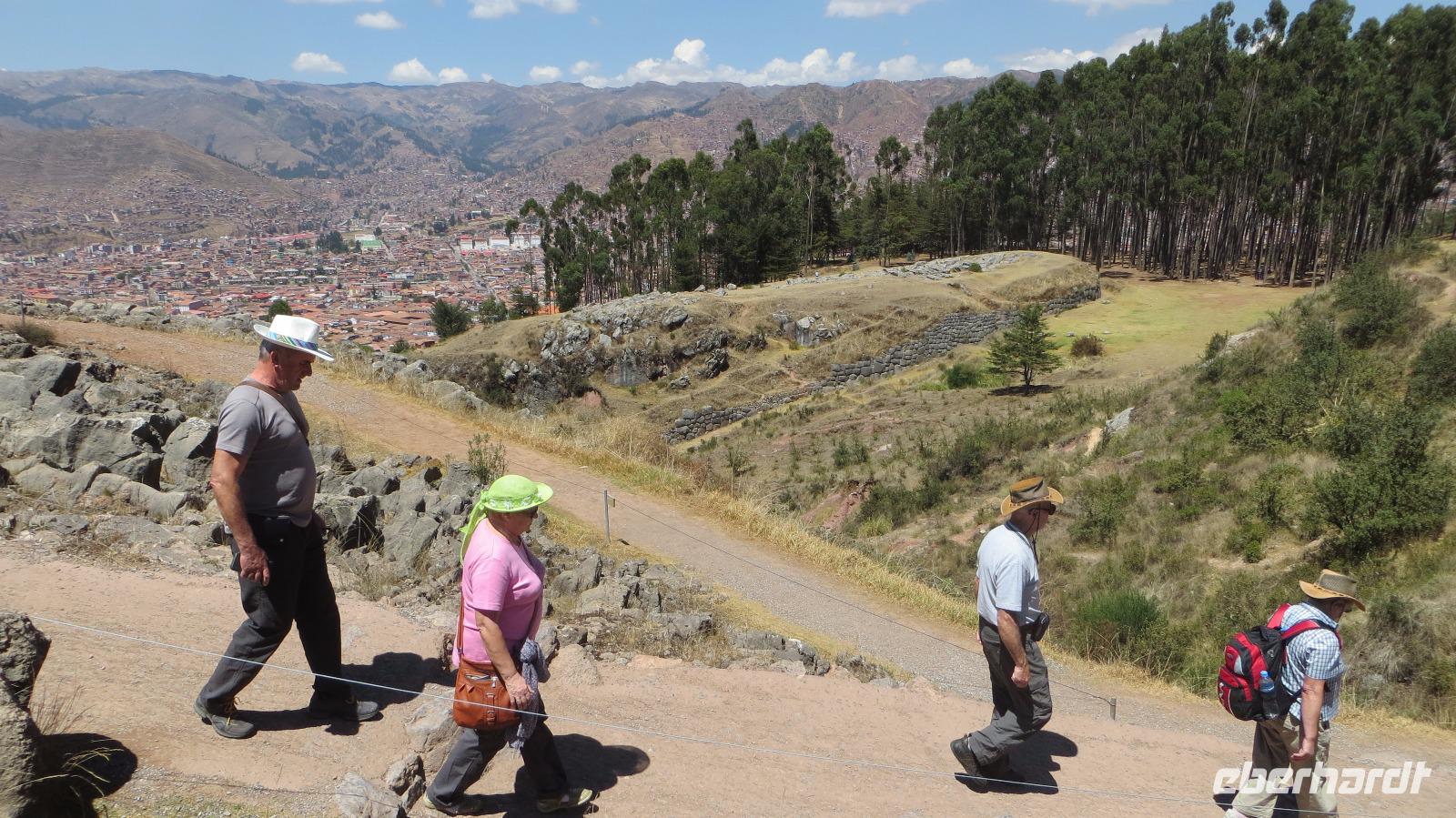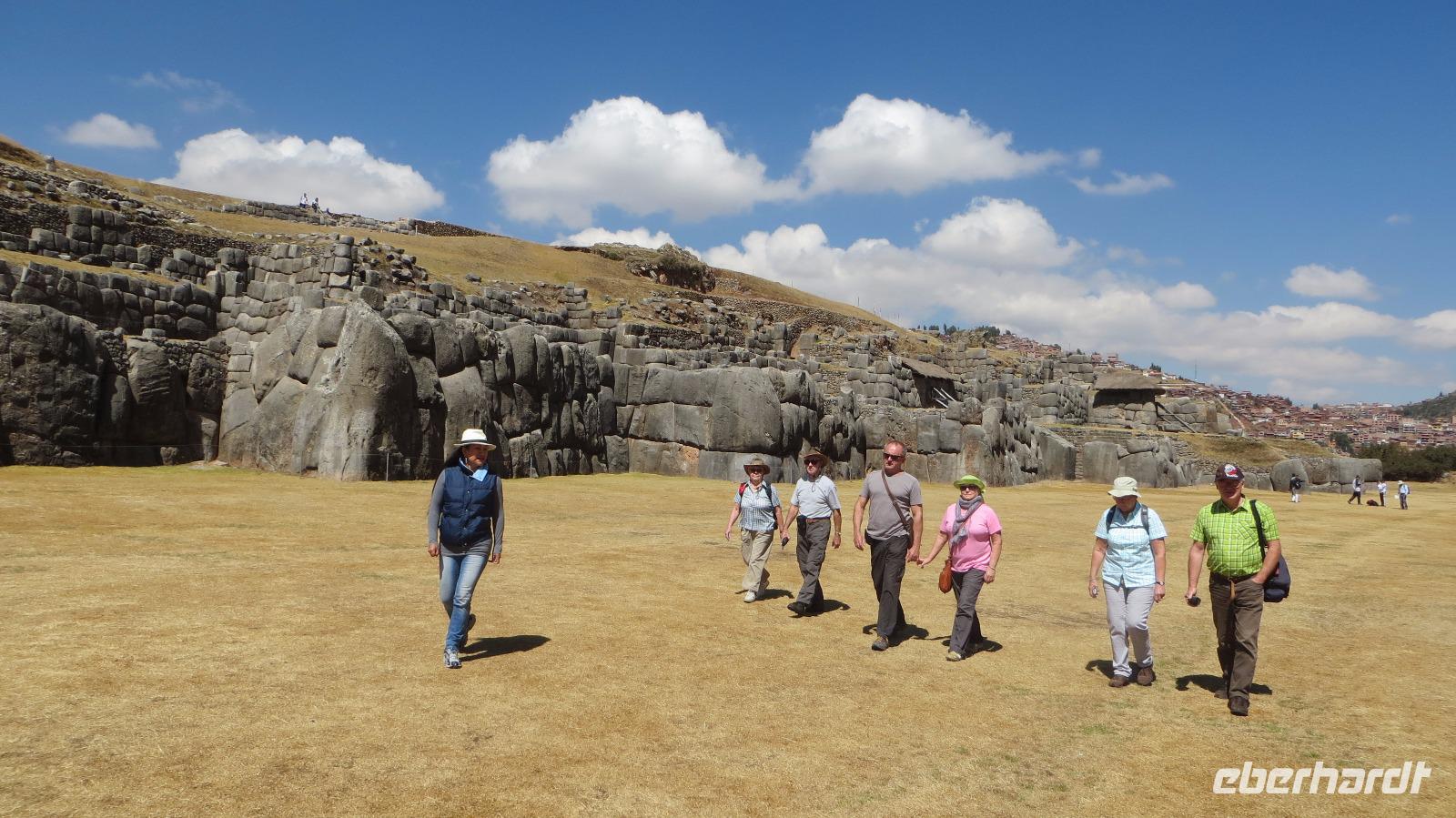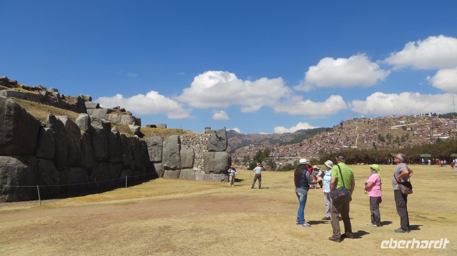 Sacsayhuaman bedeutet Grauer Kopf, da er die Form eines Pumakopfes hat. Der Körper des Pumas ist die Stadt Cuscos. Wir spazierten über die Zick-Zack- Mauer, welche die Zähne des Pumas sein sollen.