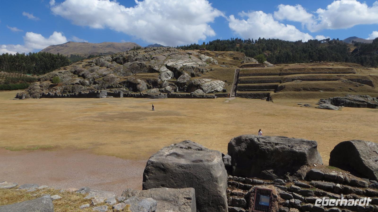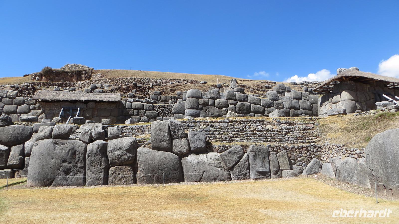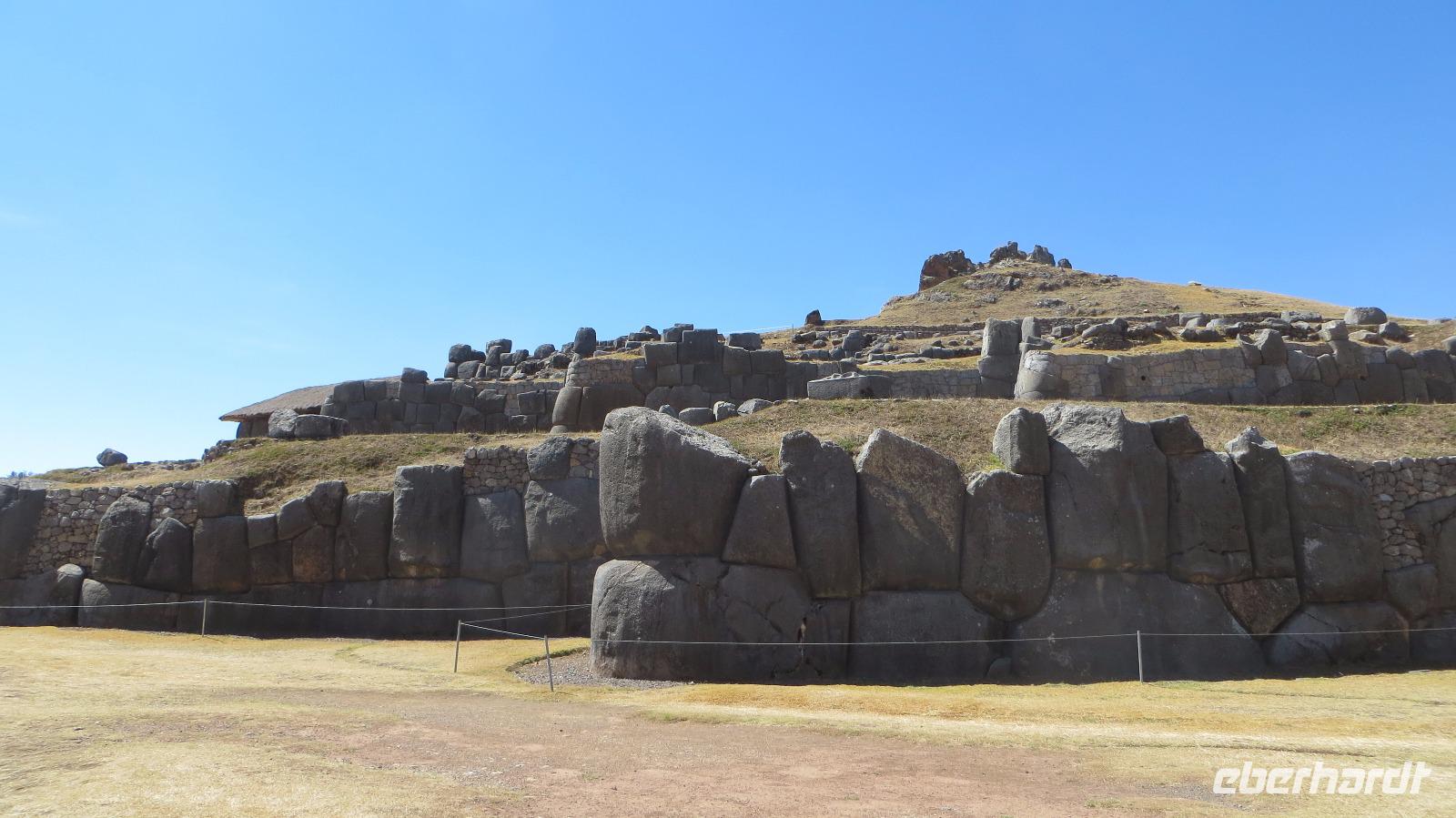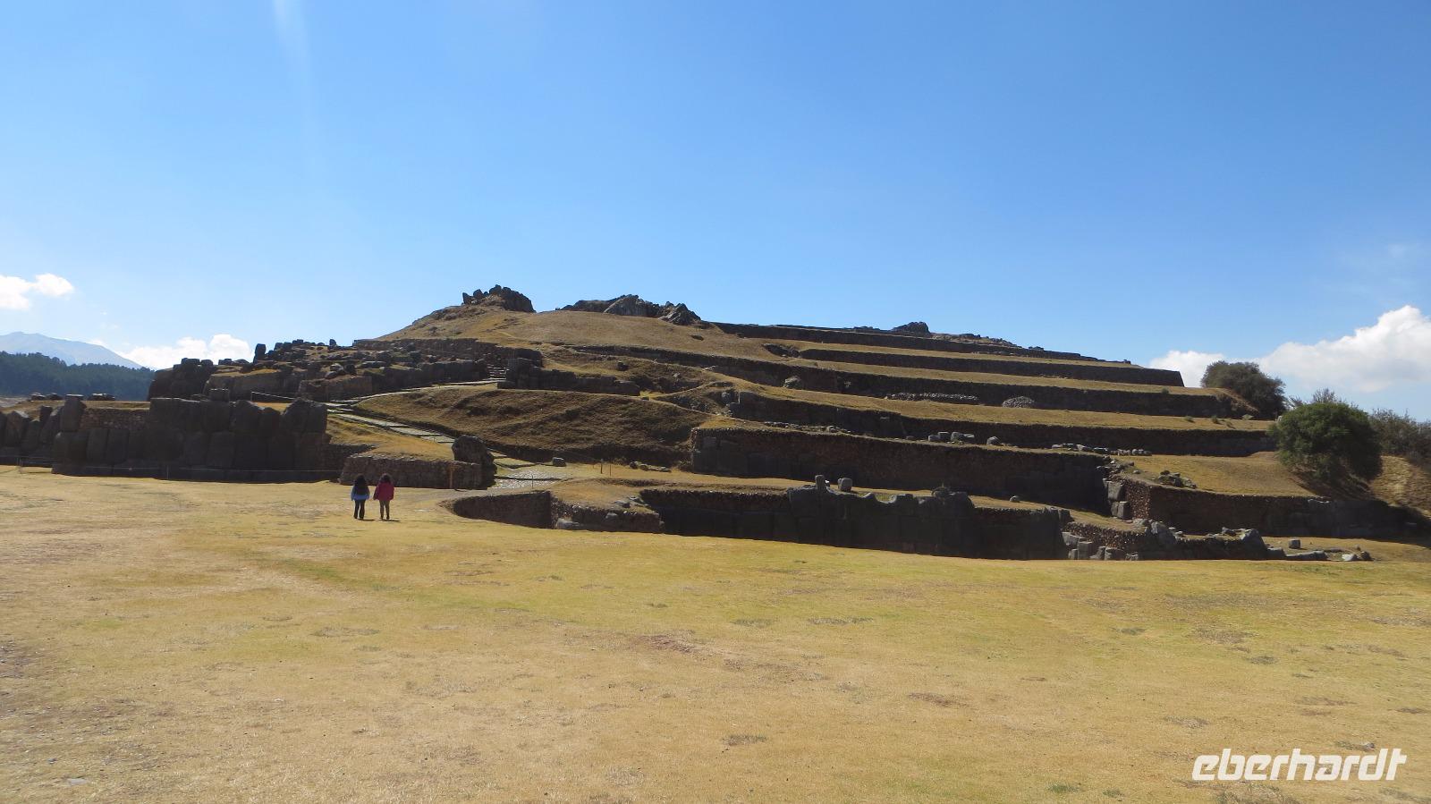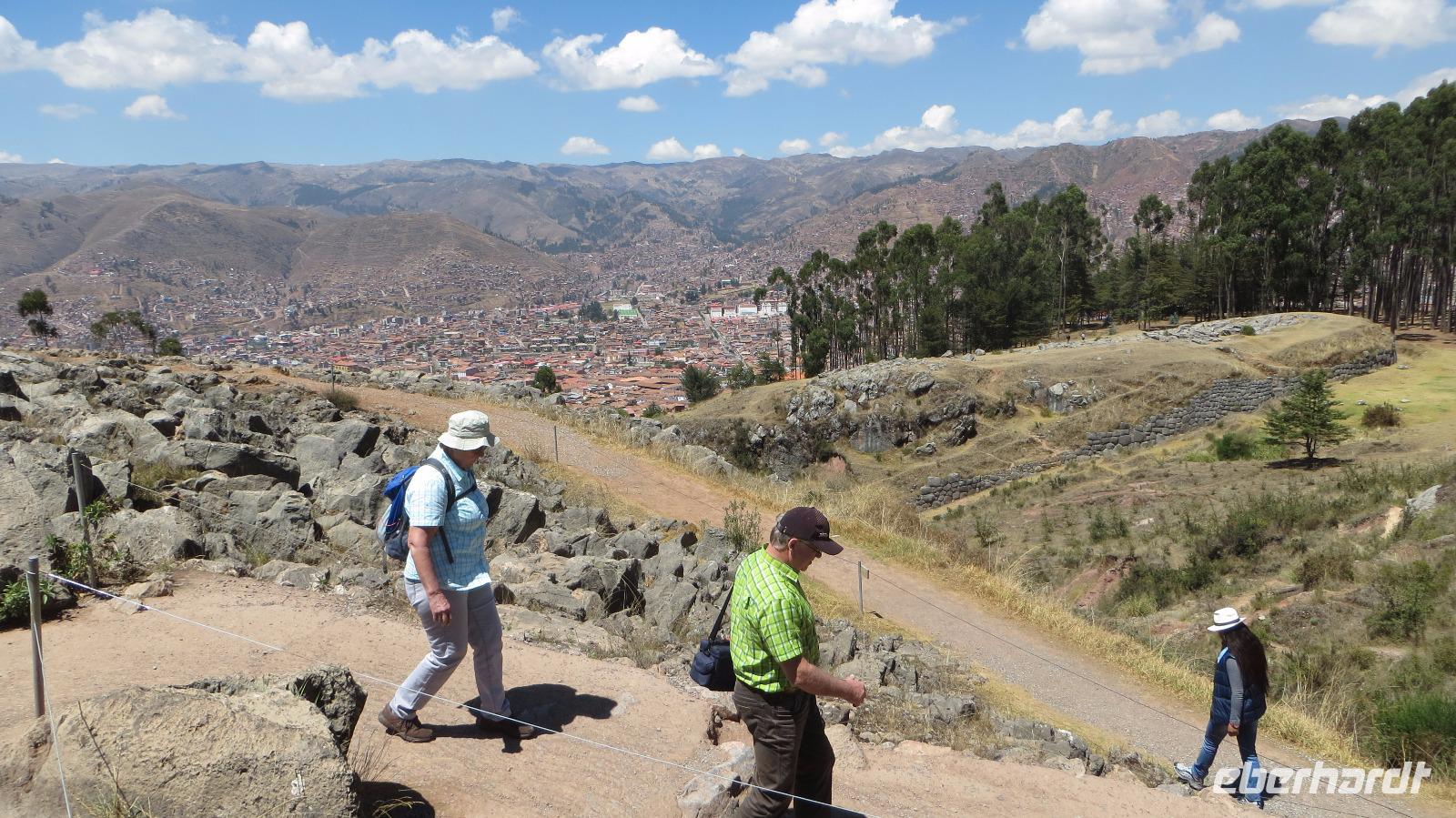Sacsayhuaman bedeutet Grauer Kopf, da er die Form eines Pumakopfes hat. Der Körper des Pumas ist die Stadt Cuscos. Wir spazierten über die Zick-Zack- Mauer, welche die Zähne des Pumas sein sollen.