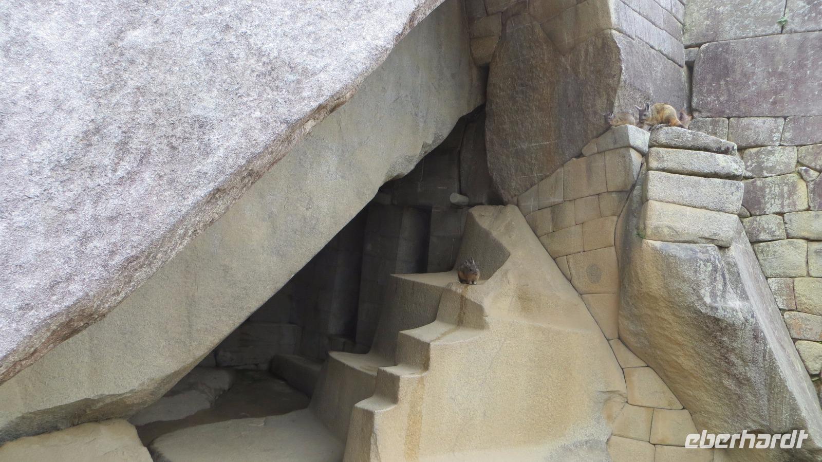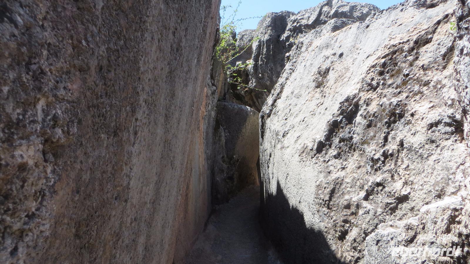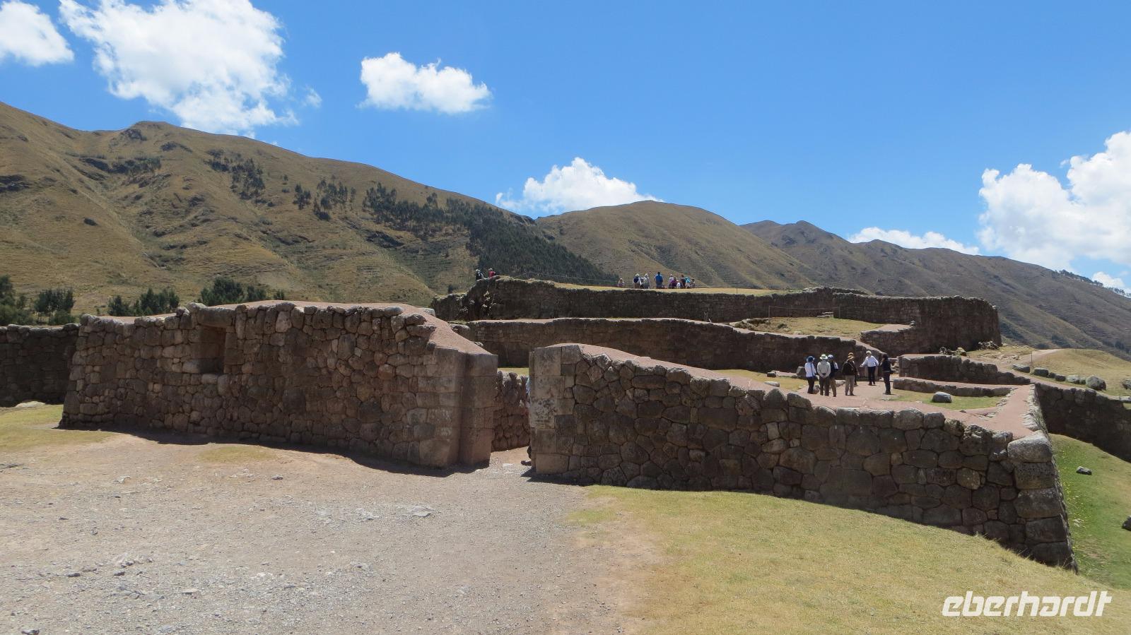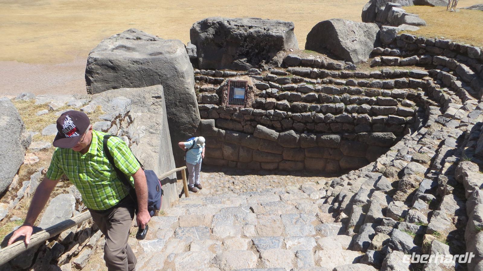 Dann fuhren wir ein Stück weiter und besuchten Q'enqo. Den Zeremonie-Tempel mit einem kleinen Auditorium und den Nischen für die Mumien. In diesem Tempel wurden verschiedene Rituale zelebriert z.B. Lamas sakrifiziert und Kinder mumifiziert. Q'enqo bedeutet Zig Zag. Es ist ein Labyrinth und dessen Form stellt den Rücken des Pumas dar.