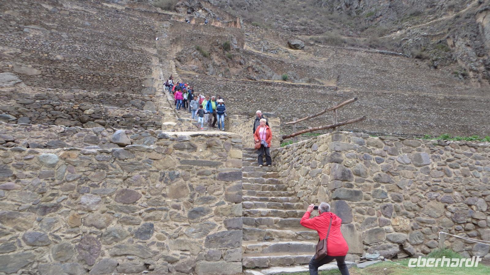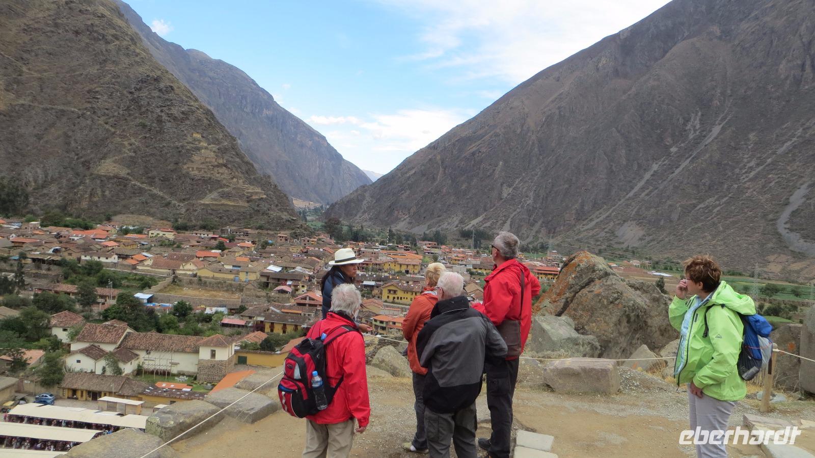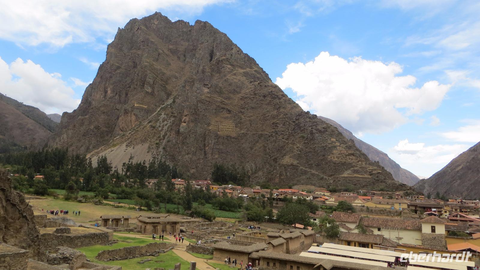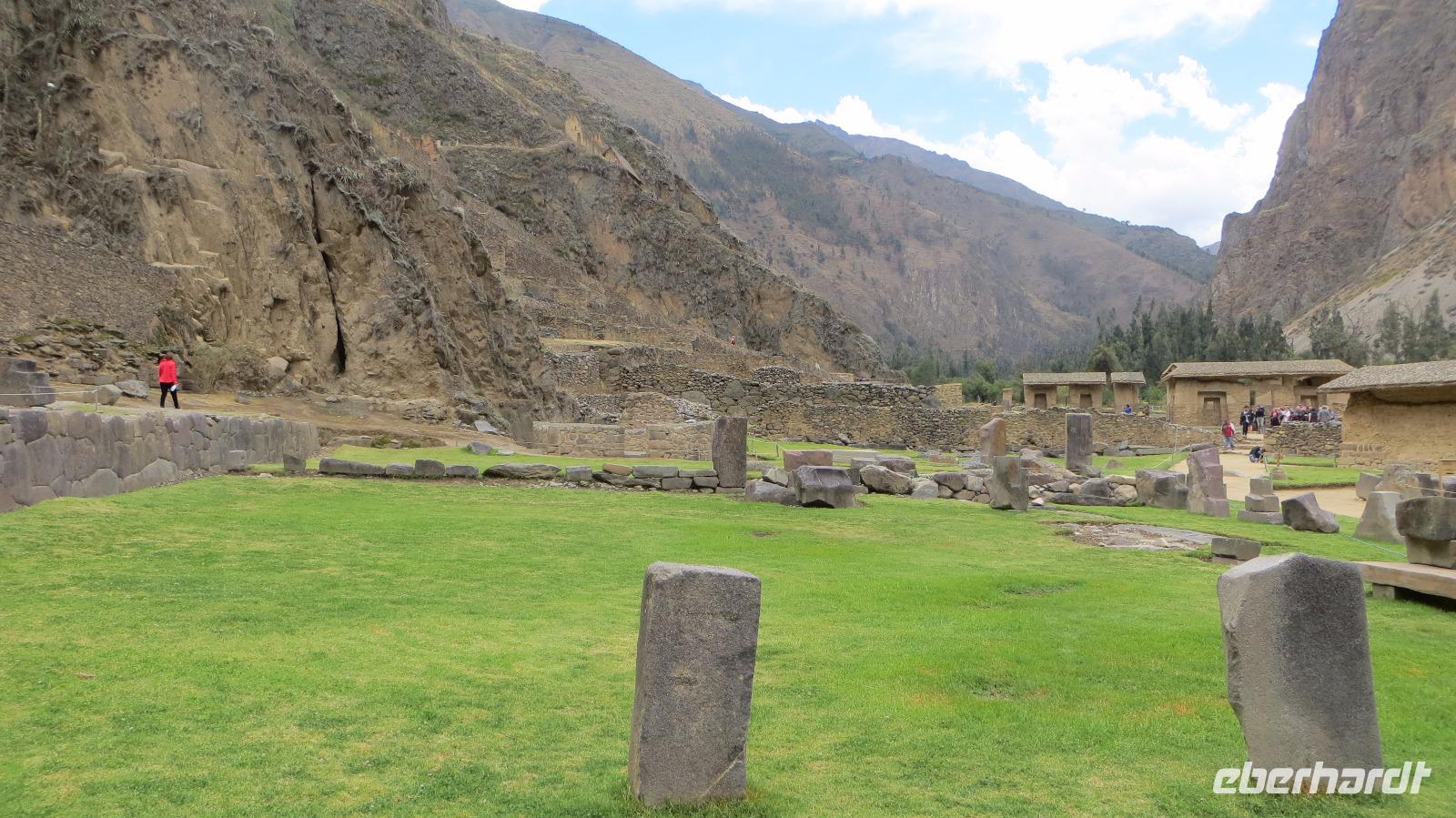 Diese archäologische Stätte ist eine der bedeutsamsten Bauten aus Inka-Zeiten und liegt an einem strategischen Punkt im Heiligen Tal ( Valle Sagrado) auf dem Weg in Richtung Machu Picchu (eines der 7 Weltwunder). Von hier wanderten wir über die Felder zum Sonnentempel, bewunderten die rosa Farbe der Steine und hatten einen wunderschönen Ausblick auf das Tal und den gegenüberliegenden Berg Pinkuylluna mit dem Gesicht des Gottes Tunupa, die Lager und den Friedhof. Dieser Ort ist etwas ganz besonderes.