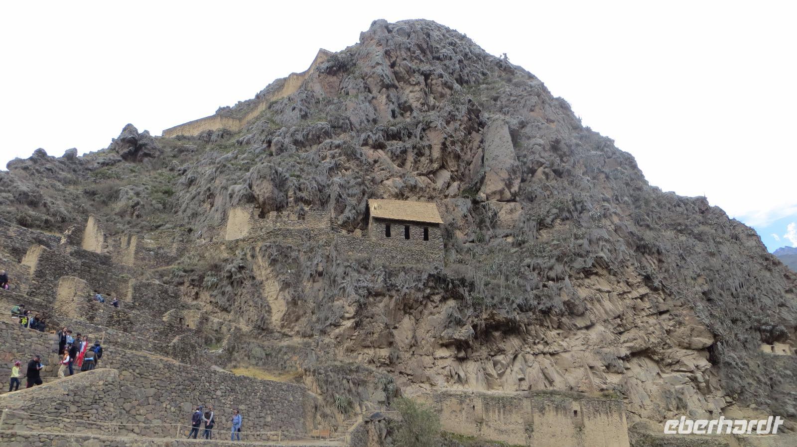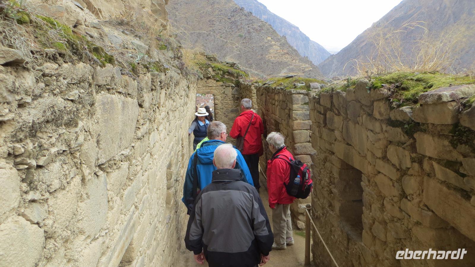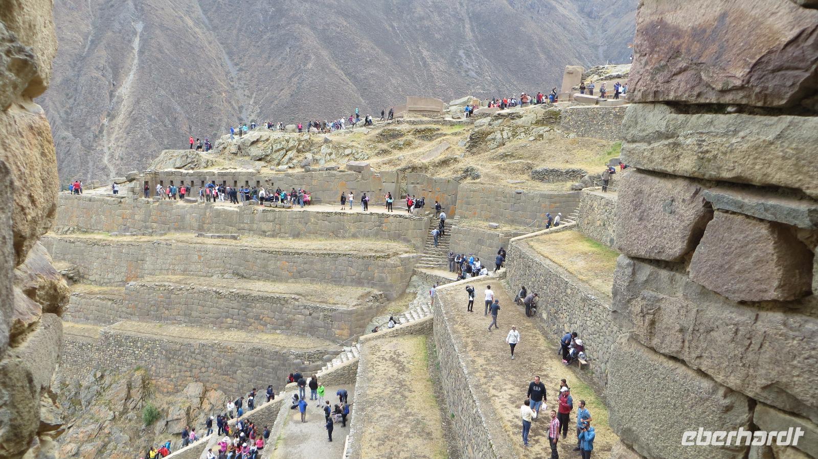 Diese archäologische Stätte ist eine der bedeutsamsten Bauten aus Inka-Zeiten und liegt an einem strategischen Punkt im Heiligen Tal ( Valle Sagrado) auf dem Weg in Richtung Machu Picchu (eines der 7 Weltwunder). Von hier wanderten wir über die Felder zum Sonnentempel, bewunderten die rosa Farbe der Steine und hatten einen wunderschönen Ausblick auf das Tal und den gegenüberliegenden Berg Pinkuylluna mit dem Gesicht des Gottes Tunupa, die Lager und den Friedhof. Dieser Ort ist etwas ganz besonderes.