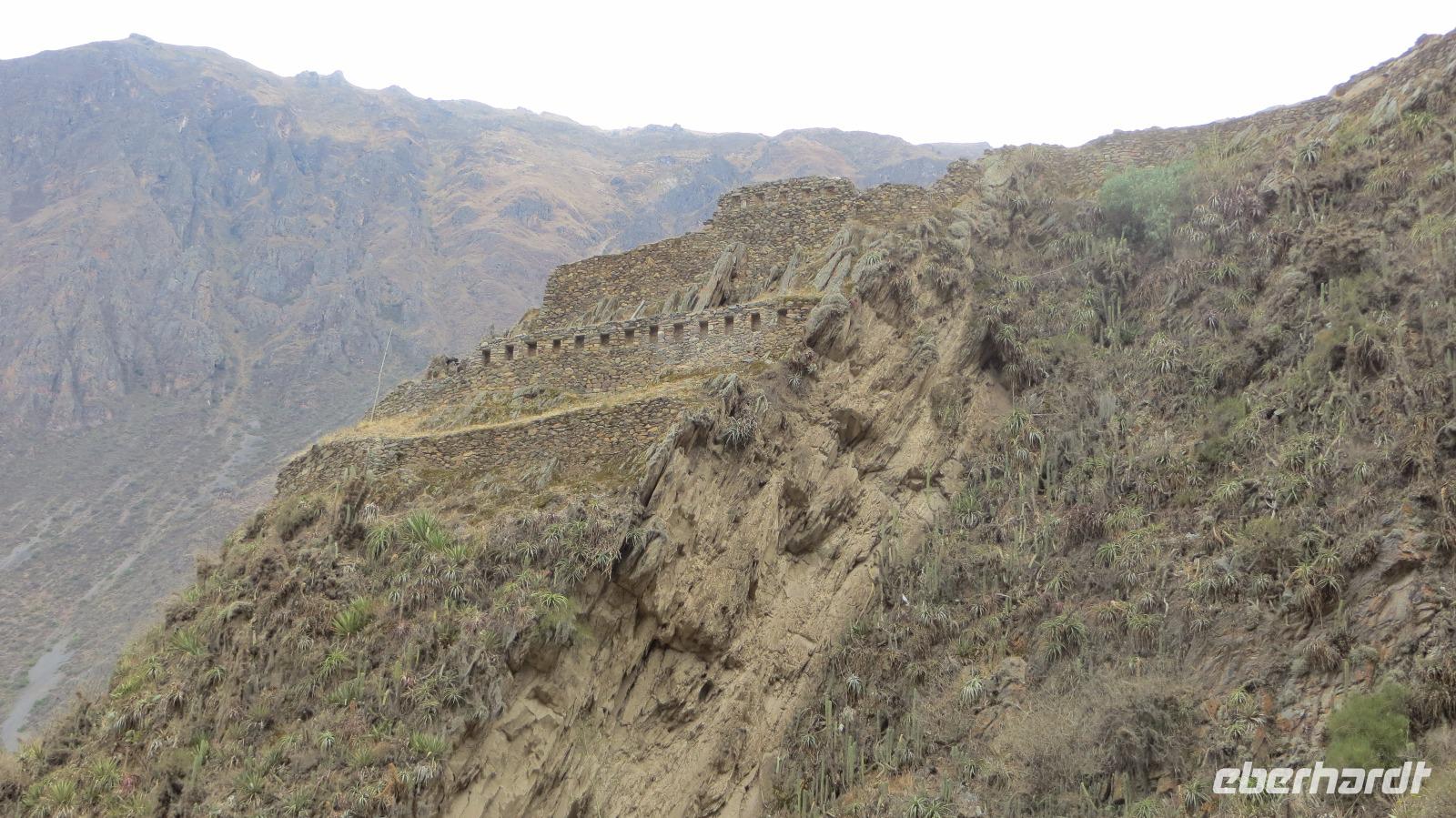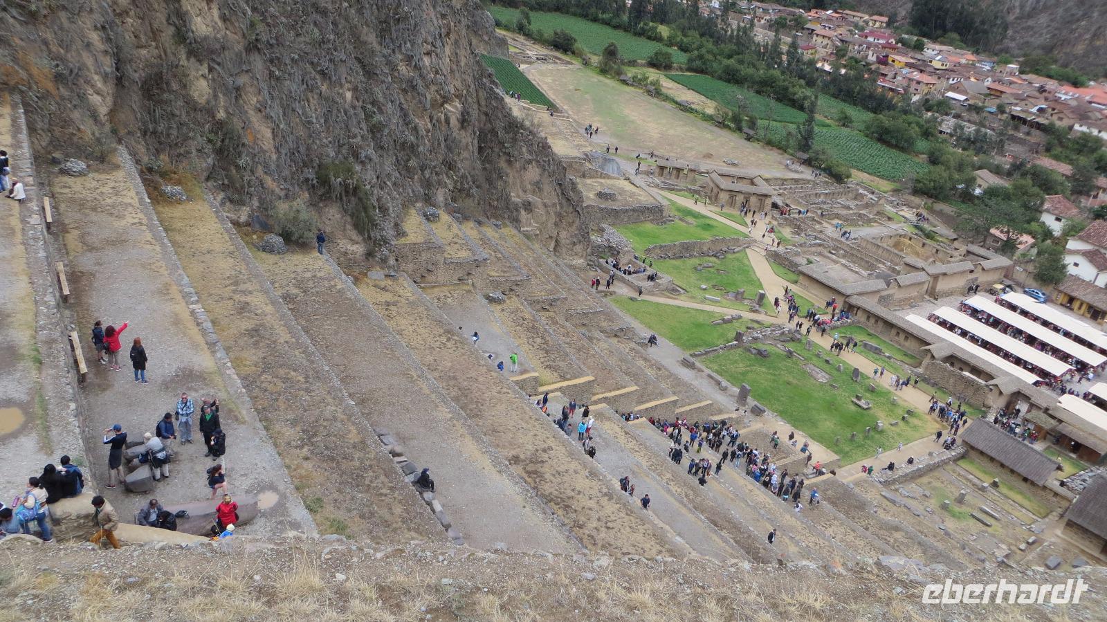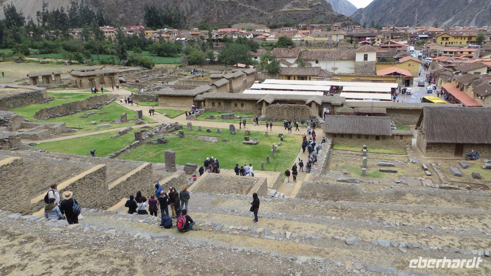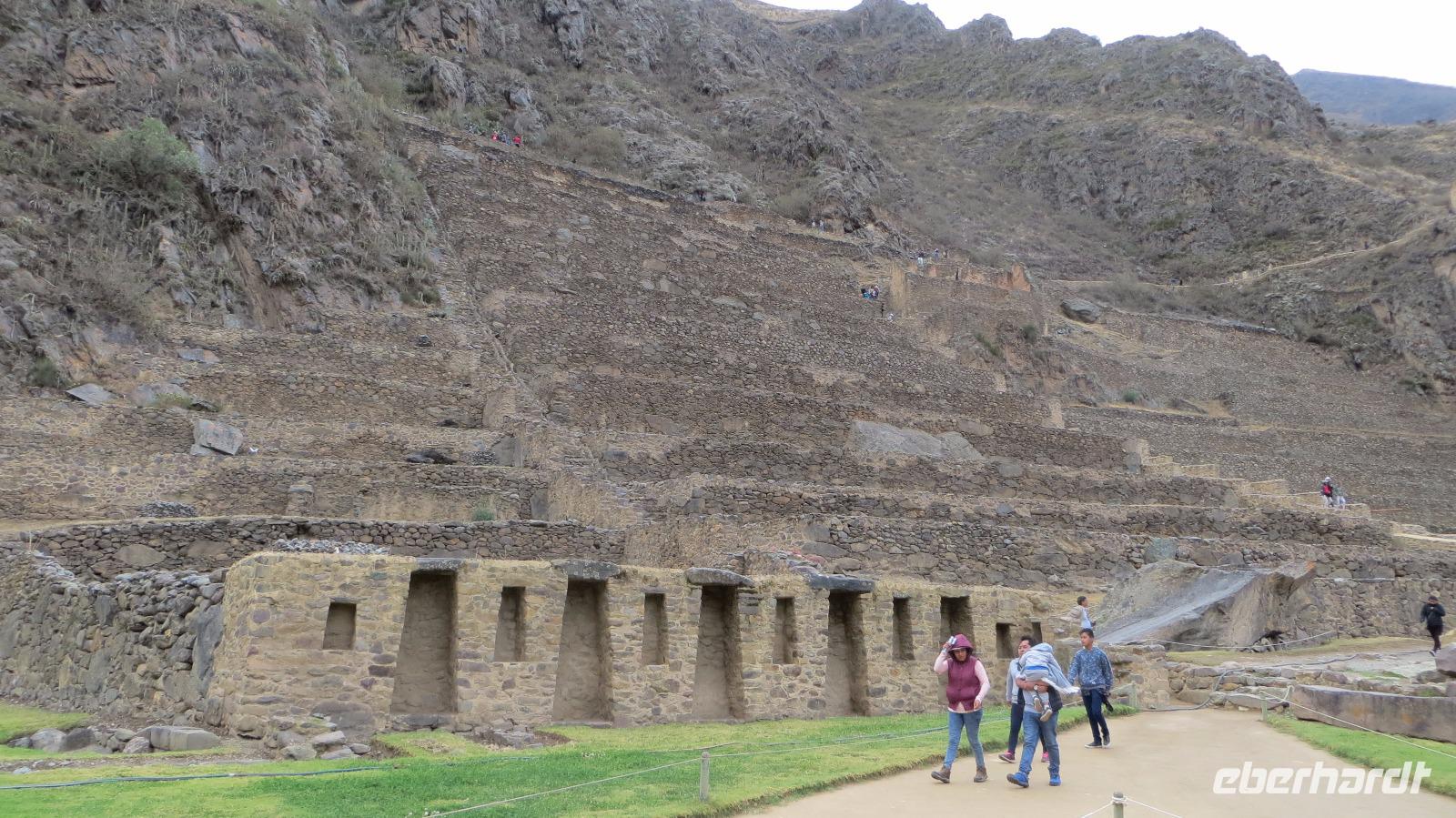 Diese archäologische Stätte ist eine der bedeutsamsten Bauten aus Inka-Zeiten und liegt an einem strategischen Punkt im Heiligen Tal ( Valle Sagrado) auf dem Weg in Richtung Machu Picchu (eines der 7 Weltwunder). Von hier wanderten wir über die Felder zum Sonnentempel, bewunderten die rosa Farbe der Steine und hatten einen wunderschönen Ausblick auf das Tal und den gegenüberliegenden Berg Pinkuylluna mit dem Gesicht des Gottes Tunupa, die Lager und den Friedhof. Dieser Ort ist etwas ganz besonderes.