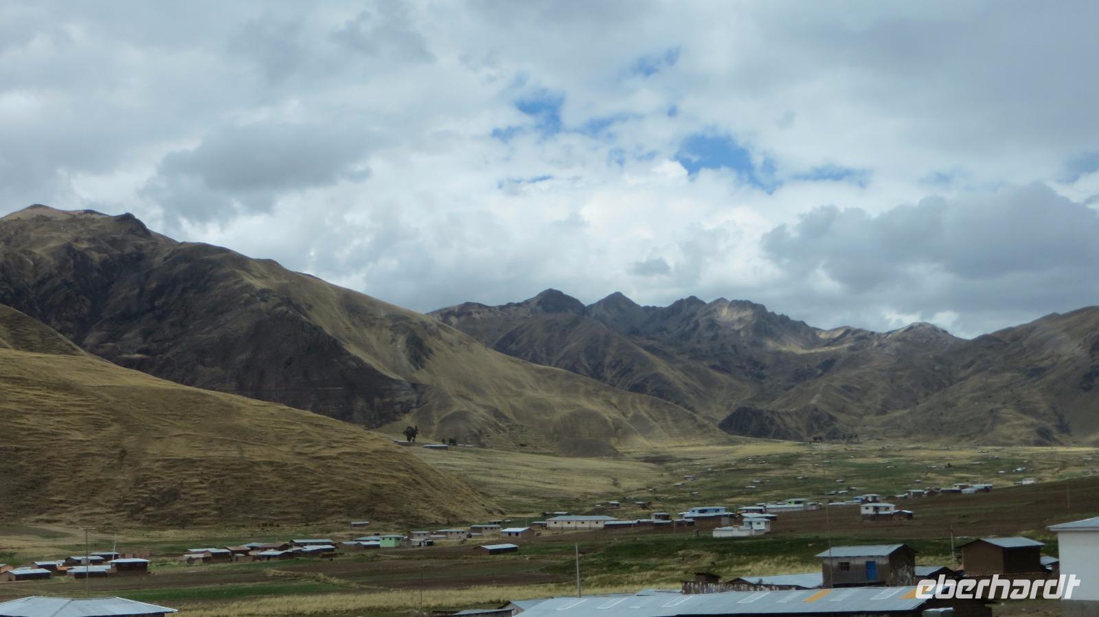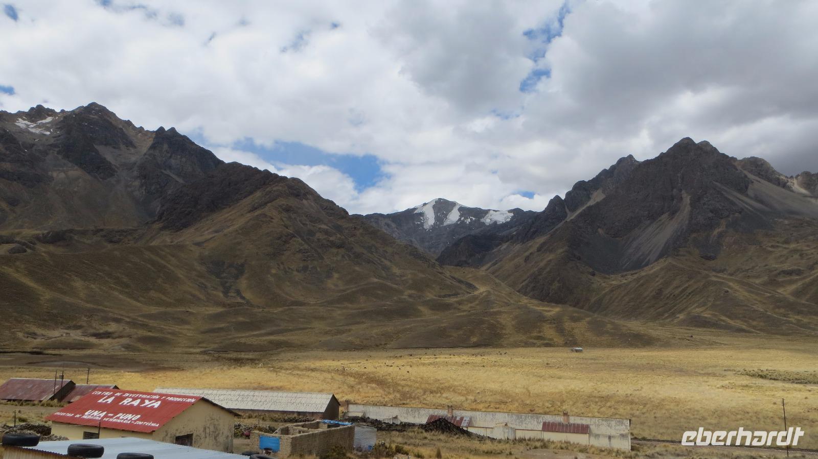 Wir fuhren weiter nach Altiplano und machten einen Stopp an der Grenze zwischen den Regionen Cuzco und Puno genannt „ La Raya", 4335müM mit wunderschönem Blick auf den Berg Chimboya.