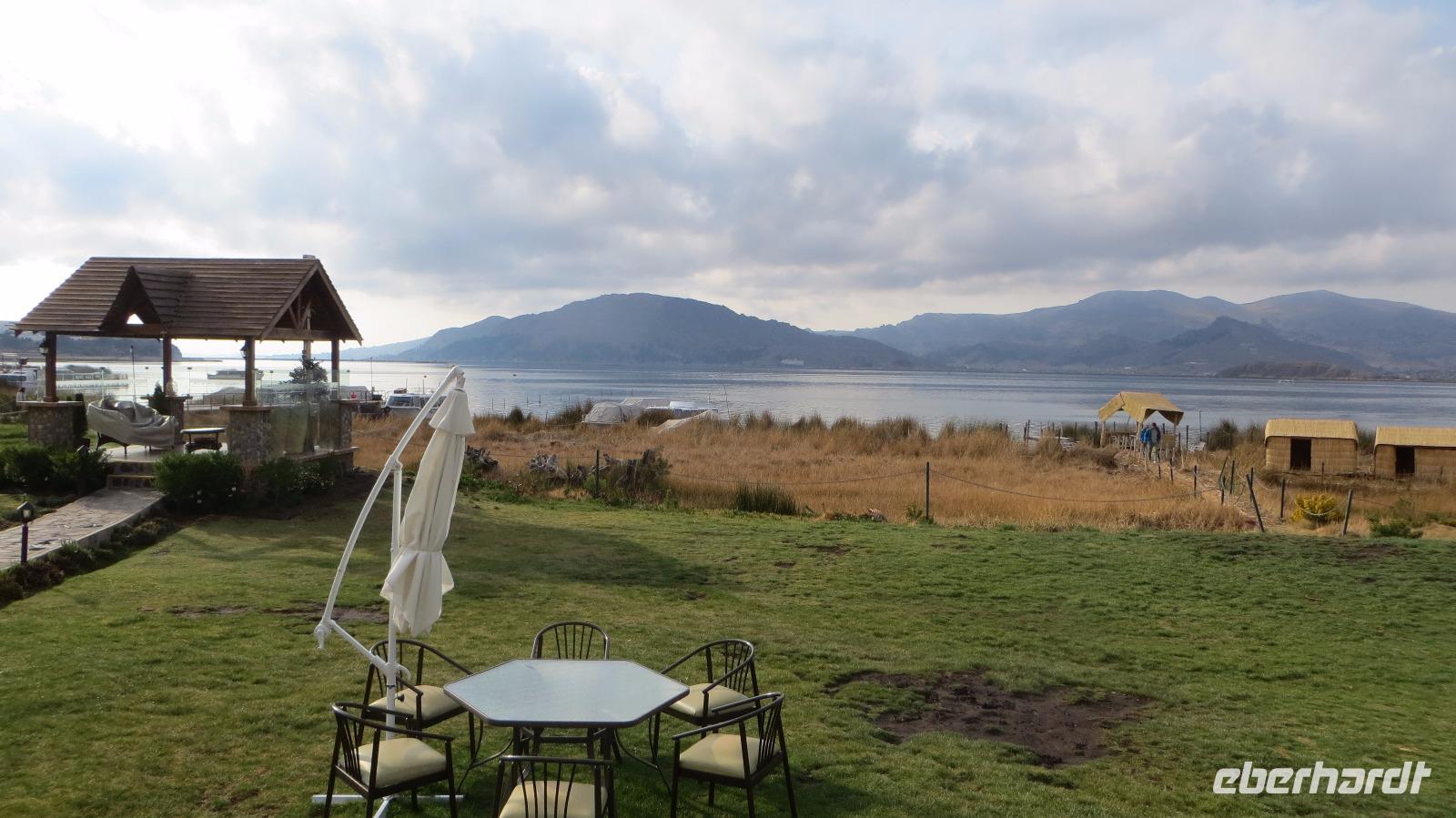 Am Abend erreichten wir unser schönes Hotel direkt am Titicaca-See, tranken Pisco-Sour und genossen die ruhige Lage.