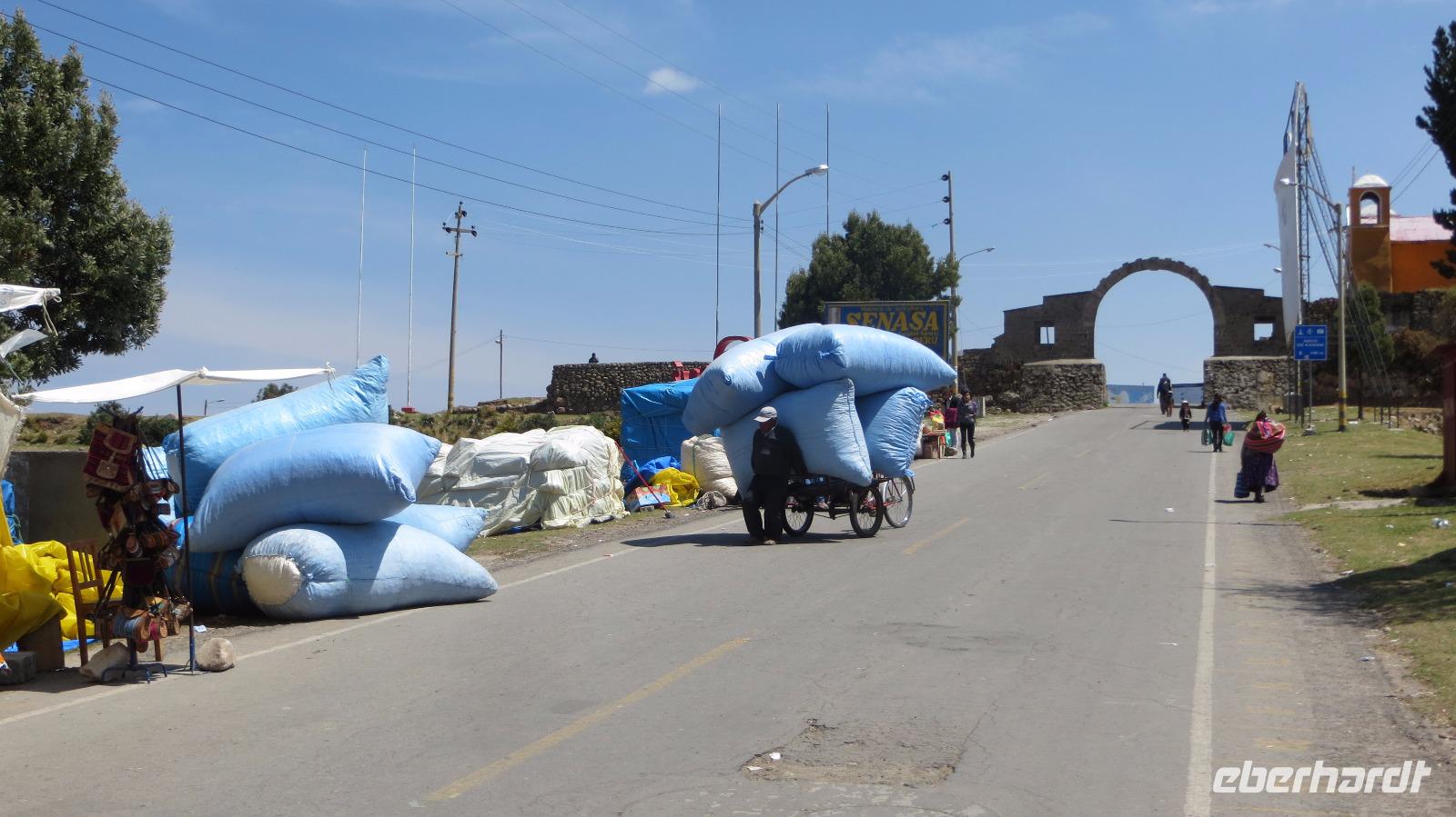 Nun durchquerten wir zur Abwechslung die arme, chaotische Stadt Juliaca mit vielen Tankstellen.
