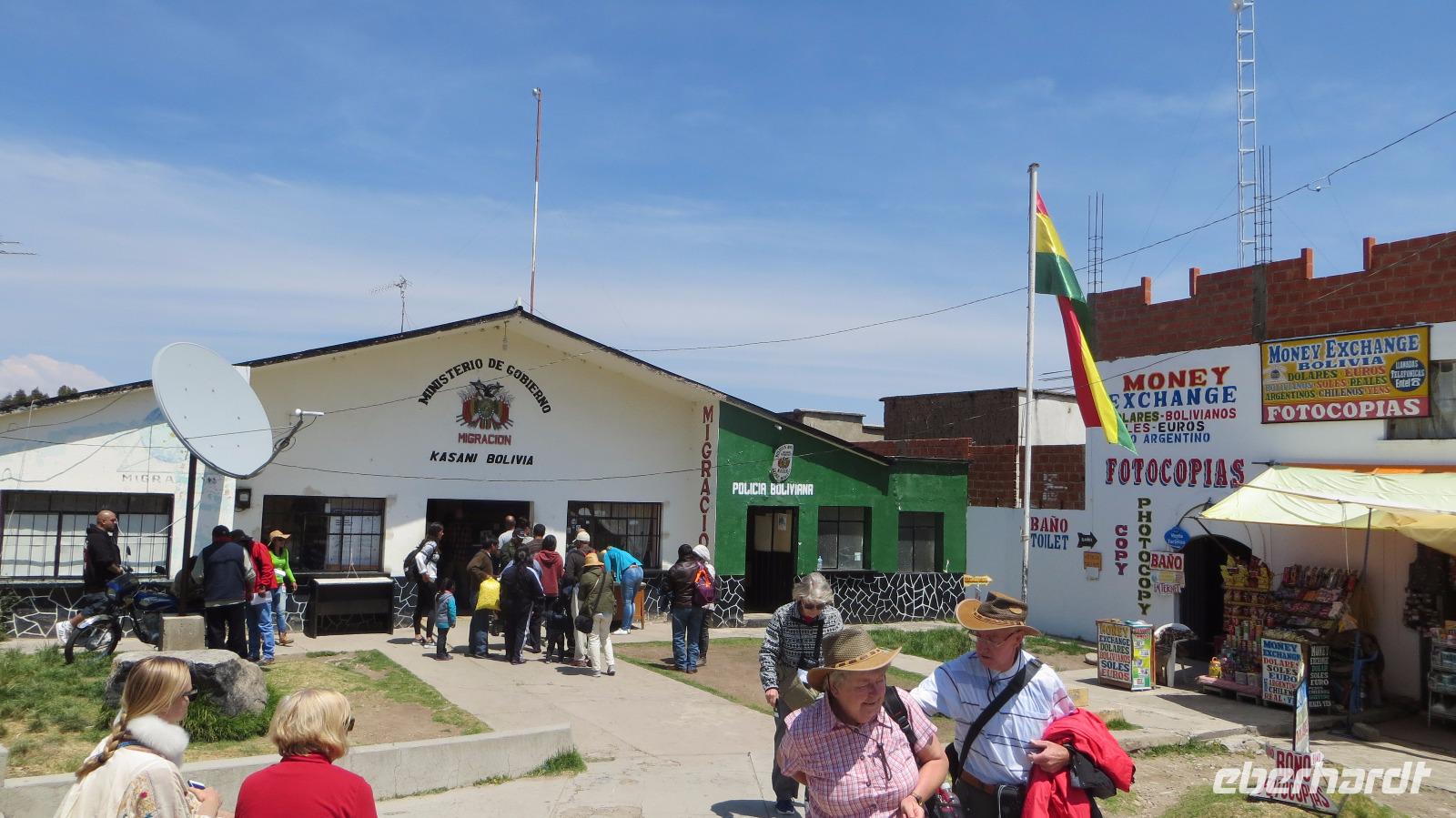 Wir verabschieden uns von Peru und und beginnen unsere zweite Etappe durch Bolivien mit dem örtlichen Reiseleiter Martin, besuchen die Kirche mit der Madonna von Copacabana und hatten die Möglichkeit einen Teil der Messe zu hören. Nach einem Spaziergang durch den Ort und einem typisch bolivianischen Bier fuhren wir mit einem Tragflächenboot zur Sonneninsel, dann zur Mondinsel mit dem Jungfrauentempel. Hier erfuhren wir sehr viel über die Kultur der Inkas und Taiuanacotas, sahen wieder das Kreuz der Inkas (Chakana) mit den 3 Ebenen. Der engste Punkt des Titicacsees befindet sich zwischen den Dörfchen San Pedro und San Pablo. An dieser Stelle hat man mit uns eine traditionelle Zeremonie veranstaltet, bei der wir getauft und mit Blümchen beworfen wurden. Es gab Singani (ein Nationalgetränk) bis wir den höchsten Punkt der Stimmung erreicht hatten.