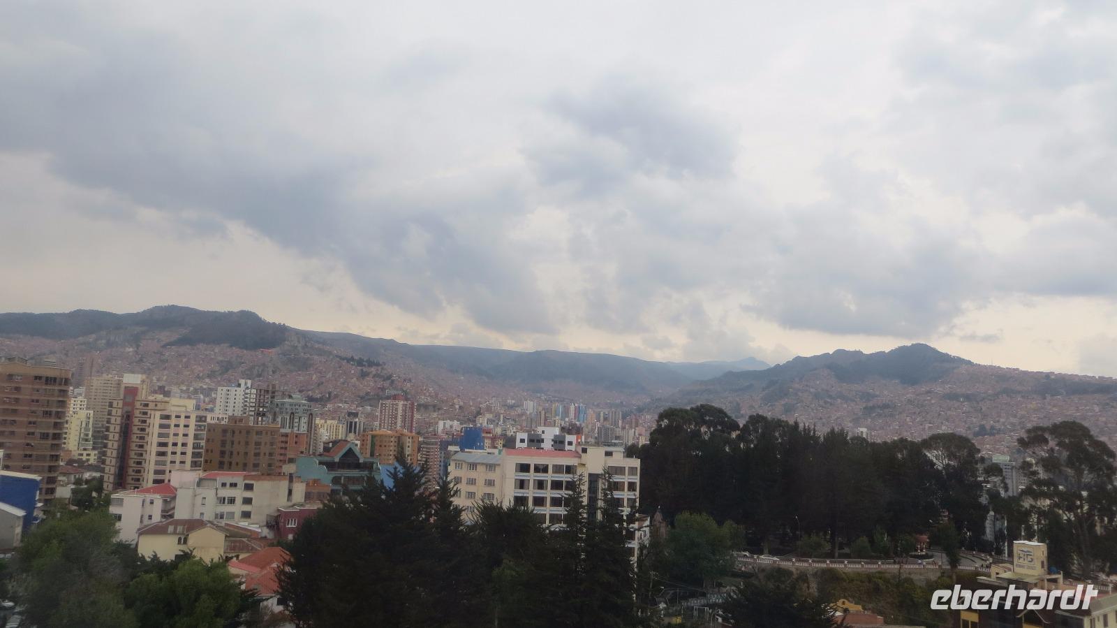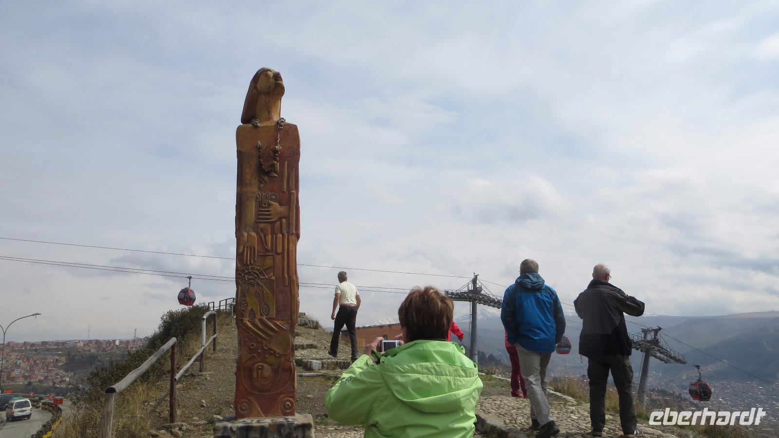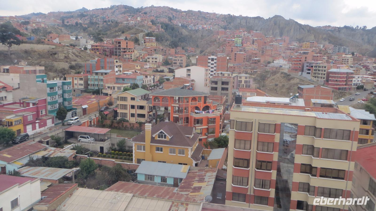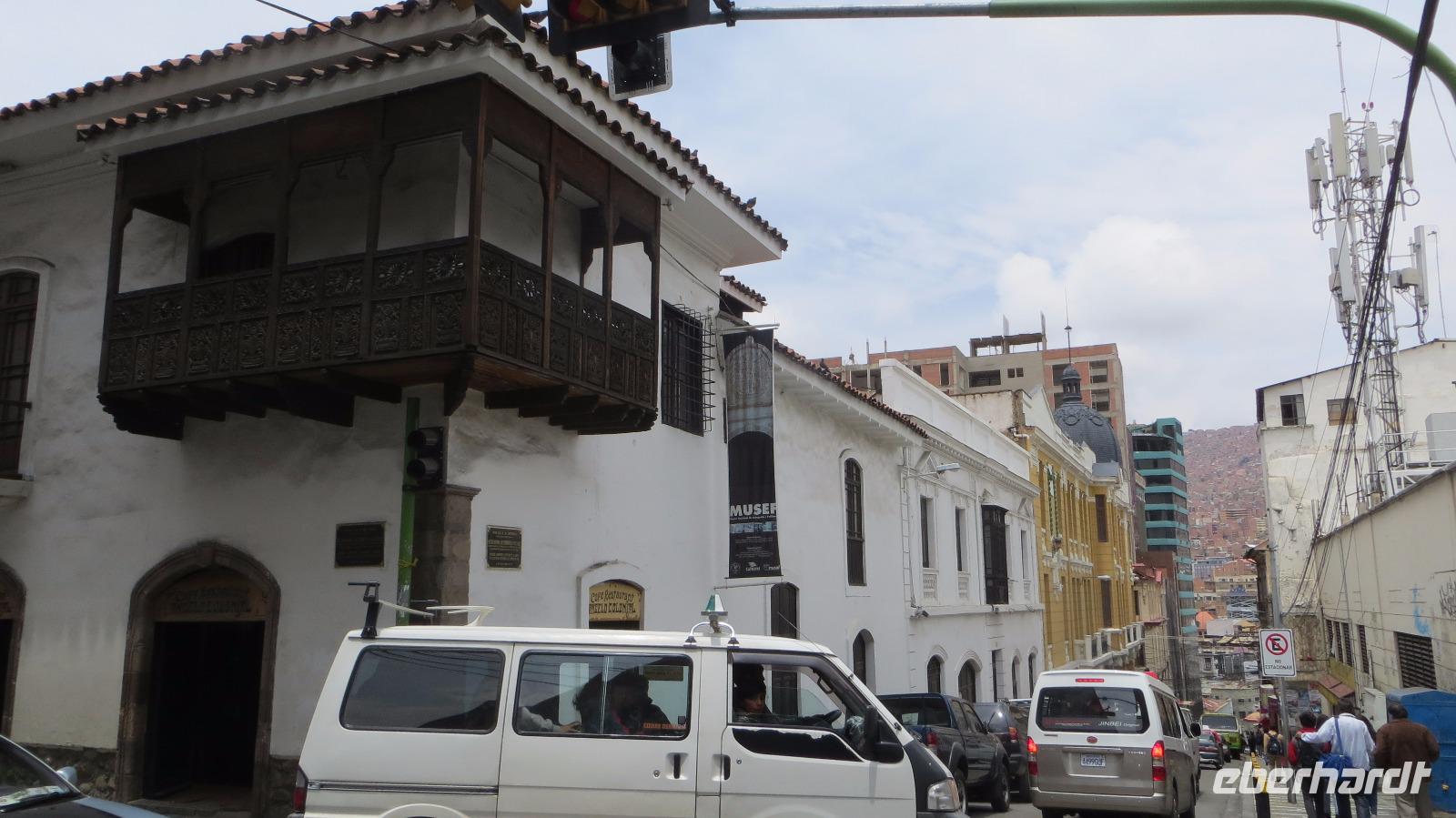 Wir liefen zu der für das Volk sehr wichtigen San Francico-Kirche direkt im Stadtzentrum, weiter entlang der Jaenstraße mit ihren Kolonialhäusern, die heute Museen sind bis zum Plaza de Murillo. Hier befinden sich die Kathedrale, das Parlament und der Palast des Präsidenten. Mit der Seilbahn ging es bis zum höchsten Teil der Stadt von wo wir einen herrlichen Blick auf die Struktur der Gebäude hatten.