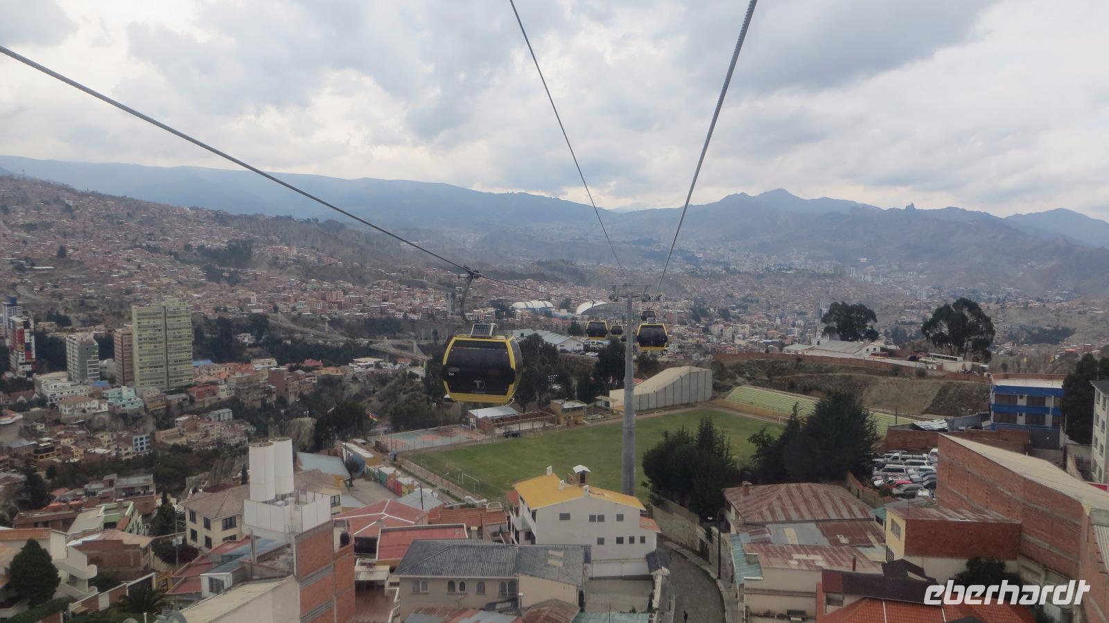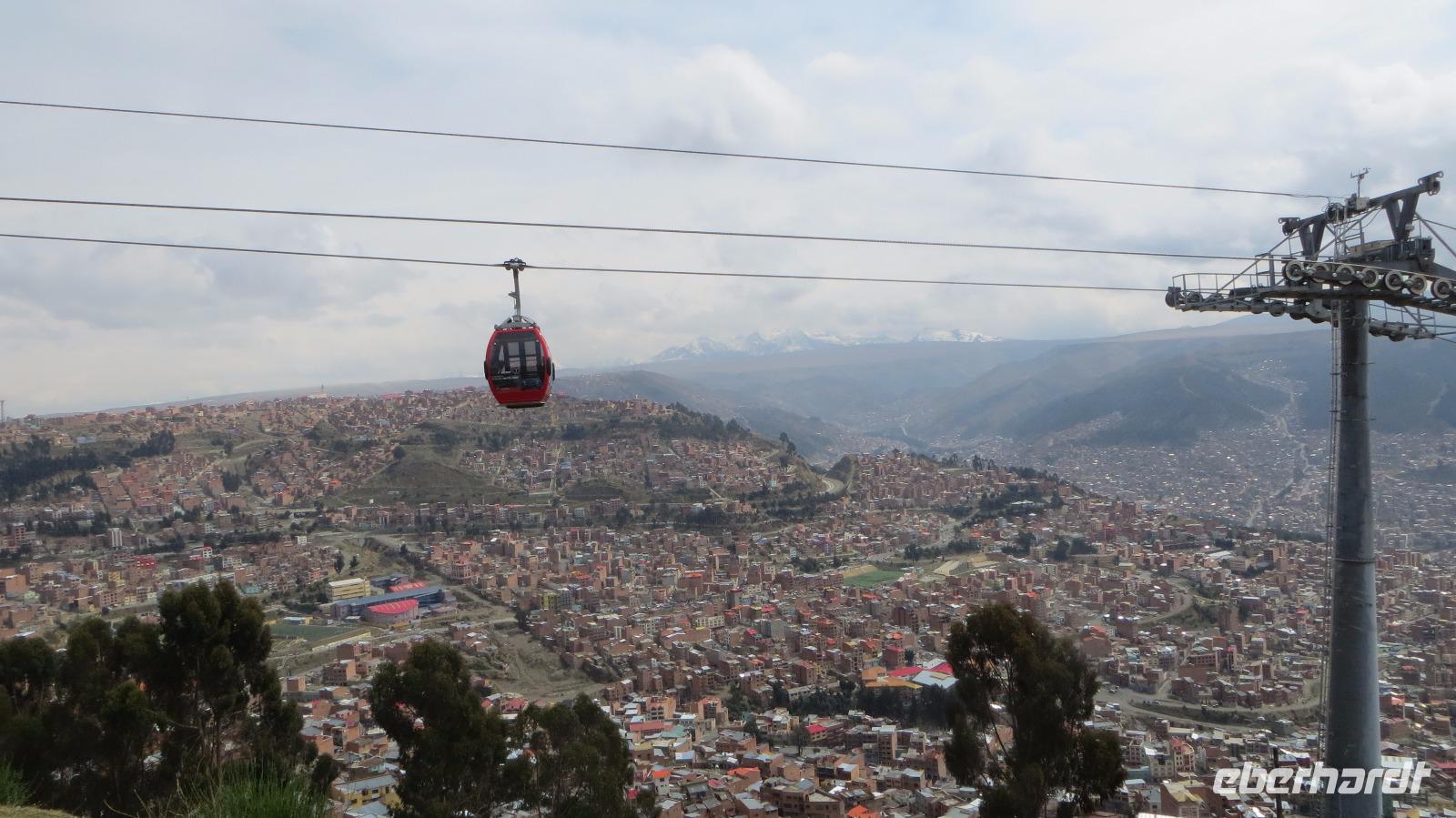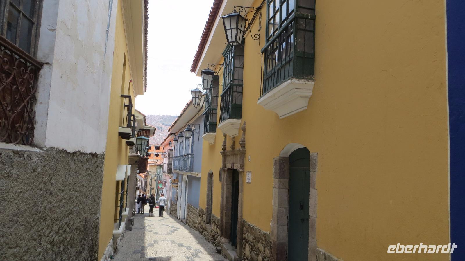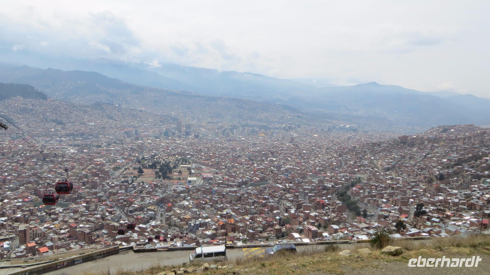 Wir liefen zu der für das Volk sehr wichtigen San Francico-Kirche direkt im Stadtzentrum, weiter entlang der Jaenstraße mit ihren Kolonialhäusern, die heute Museen sind bis zum Plaza de Murillo. Hier befinden sich die Kathedrale, das Parlament und der Palast des Präsidenten. Mit der Seilbahn ging es bis zum höchsten Teil der Stadt von wo wir einen herrlichen Blick auf die Struktur der Gebäude hatten.
