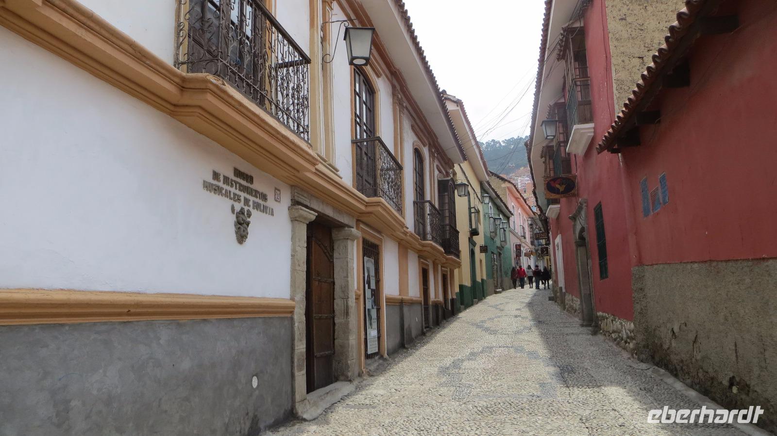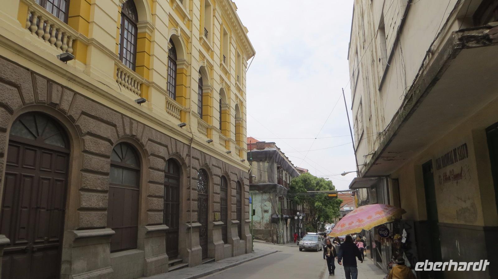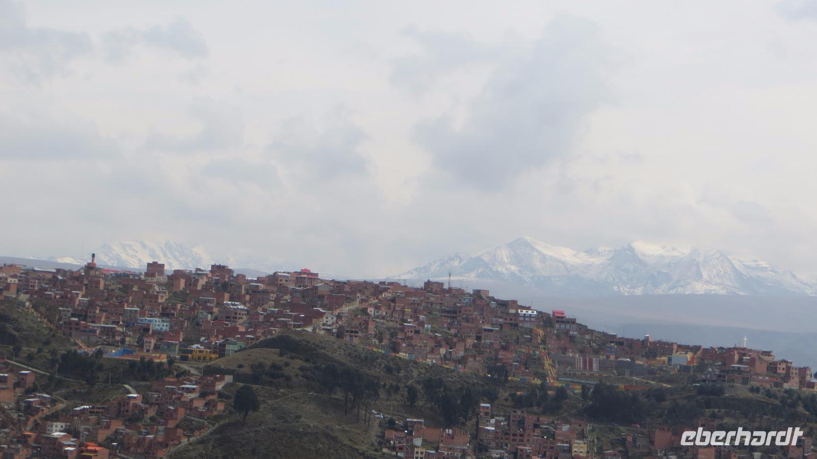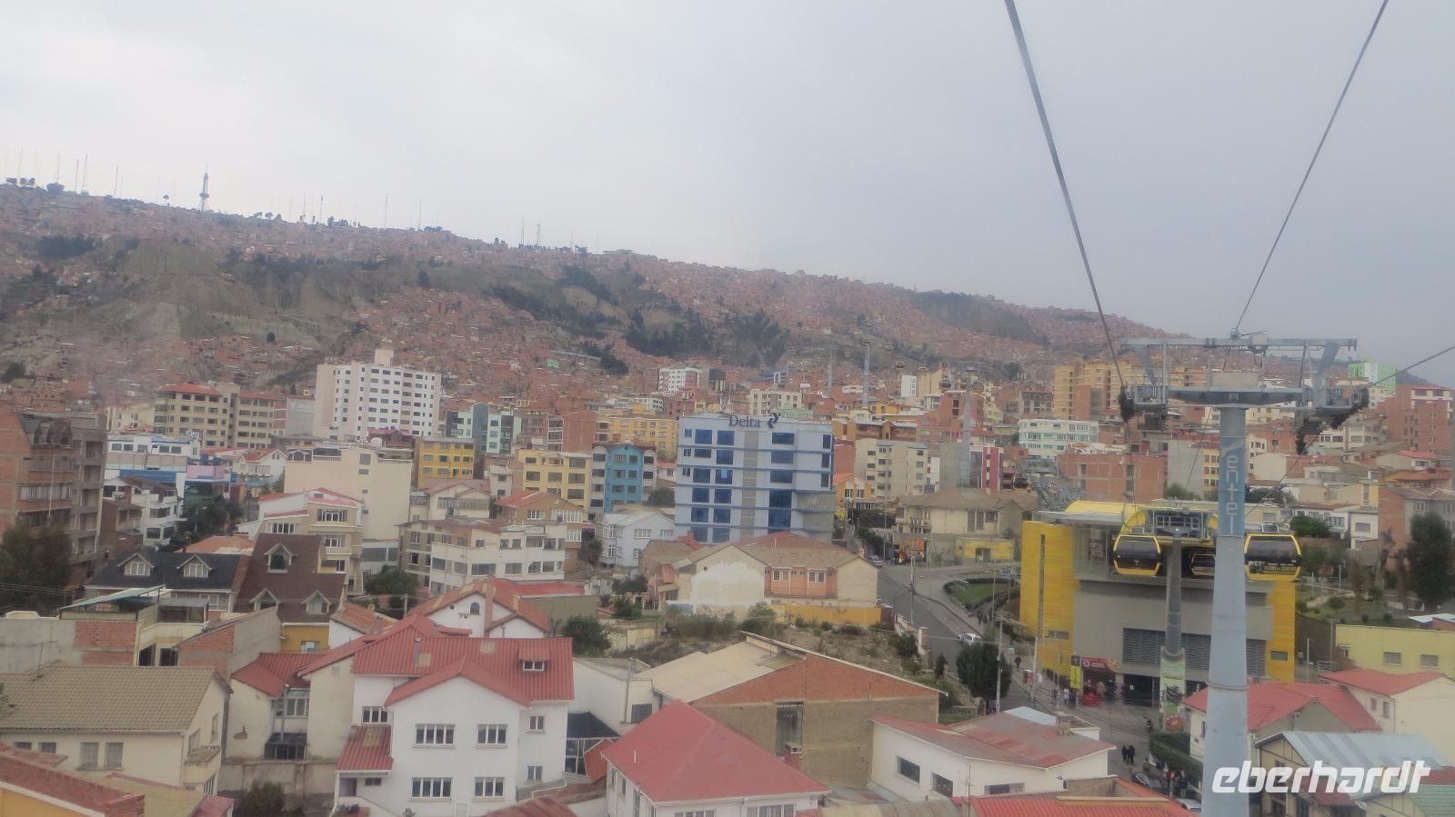 Wir liefen zu der für das Volk sehr wichtigen San Francico-Kirche direkt im Stadtzentrum, weiter entlang der Jaenstraße mit ihren Kolonialhäusern, die heute Museen sind bis zum Plaza de Murillo. Hier befinden sich die Kathedrale, das Parlament und der Palast des Präsidenten. Mit der Seilbahn ging es bis zum höchsten Teil der Stadt von wo wir einen herrlichen Blick auf die Struktur der Gebäude hatten.
