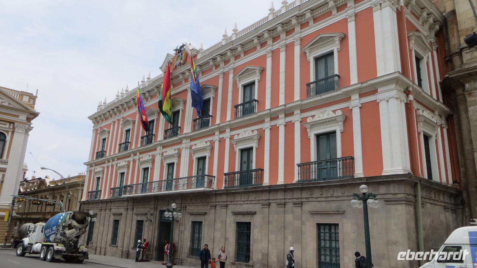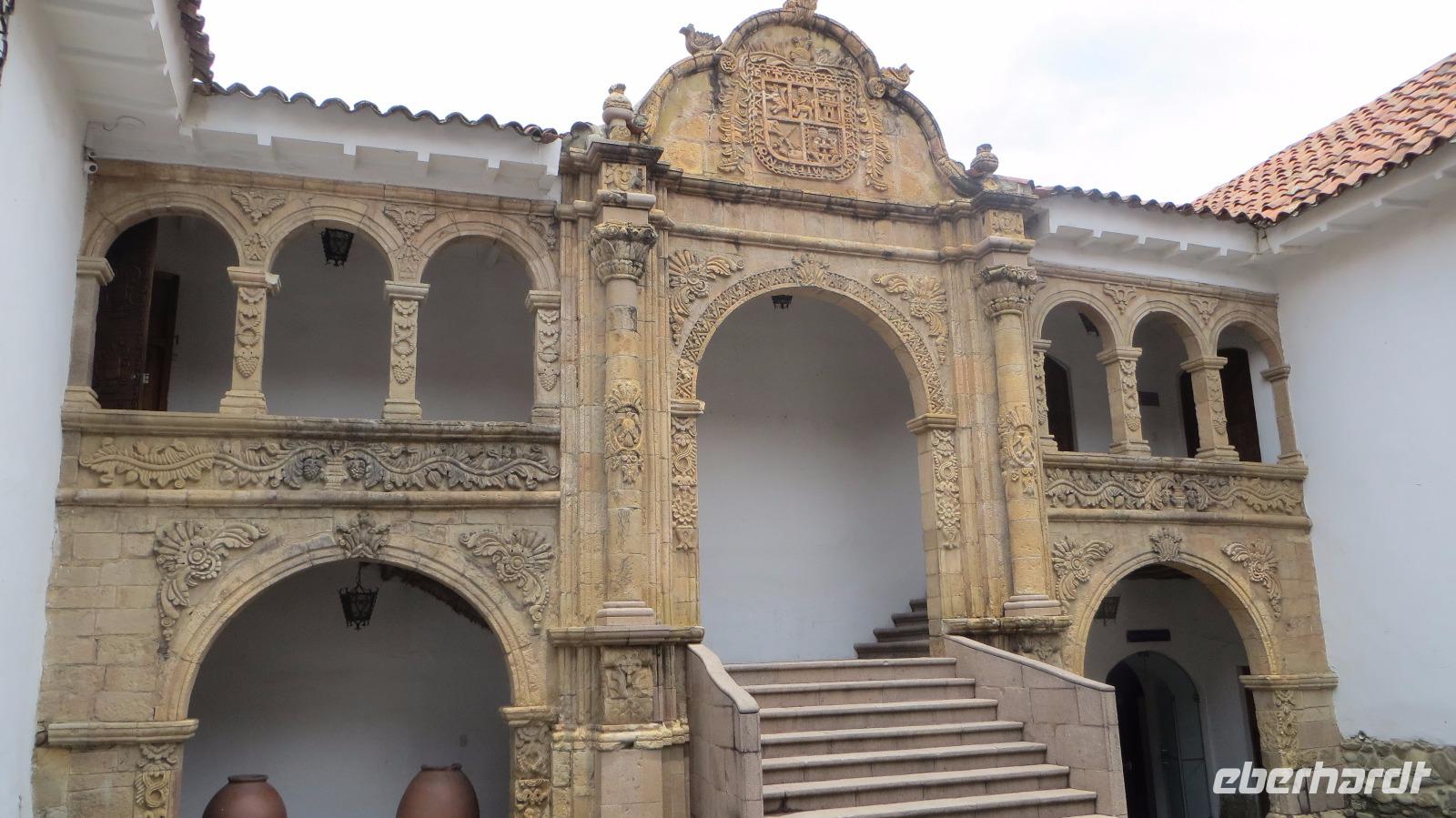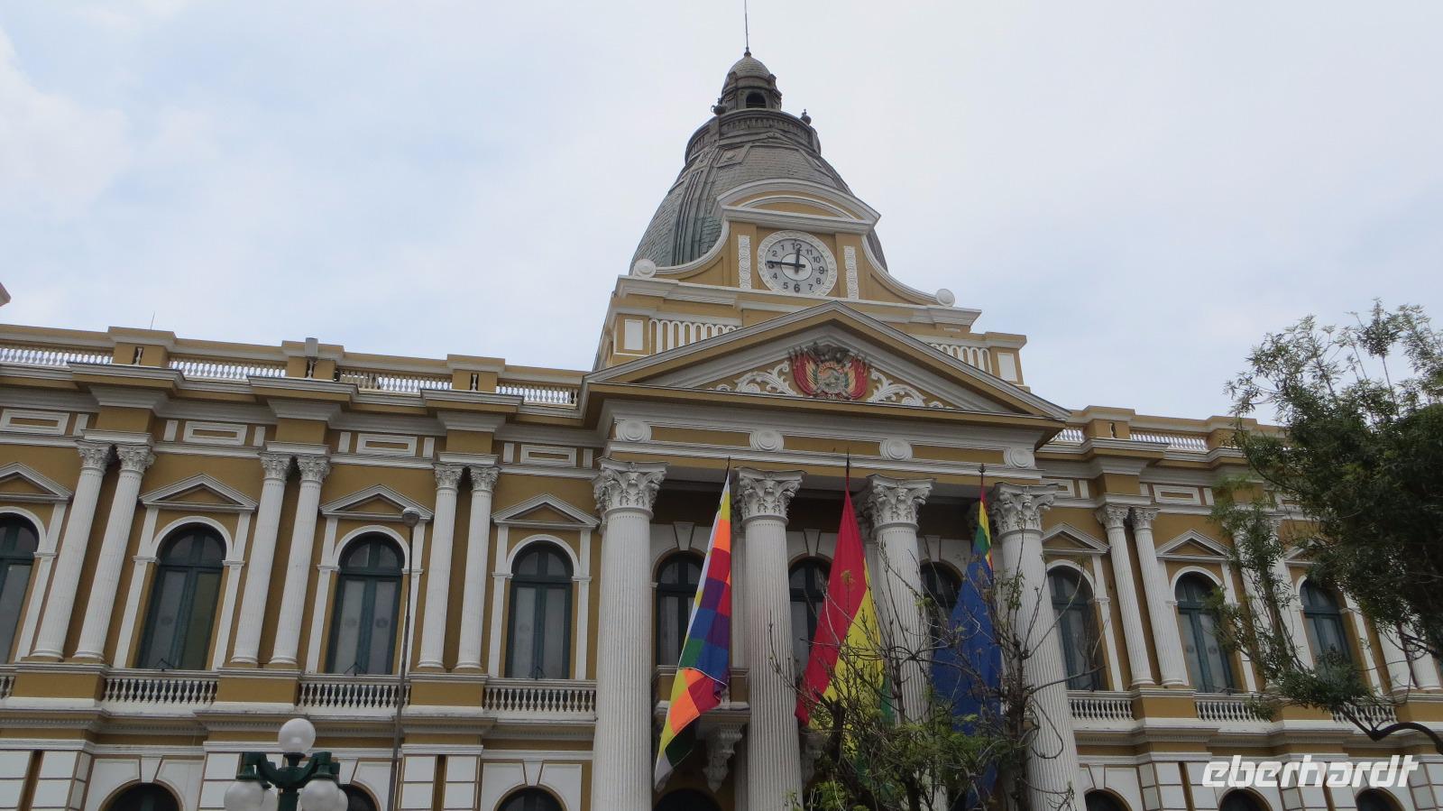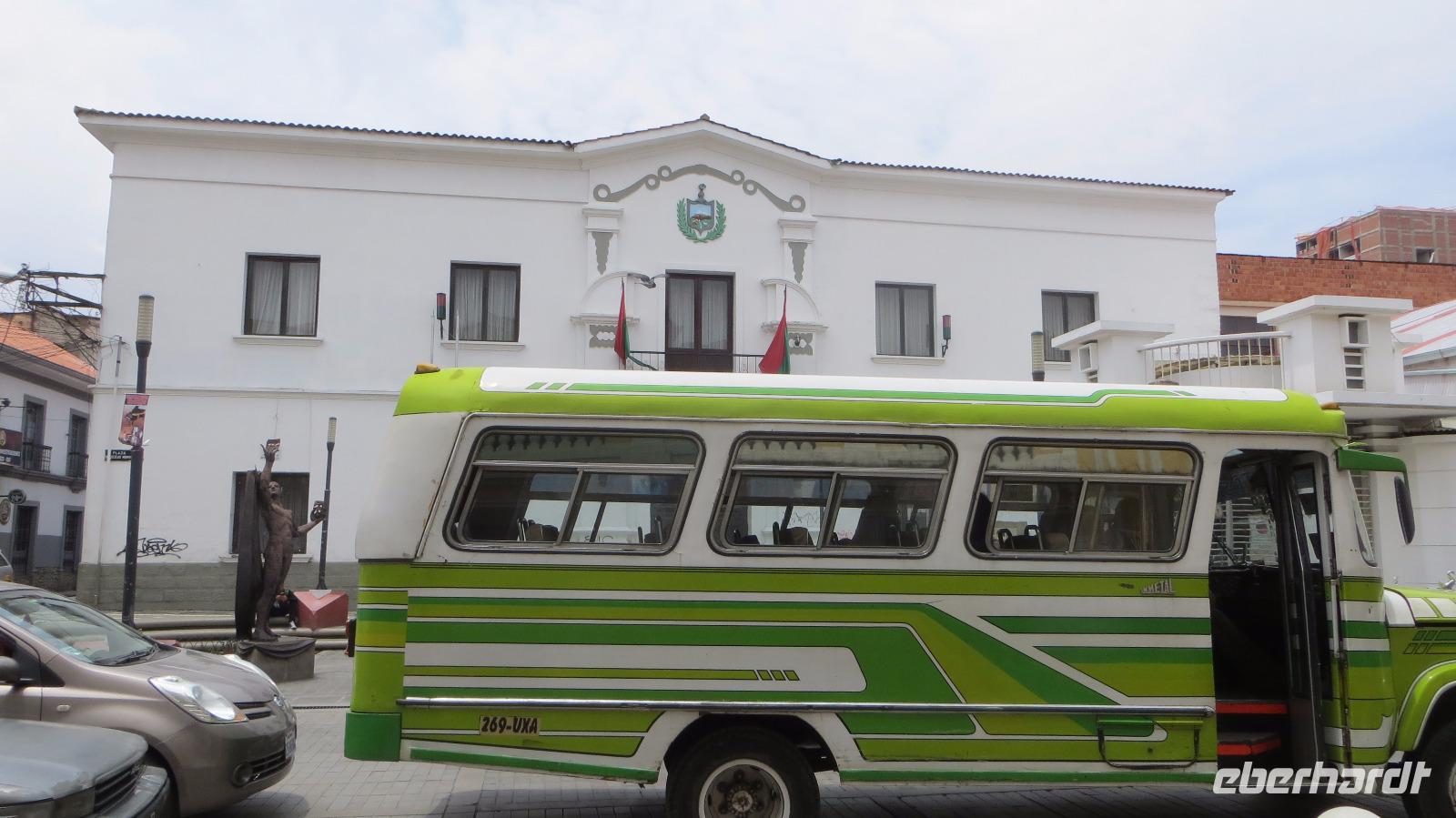 Wir liefen zu der für das Volk sehr wichtigen San Francico-Kirche direkt im Stadtzentrum, weiter entlang der Jaenstraße mit ihren Kolonialhäusern, die heute Museen sind bis zum Plaza de Murillo. Hier befinden sich die Kathedrale, das Parlament und der Palast des Präsidenten. Mit der Seilbahn ging es bis zum höchsten Teil der Stadt von wo wir einen herrlichen Blick auf die Struktur der Gebäude hatten.